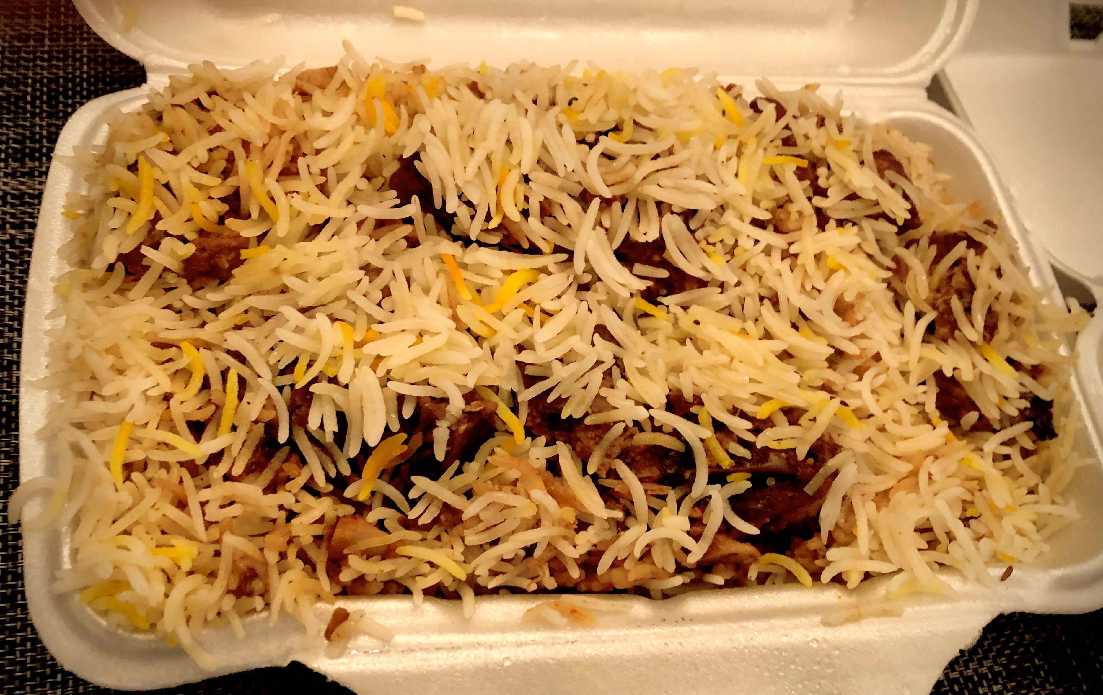The three other dishes varied in flavour: the Nihari Curry, the Bihari Kabab, and the Lamb Biryani, all accompanied by naan, minced ginger, and raita. The Nihari Curry was sweetened by Garam Masala and was saucy. It was a beef dish that was slow-cooked, so the pieces of meat were tender. Of all the four dishes, this one has the most unique taste and was rated a close second behind the chicken.