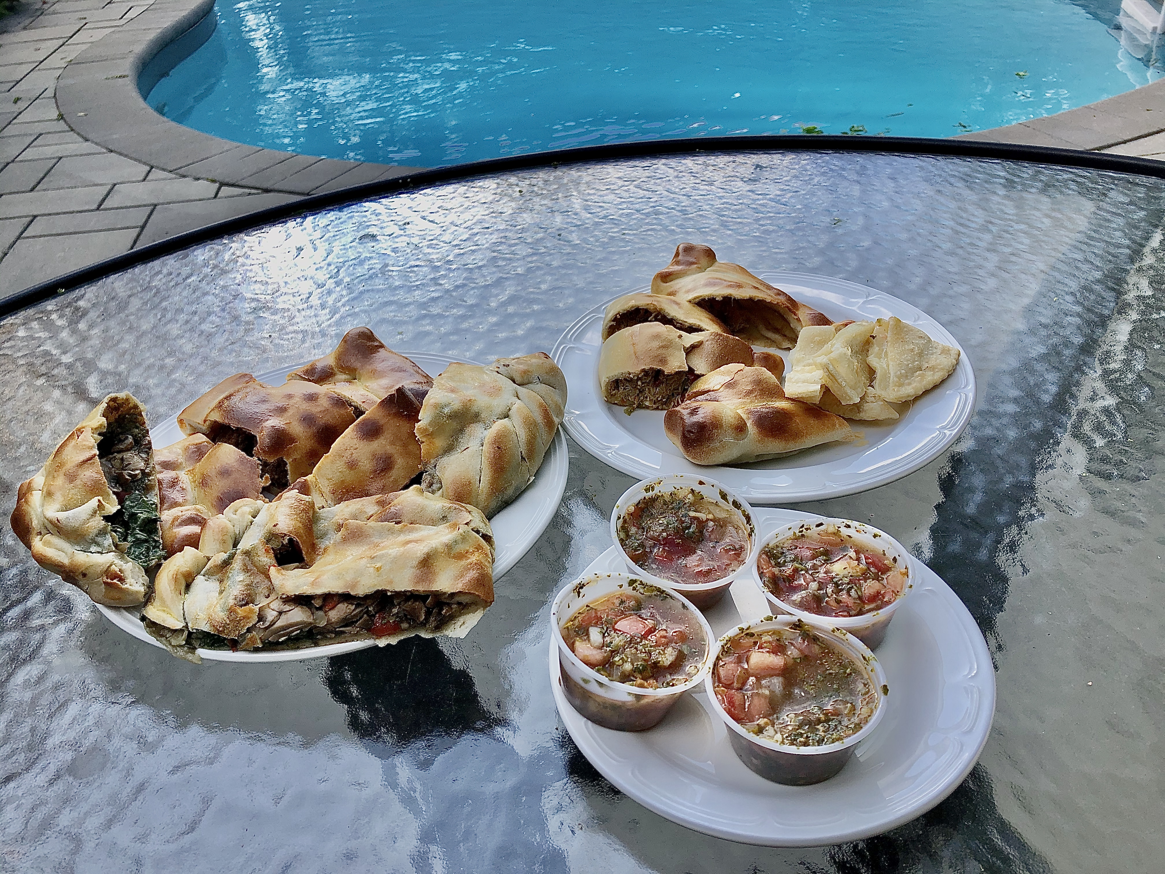 You can purchase the empanadas ready to eat, or keep them for later and heat them up in the oven for five minutes at 400F. They are an easy treat to bring to a picnic in a park, on a road trip or to fill you up on the go.