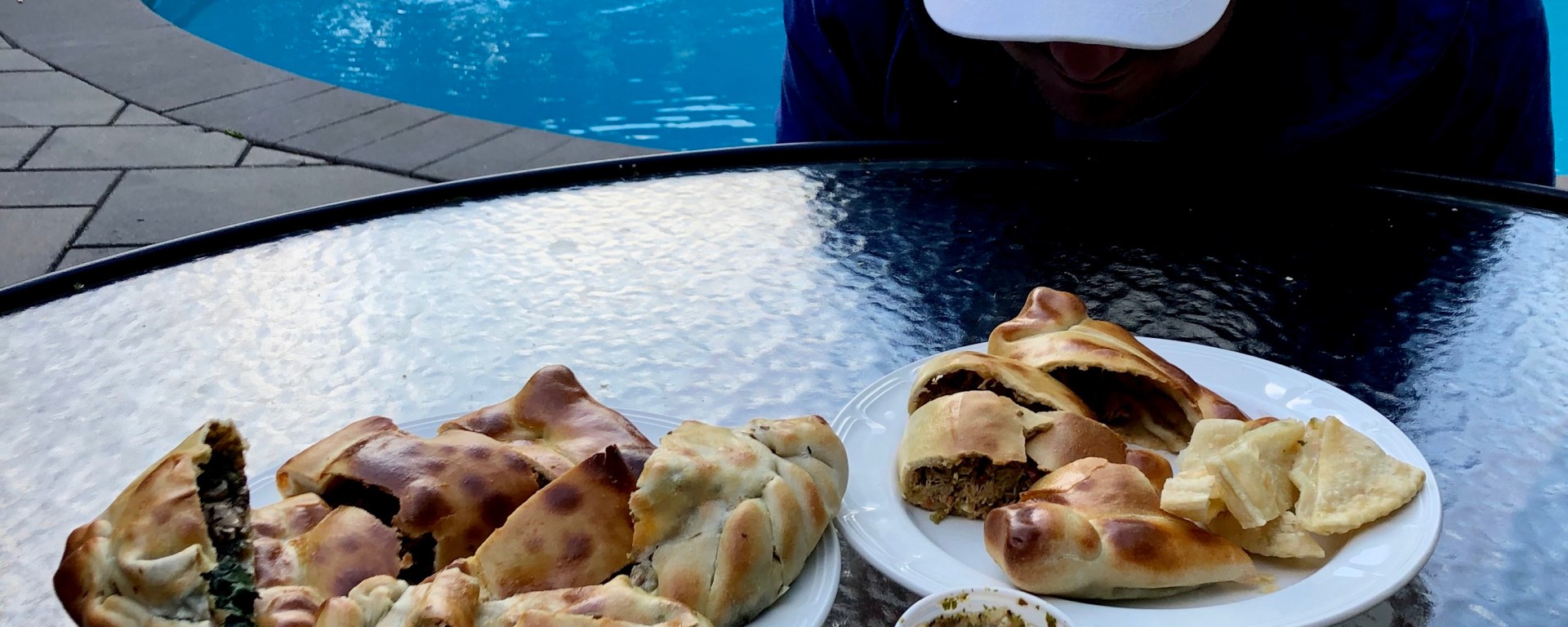 You can purchase the empanadas ready to eat, or keep them for later and heat them up in the oven for five minutes at 400F. They are an easy treat to bring to a picnic in a park, on a road trip or to fill you up on the go.