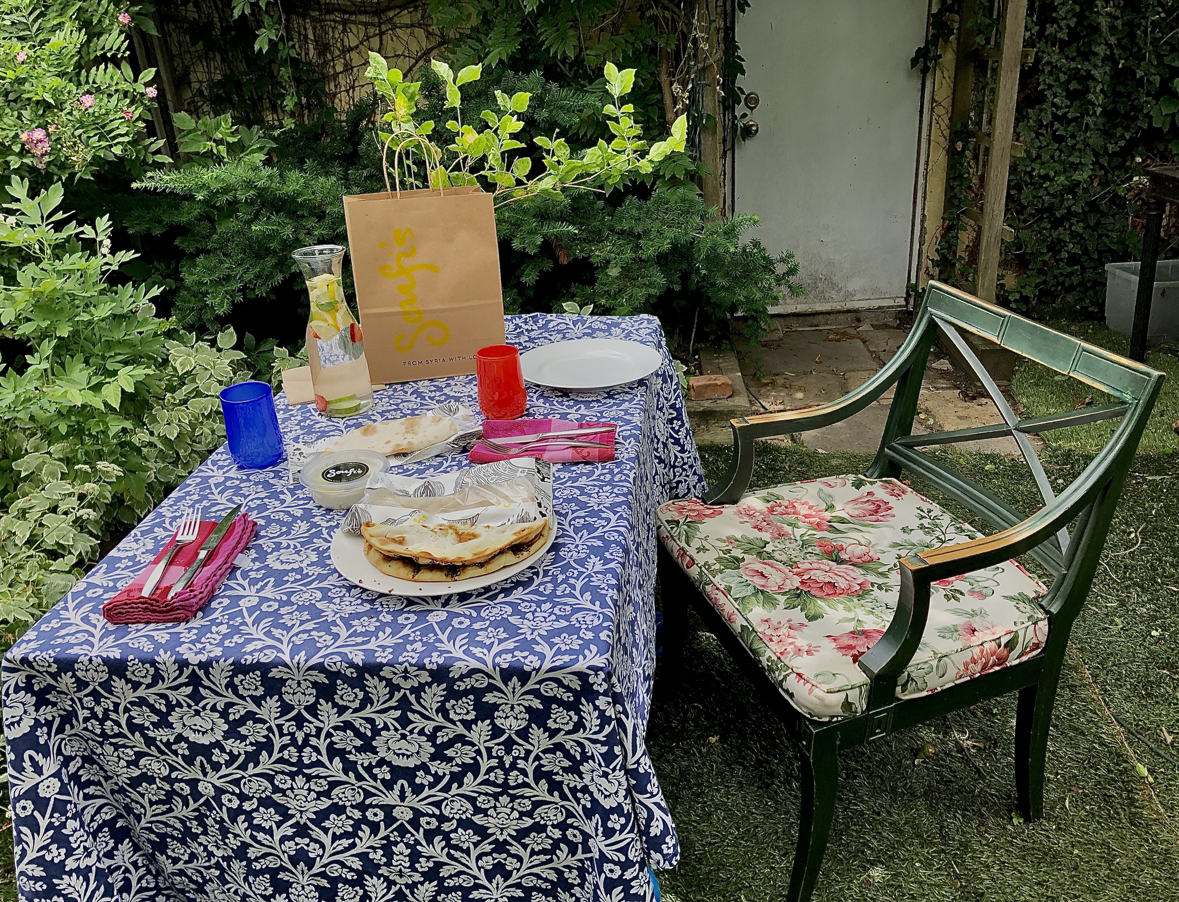 Mat picked up the meal from Soufis’ storefront on Queen Street and was pleasantly surprised by Andreas’ stunning backyard setup – a chic table arrangement in the backyard garden that gave the impression of dining in the courtyard of a Tuscany villa.