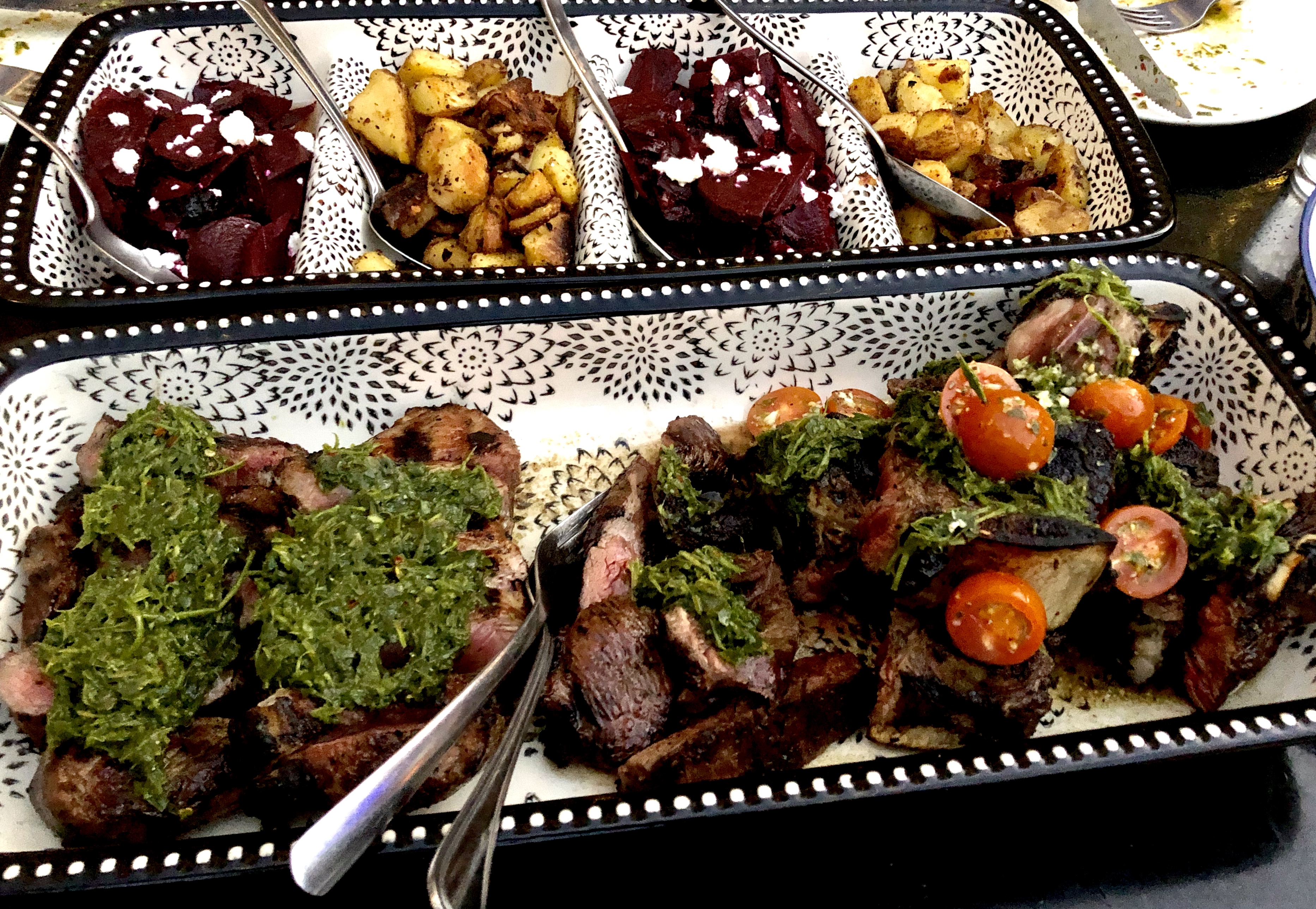 Next up was the grilled chorizo, also covered in chimichurri. It came on a plate with a generous portion of meat, without actually filling us up for the leading act. Finally, a platter of three cuts of steak (all cooked medium rare) landed at the centre of the table and everyone felt like they had died and gone to heaven. The final course was a Dulce de Leche crepe, and if you’ve ever had these flavours, you know that they’re irresistible.