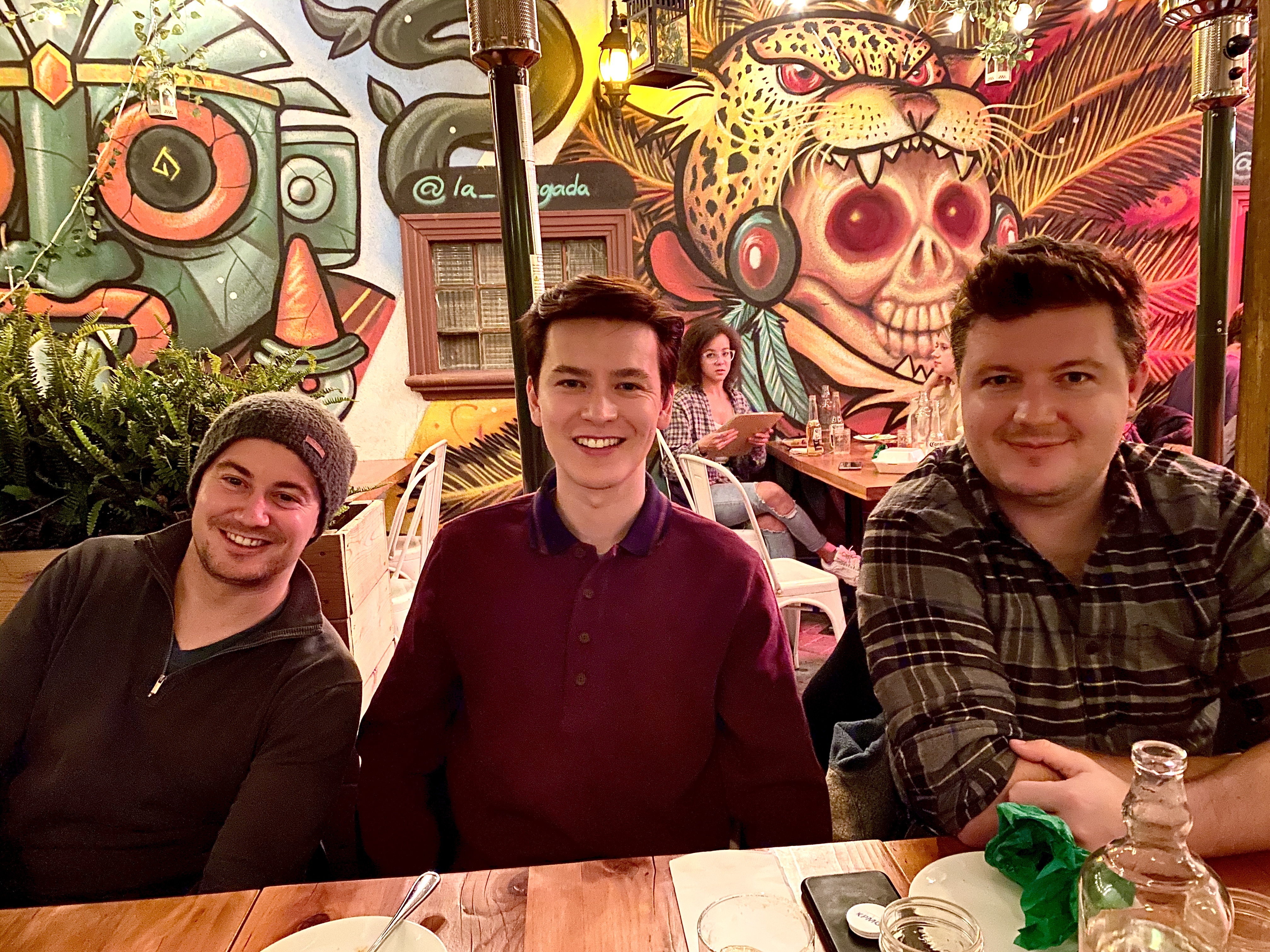 The Mandrea Bike duo must have had some liquid courage because they carried on for the fifth round of tacos joined by Young Matt, leaving Curly Guy and Suited Sebastien in the dust. Mat had a well deserved sixth after some cheers from the group and surfaced as the taco champion for the night.