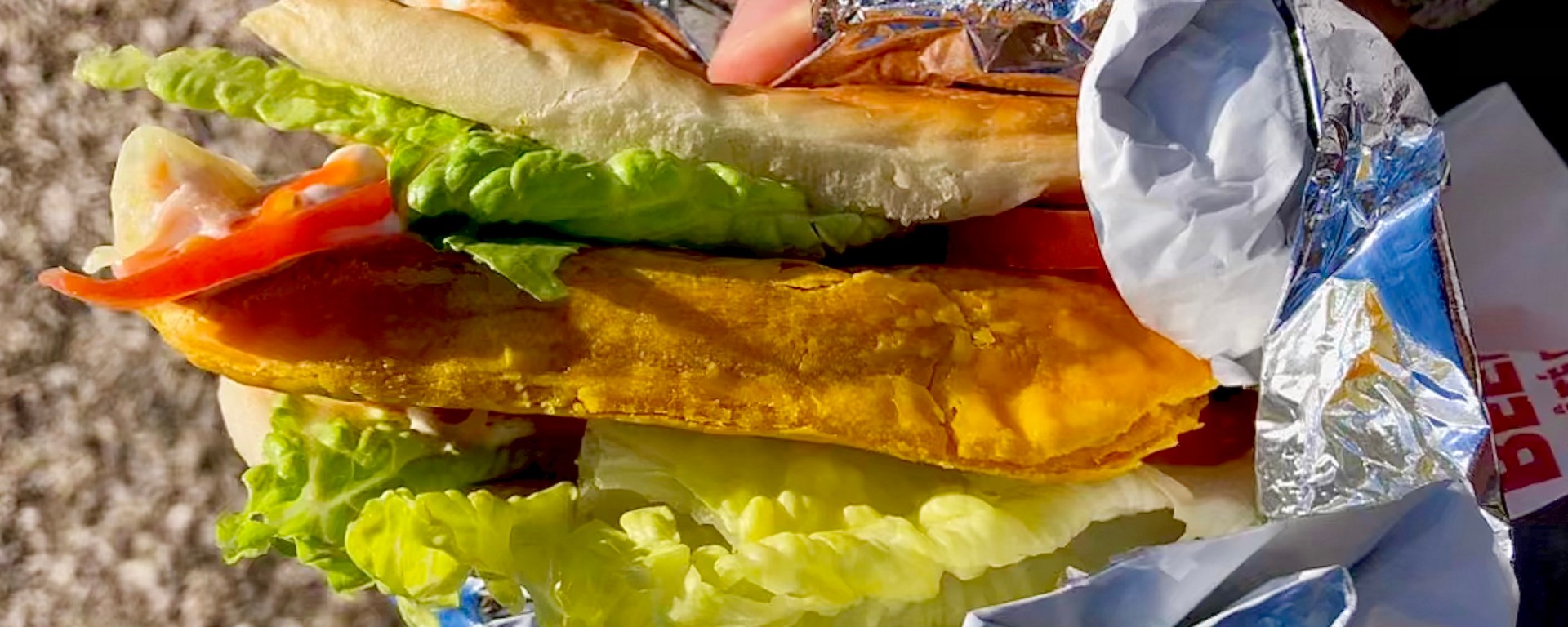 Imagine a Jamaican patty stuffed between two pieces of coco bread alongside lettuce, tomato and mayonnaise to make up a sandwich… This is what’s happening in Kensington Market on a sunny afternoon.