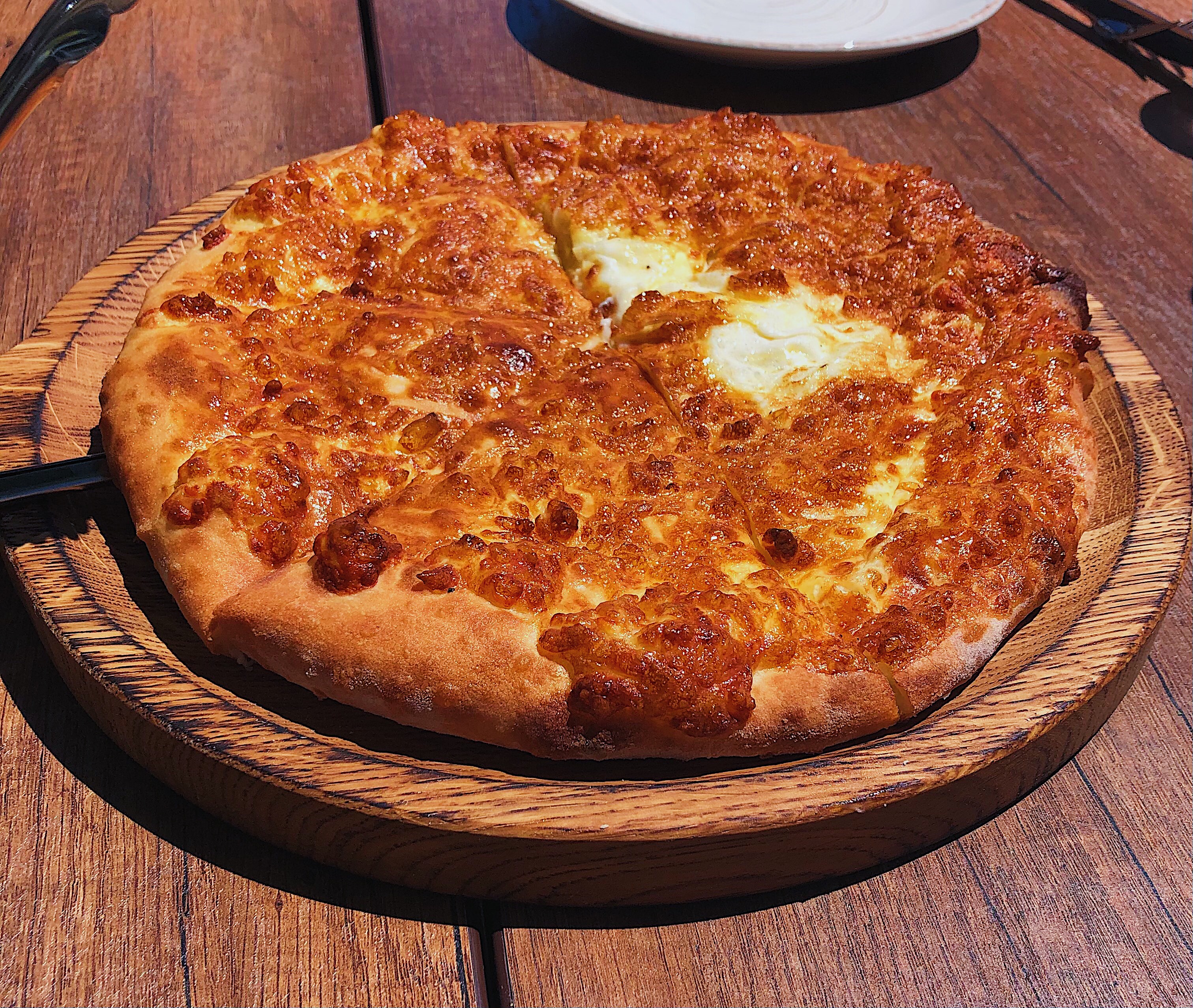 Khachapuri Megruli: A baked bread filled with a mixture of cheese and egg yolk. “The cheese flavour is a hard 10” was Big Hirtle’s initial comment after the first bite. Although Mad Max really wanted the boat-shaped pie, we opted for the circular version as our server advised us that it would be easier to share. We all agreed that Khachapuri Megruli was a souped-up version of garlic fingers and that we would quickly shift our drunk food loyalty to this if it were readily available in the city.