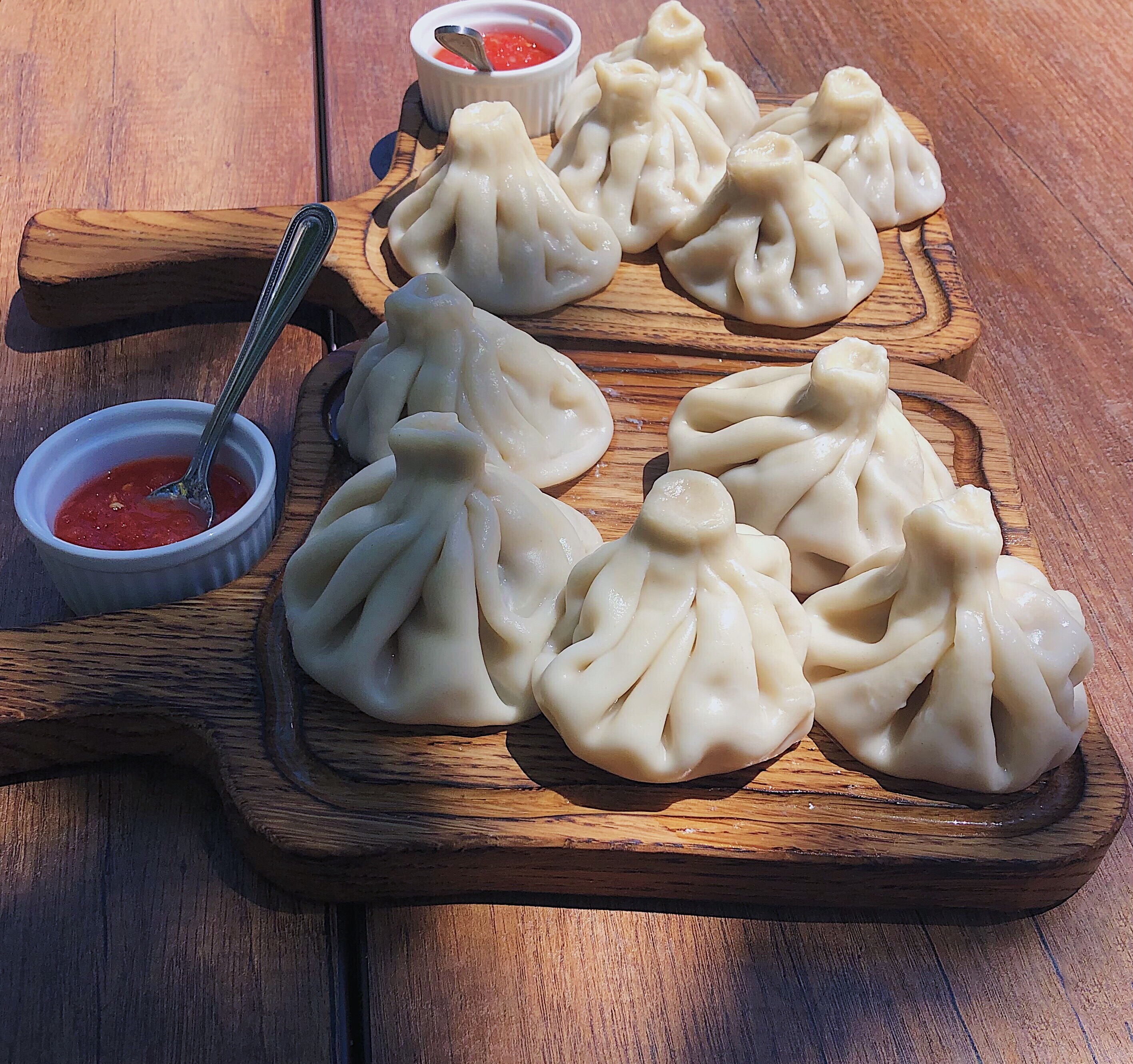Khinkali: These dumplings resemble a Chinese soup dumpling with a thicker wrapper and Georgian spices. The top of the dumpling is pressed into a tight knob of dough, which retains the meat and liquid inside. Be warned, you may need to let the Khinkali’s rest for a few minutes to avoid burning your mouth on the hot soup within. We ordered the Traditional Style Khinkali which contains ground beef and pork served with Georgian hot sauce “Adjica”. We also ordered the Lamb Khinkali which contains ground lamb and is also served with the Adjica hot sauce. The whole group loved the Khinkalis, specifically Big Hirtle, who craved them for weeks to come.