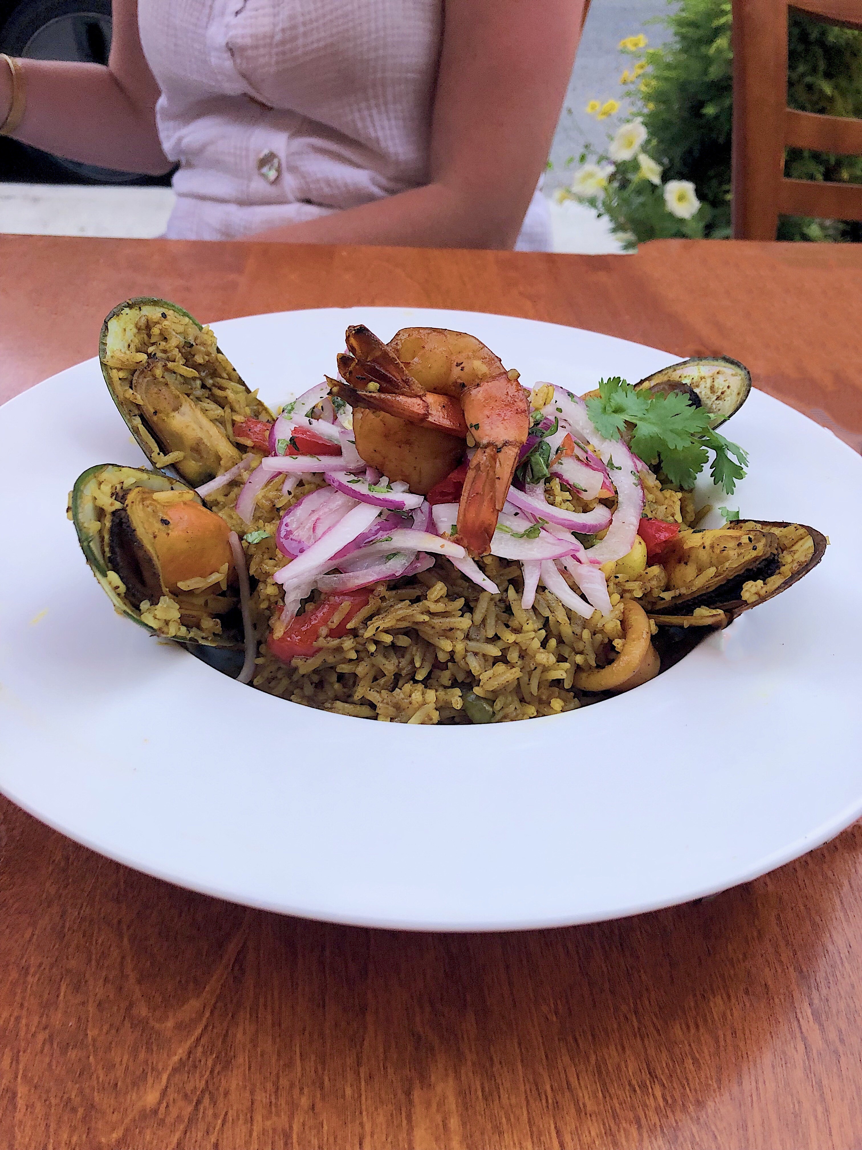 - Arroz con Mariscos: Peru’s take on paella – fragranced rice packed with seafood (shrimps, octopus, calamari and mussels) with red peppers, peas and corn. This dish is great for sharing, and you still get a generous amount of seafood!