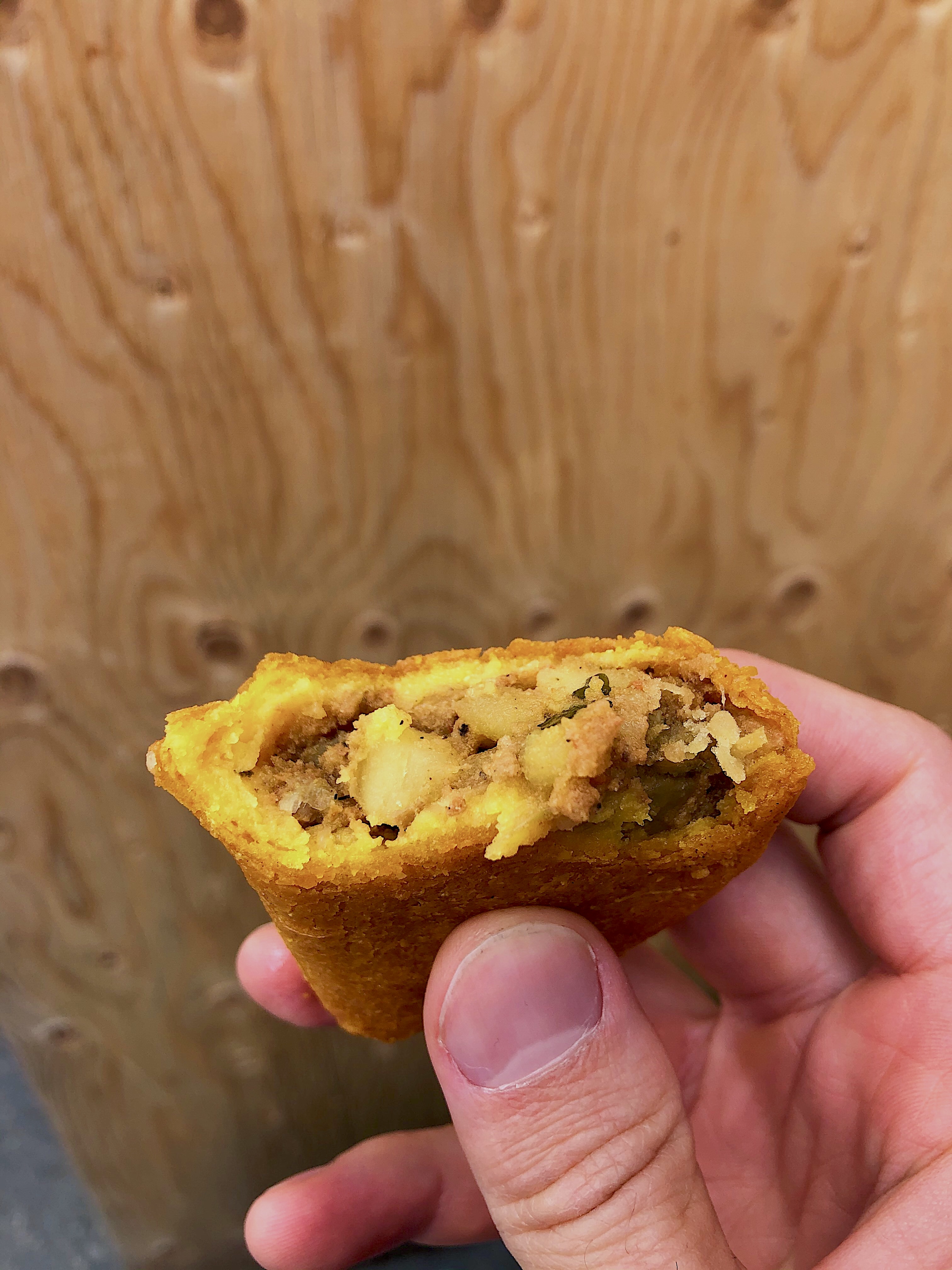 Beyond their vast selection of empanadas, there are Tamales, Ceviche, Stuffed Plantains, Bolon de Verde, and other top dishes from the region.The Bolon de Verde stood out as it had trigger words in the description that made it especially appealing – dumplings, plantain and cheese. This dense, moist plantain stuffed cheese ball was delicious, but it’s a meal on its own. If you’re going to La Morena for empanadas, an order of Bolon de Verde is a great thing to be shared by the group.