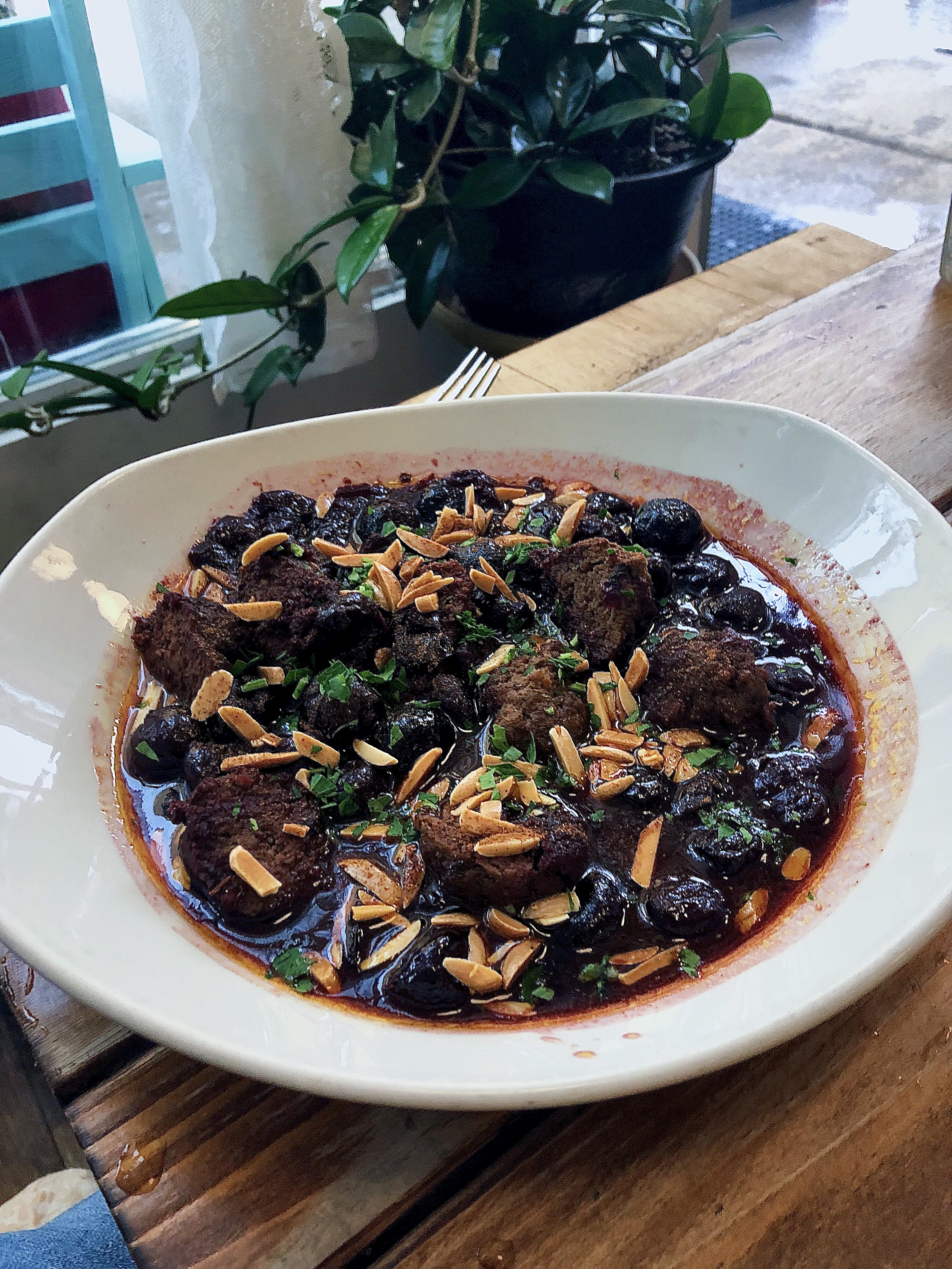 - Kabab Karaz: These meatballs cooked in a tangy cherry and berry sauce are to die for. It’s a traditional recipe from Aleppo that’s both savoury and sweet, with a lingering sour taste. It comes with a salad and pita, and the restaurant cautions to please not pair it with rice!