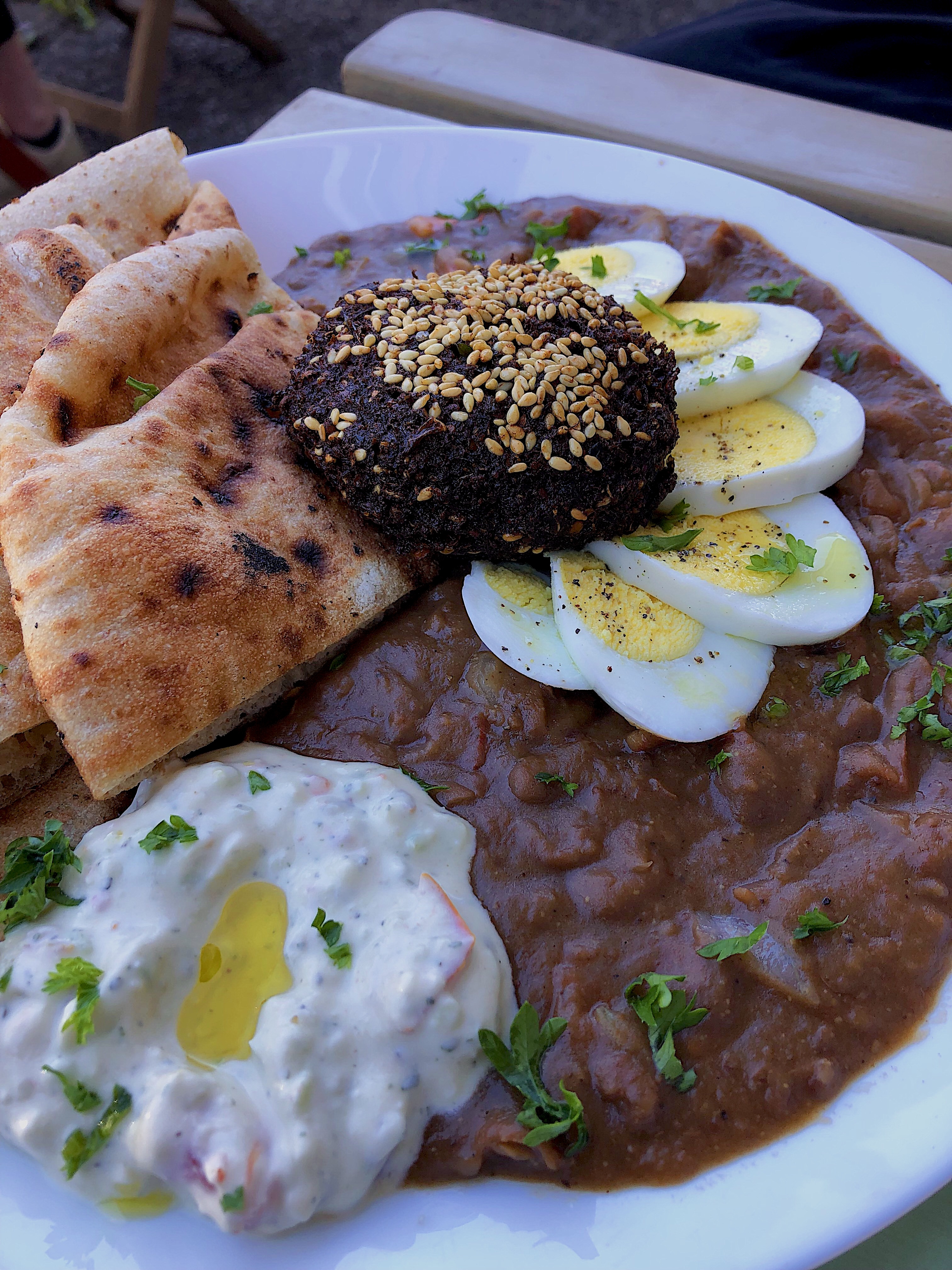 The Cairo Classic came highly recommended as Maha’s delicious take on the typical breakfast found on the streets of Egypt. It’s a beautifully presented plate with Foul, Hard-Boiled Egg, Feta cheese, Falafel and Balady Bread. The Foul was the star of the show – fava beans slow cooked in tomato, onion and spices. On top, there are slices of egg and one large falafel.