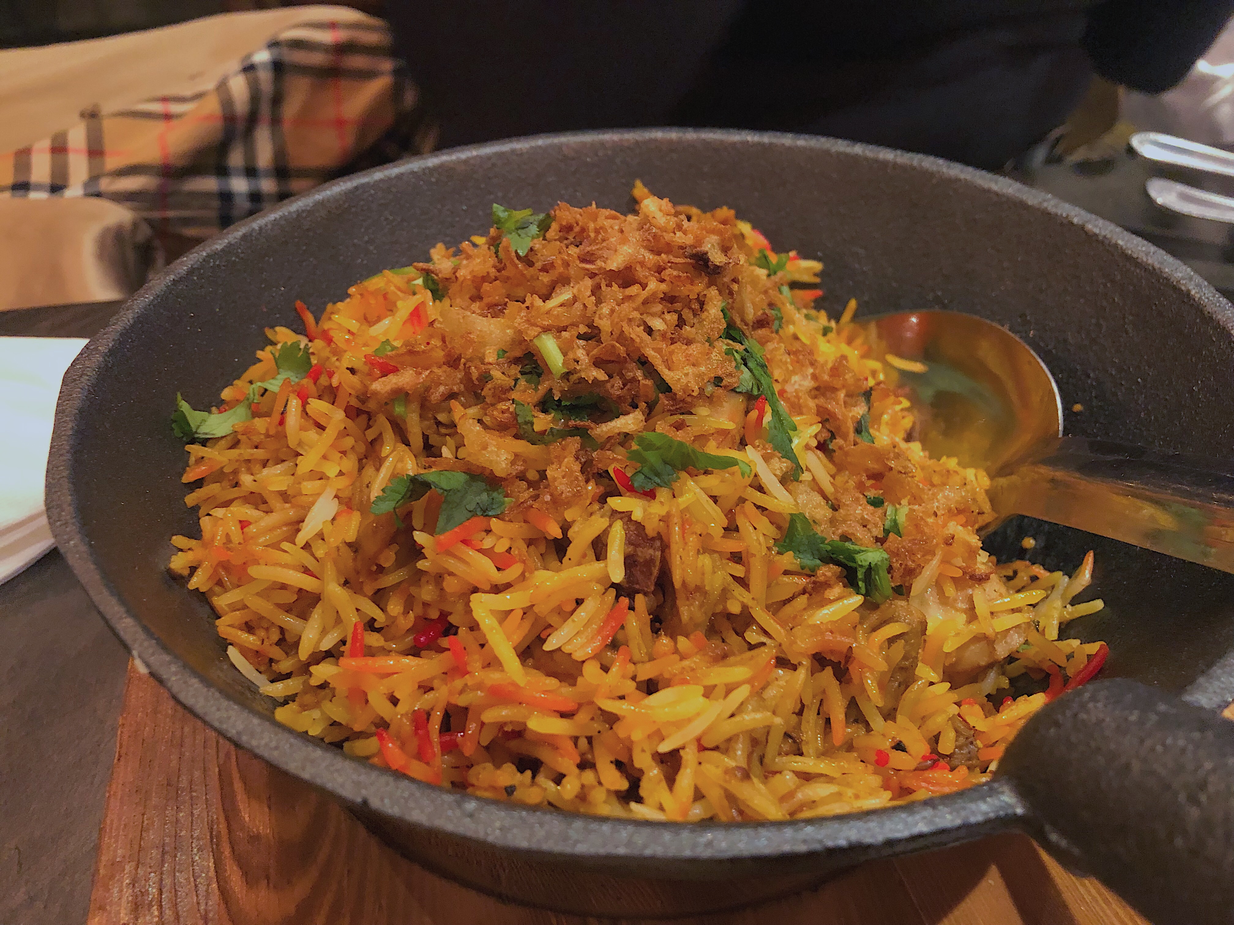 On top of the stews, we also ordered Chicken Dum Biryani. This is a popular rice dish cooked with spices and chicken legs still on the bone. We started with two orders of the Aashik Beef Seekh Kabab, which was flavourful from being cooked in a tandoori oven and each dish comes with a trio of Kababs. Although it wasn’t the juiciest of all time, it did go down well, and the green sauce served alongside was a big hit.