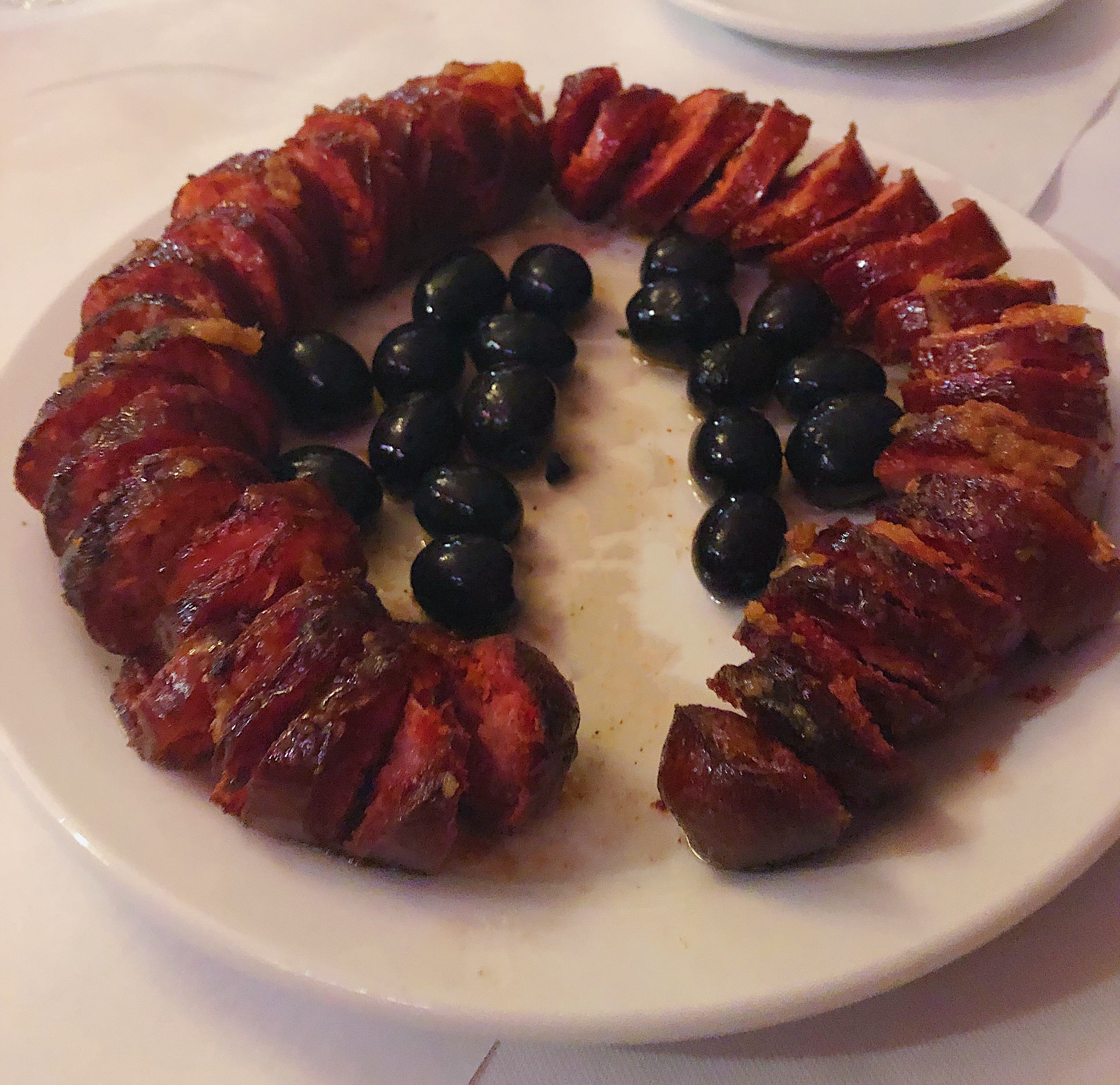 Grilled Smoked Pork Sausage / Chouriço: A crowd favourite, these pieces of seasoned sausage are perfect to share while waiting for more plates.