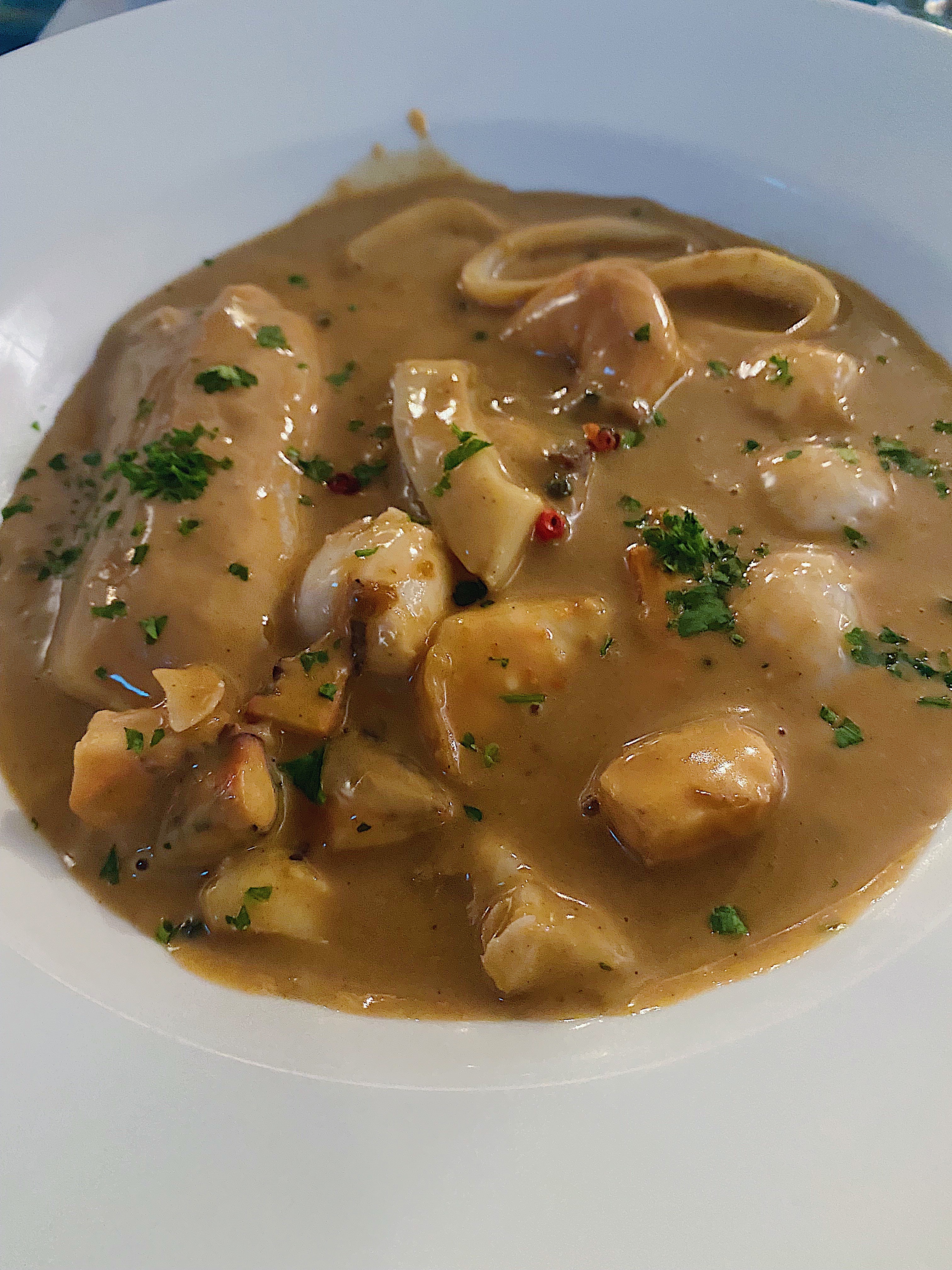 The sauces that accompany the proteins each take on unique characteristics that hail from various corners of the globe. The Creole sauce is a tomato base with fresh ginger and garlic, while the Indian Ocean Curry one uses classic Indian spices, and the Coco Seychelles is cooked with coconut milk, turmeric and cumin. The Poivre has a thick gravy like sauce that is seasoned generously with peppercorns. There’s a Cajun sauce that’s heavy on paprika, and finally, our must-try dish of the night is the Tandoori, which is on the spicier side and cooked using classic Indian spices. The Tandoori stew is served with a white fish fillet that varies depending on the season and availability.