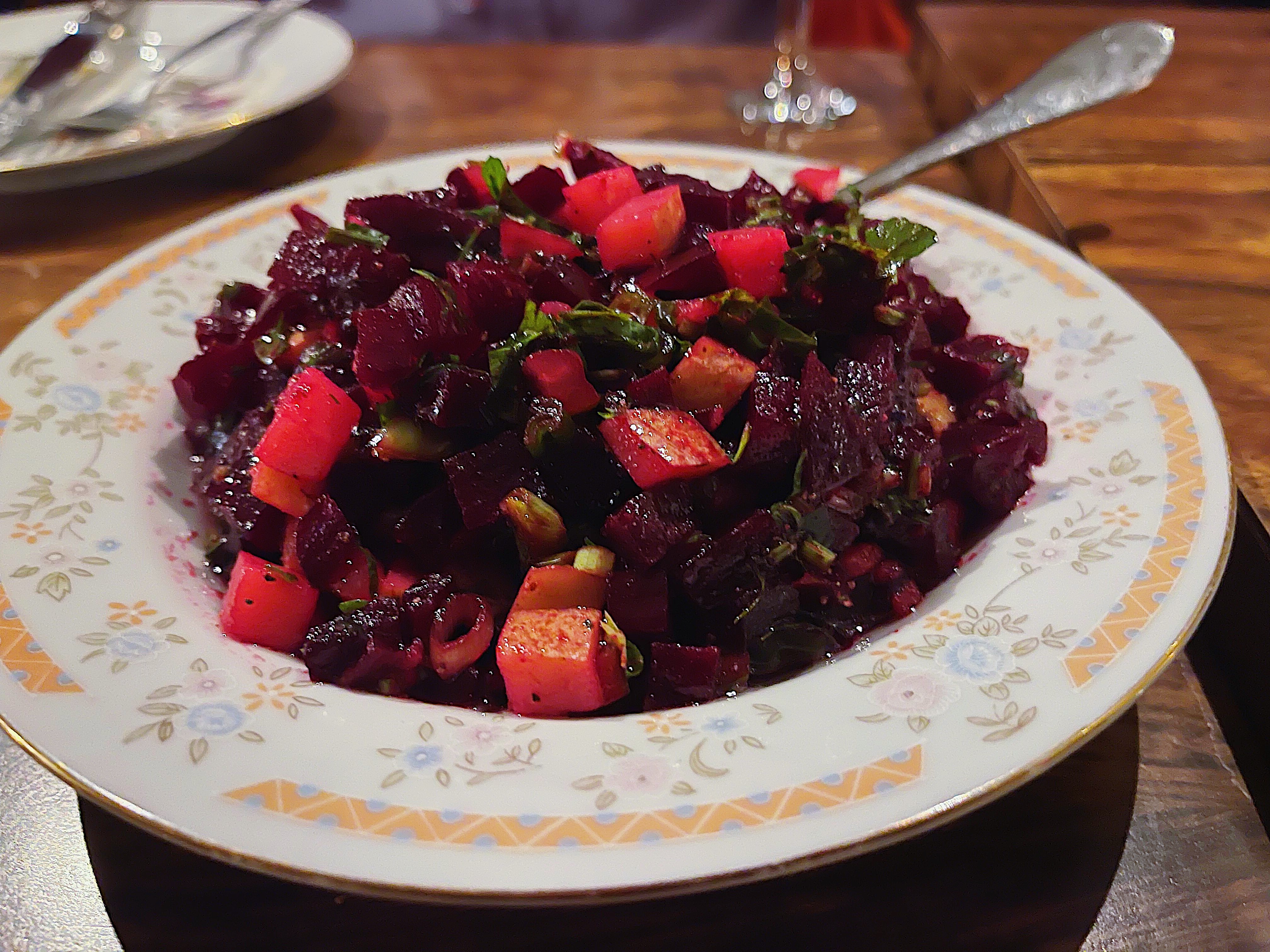 The final dish of the night was a half bowl of Borsch. The bright pink soup can seem intimidating at first glance, but between the beets, beef, sour cream and dill, it’s difficult to not love the flavour.