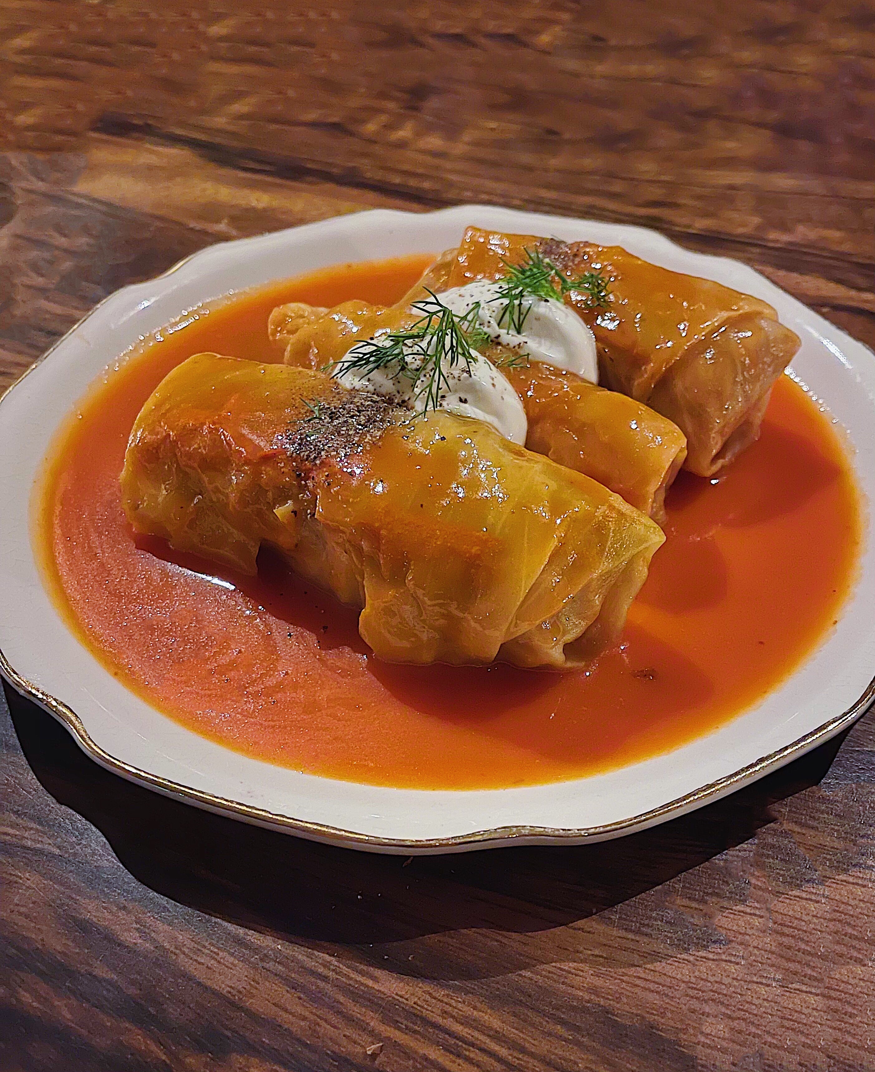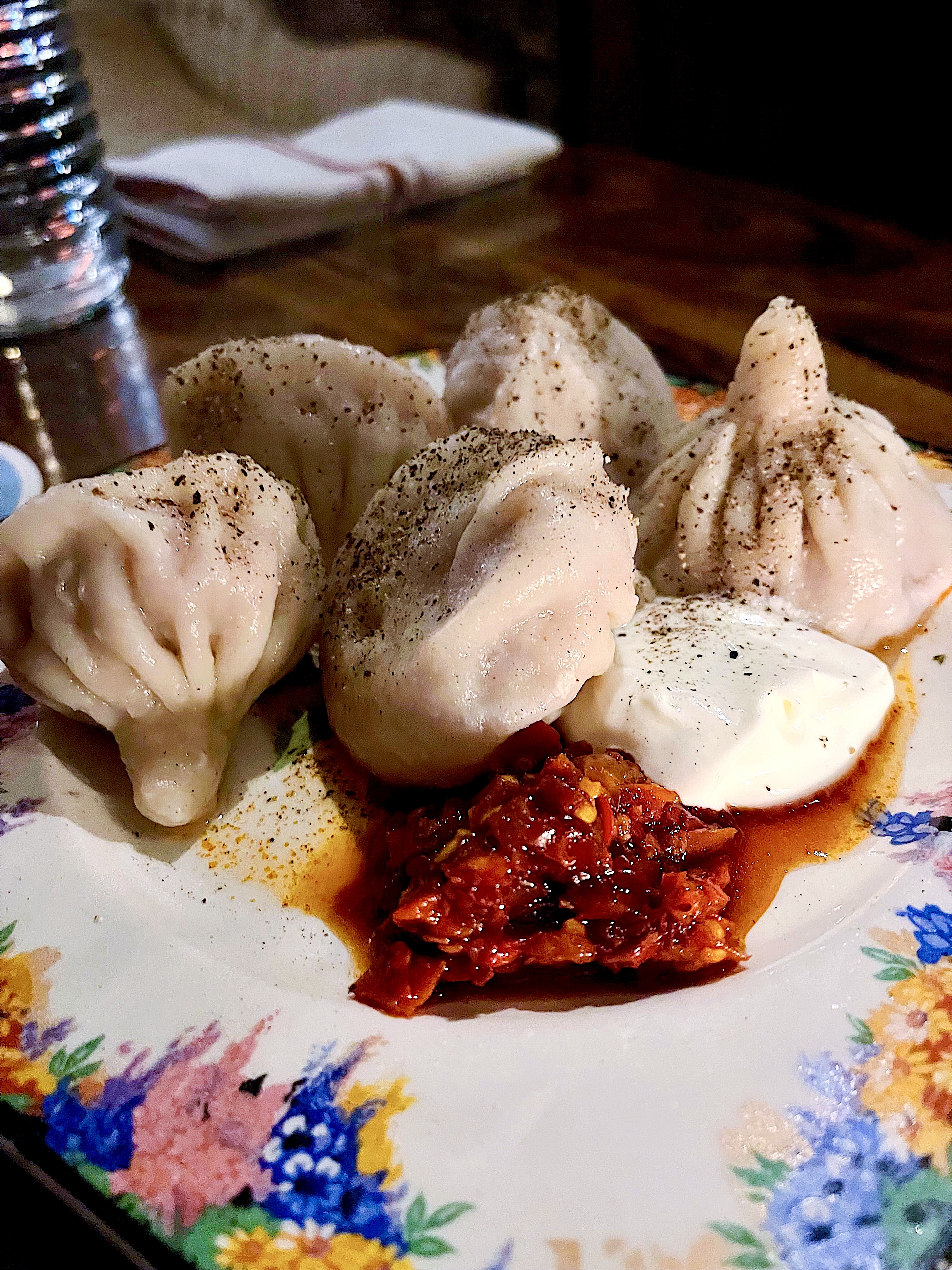 The first plate was the Khinkali which is a dumpling stuffed with ground beef and pork hailing from Georgia. It is larger in size by at least two times than a Chinese dumpling or a momo, and they come in individual orders so each person had their own. Unlike Chinese dumplings these are served alongside sour cream and red pepper relish. It was followed by their Cabbage Rolls, which are stuffed with beef and pork and served swimming in a tomato sauce and topped with sour cream and dill.