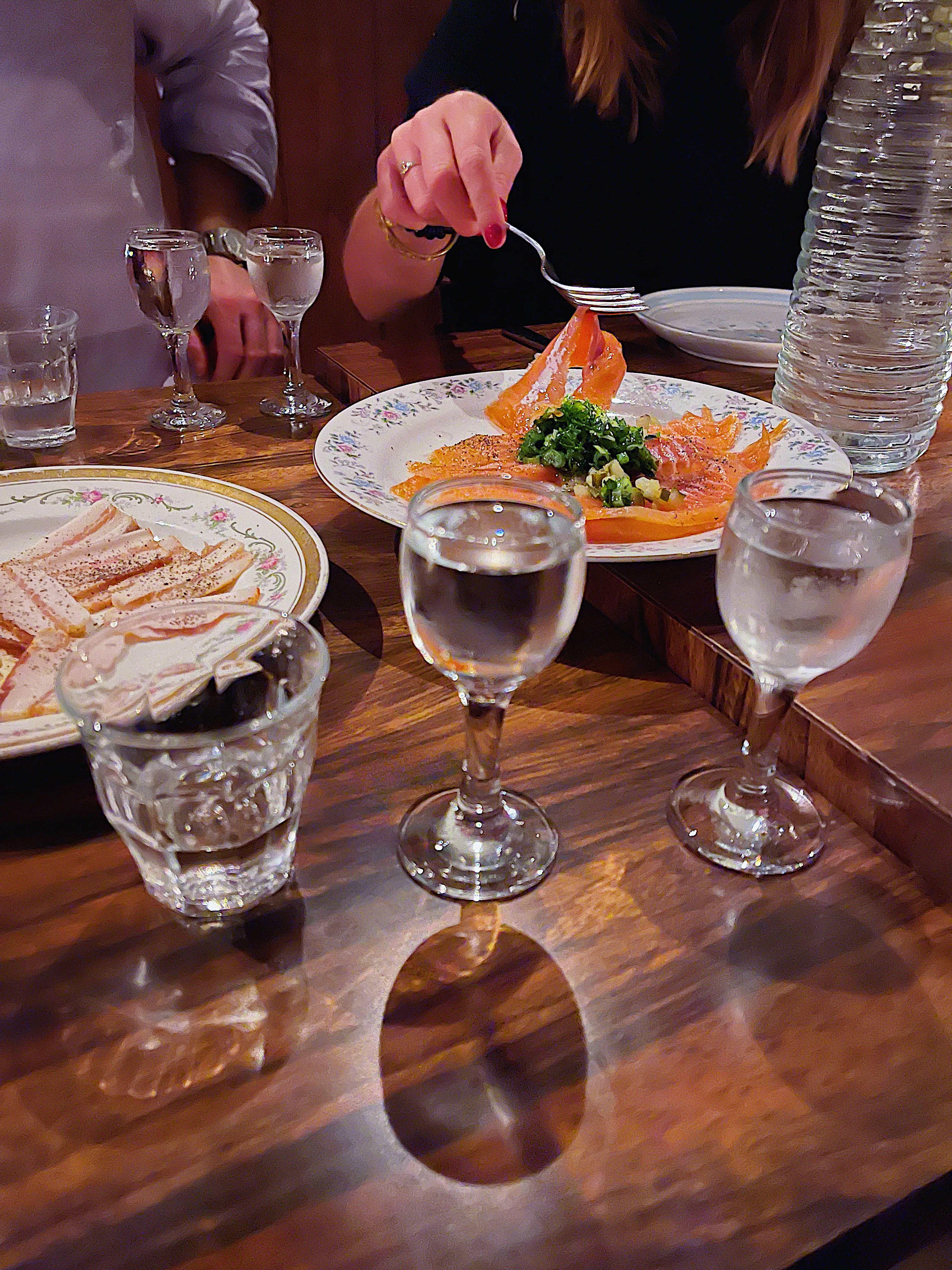 Russian cuisine isn’t something that’s widely discussed, unlike the country’s politics, but our experience at Stop was remarkable. There were debates about the top dish, as everyone seemed to have a couple of favourites. Although the food is on the heavier side, there are a number of dishes that balance in lightness and taste, such as dill that’s used in the majority of dishes. It appears that there are more Russian dinners on the horizon for Eat the World TO and friends.