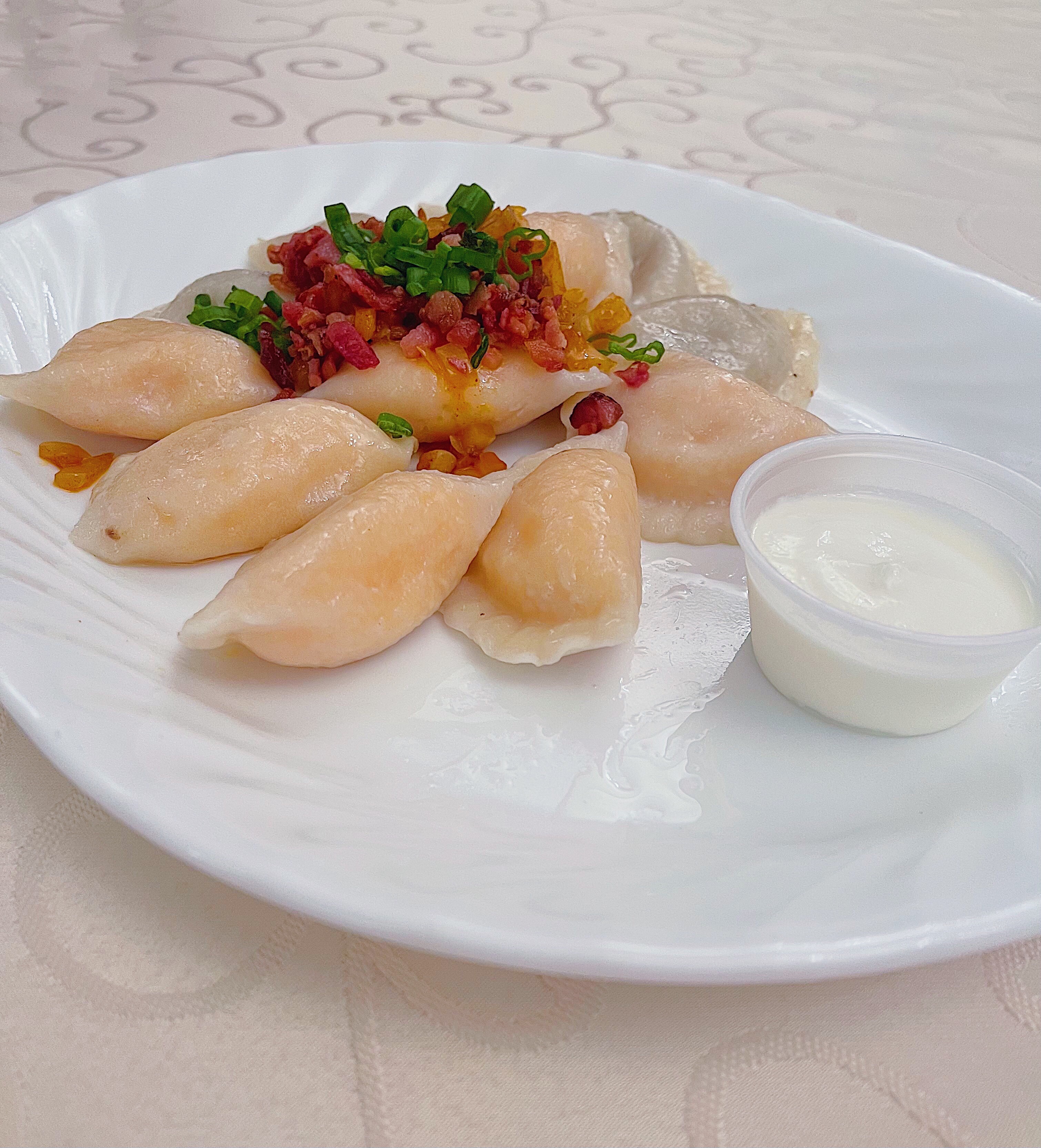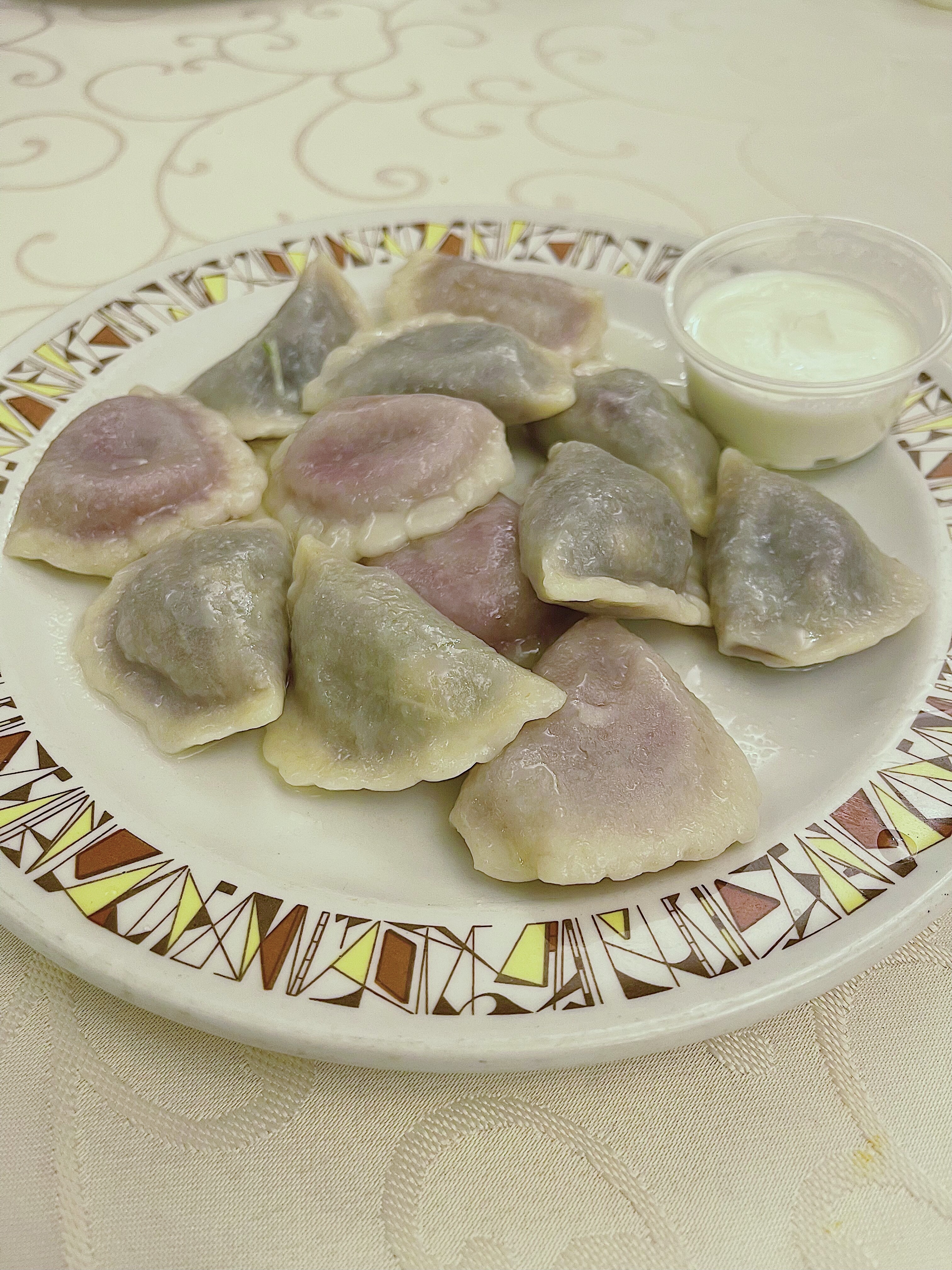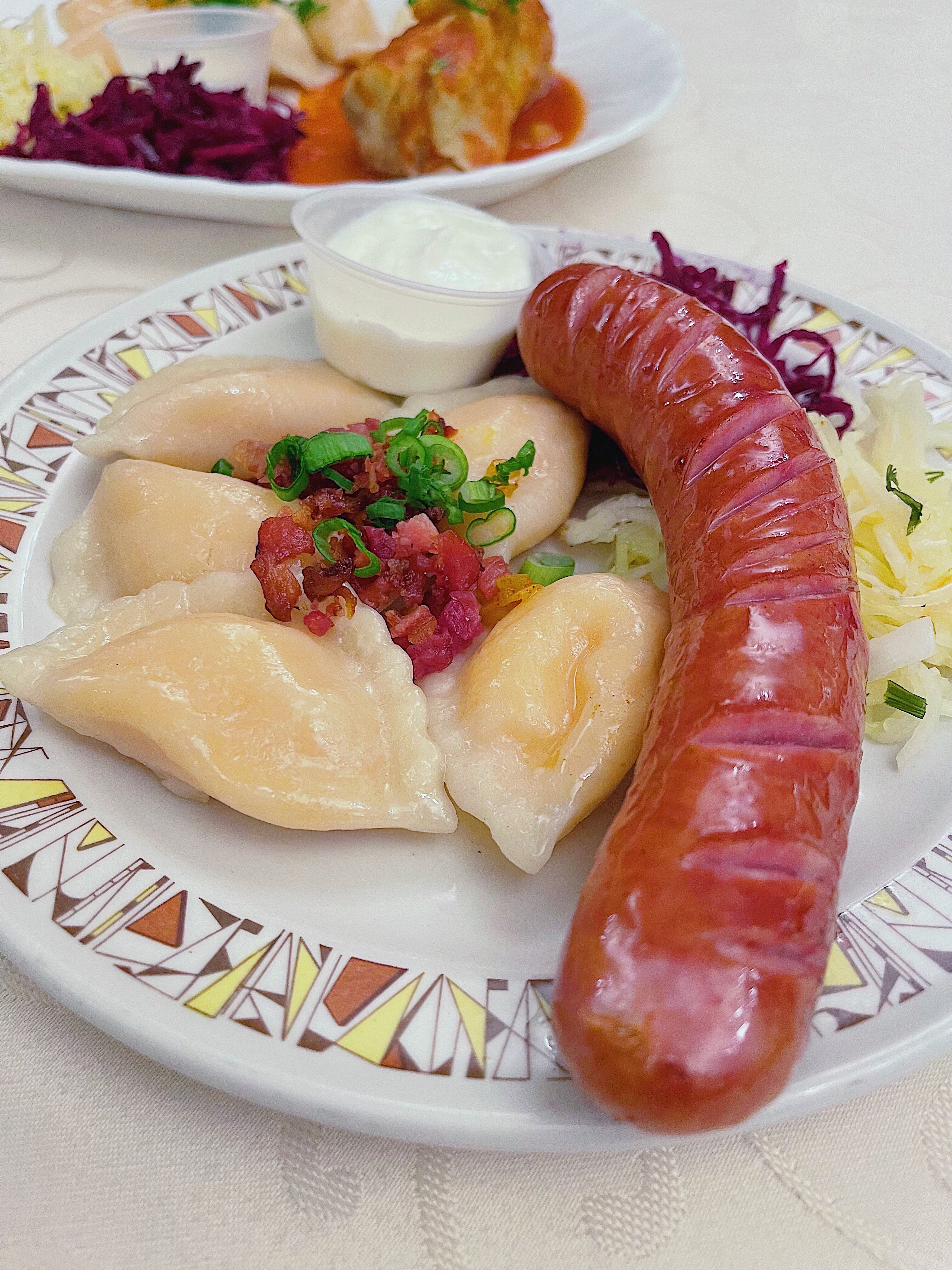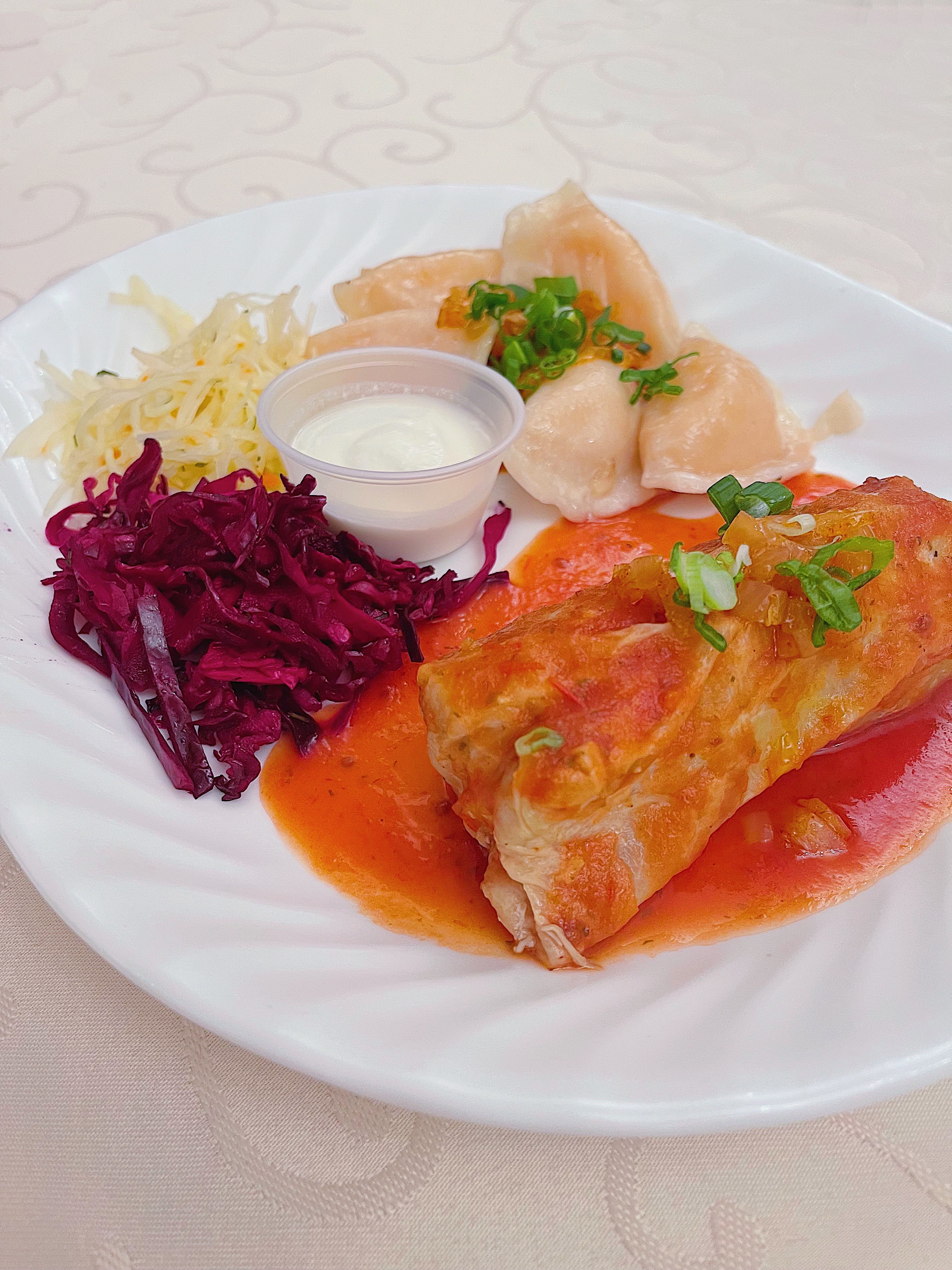 Heavenly Perogy first appeared on our radar during a Federal Election as there was a voting station in the basement of St. Volodymyr’s Ukrainian Orthodox Cathedral on Bathurst Street. The restaurant operates in the humble kitchen of the church with a few tables dressed in red tablecloths and bouquets of flowers at the centre of each. Despite having dine-in and catering options available, the takeout side of the business seems to be thriving.