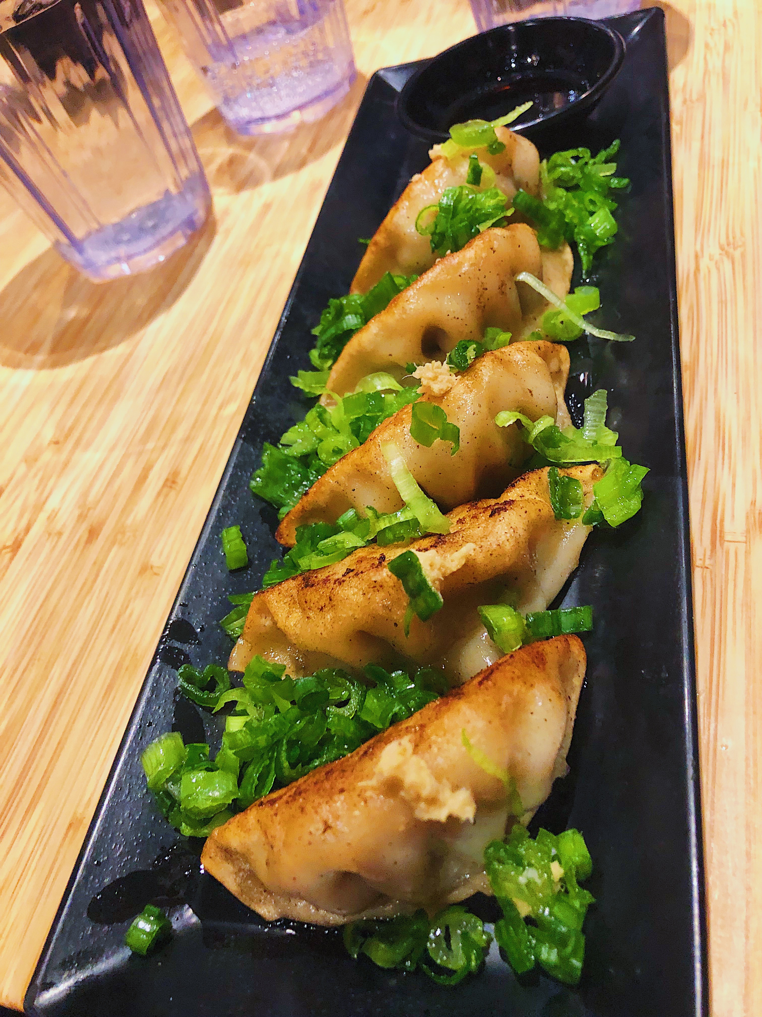 The sides were shared among the group, and it was easy to order the majority of the menu seeing as there are only five options. We opted for the Seaweed Salad, Negi Shoga Gyoza (pork dumplings topped with ginger and scallions), Zangi (deep-fried chicken pieces), and Gyudon (cooked beef on top of white rice).