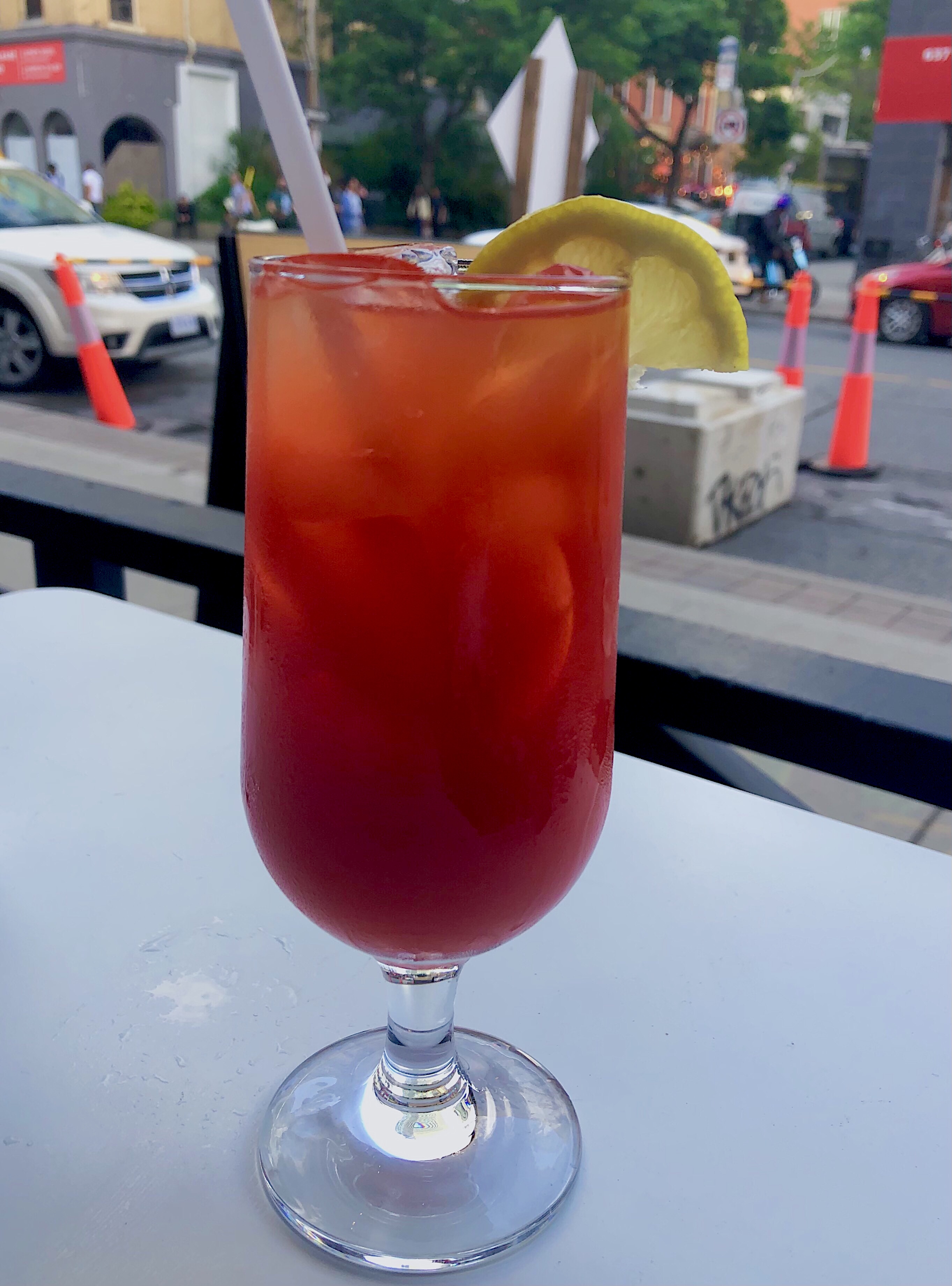 There are two smaller tables by the open window on nicer days that are the ideal place to sit for people watching. That’s exactly where we decided to enjoy our meal on a sunny Wednesday night. With such a great dining location, it was a no brainer to order the signature Rum Punch to sip on while perusing the menu. Everyone adds their own special touch to a Rum Punch, and in this case, it was a heavy handed pour of Jamaican rum, but no one’s complaining over here!