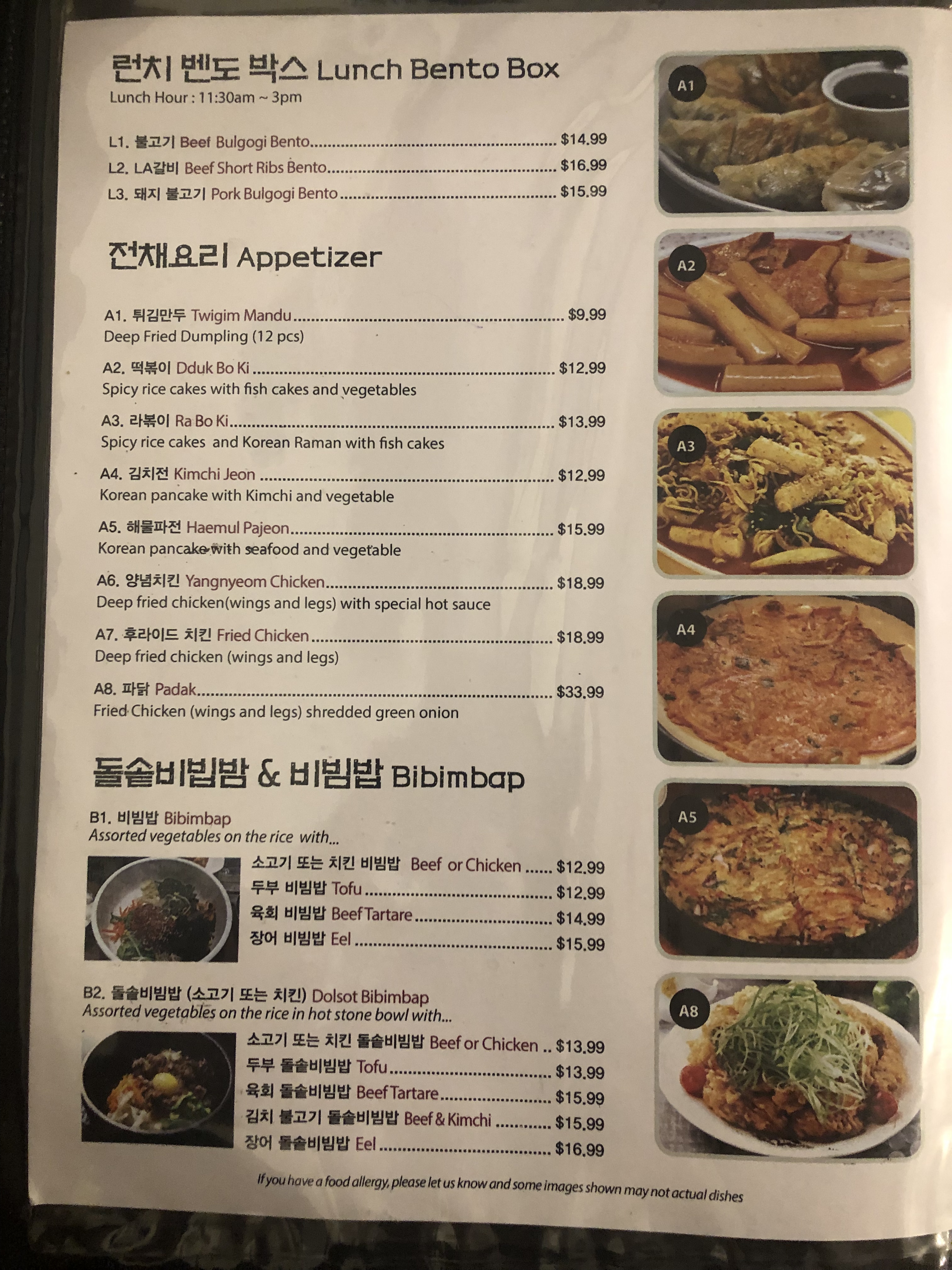 The high: All the dishes are traditional South Korean.