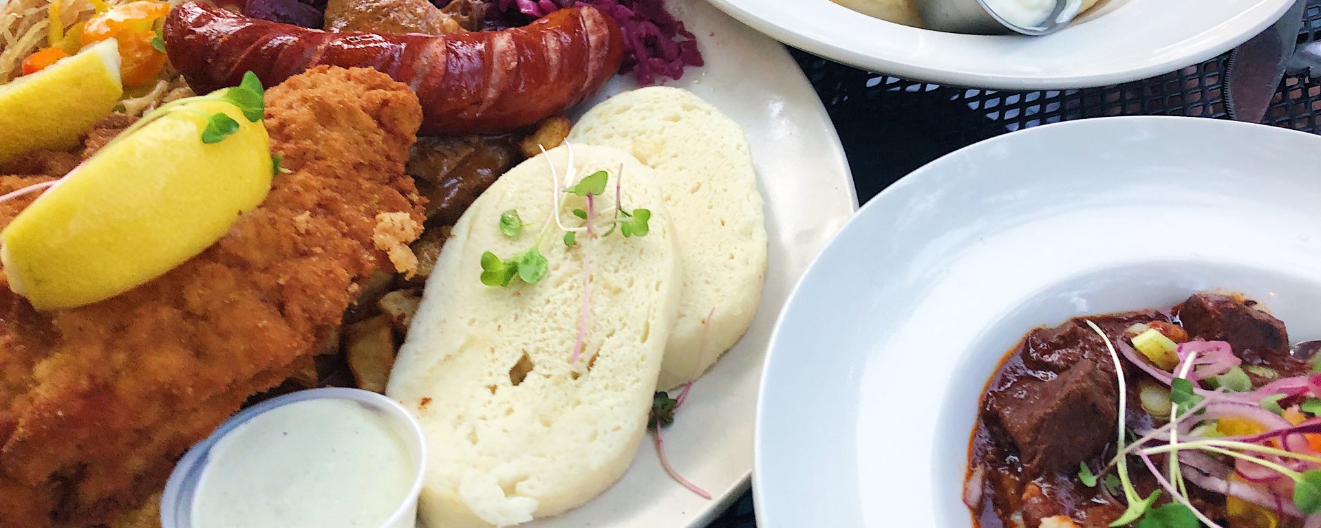 An evident dish to share is the Bohemian Platter – a plate packed with traditional schnitzel, sausage, tender pork roast, red cabbage, sauerkraut, and roasted potatoes. Dumplings are also advertised, though Czech dumplings don’t come stuffed with other ingredients, instead they are a fluffy bread-like texture that easily captures sauces. We thought that we would warn you so that you know they are in fact there, and if you want something stuffed, best try their Pierogi’s, potato and cheese ones are on the menu and also made there way onto our plates!