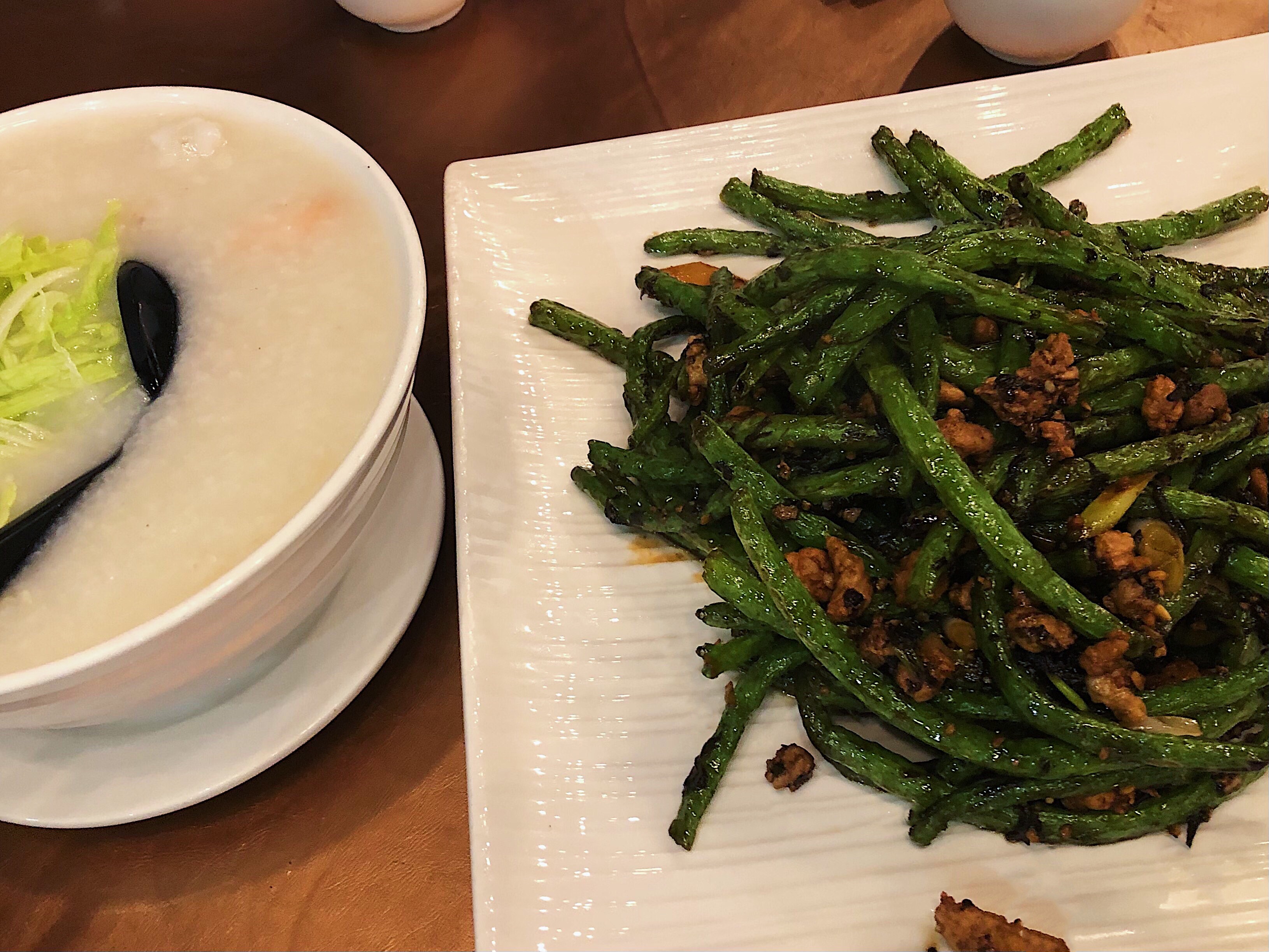 Several of the dishes sounded tempting and we tried to diversify the order to try as much as possible for the size of our group. Our server was terrific in suggesting a healthy mix of vegetables, seafood, beef, and pork. He even deterred us from ordering the traditional Congee that comes topped with a pickled egg and has a reputation of having a violent stench.