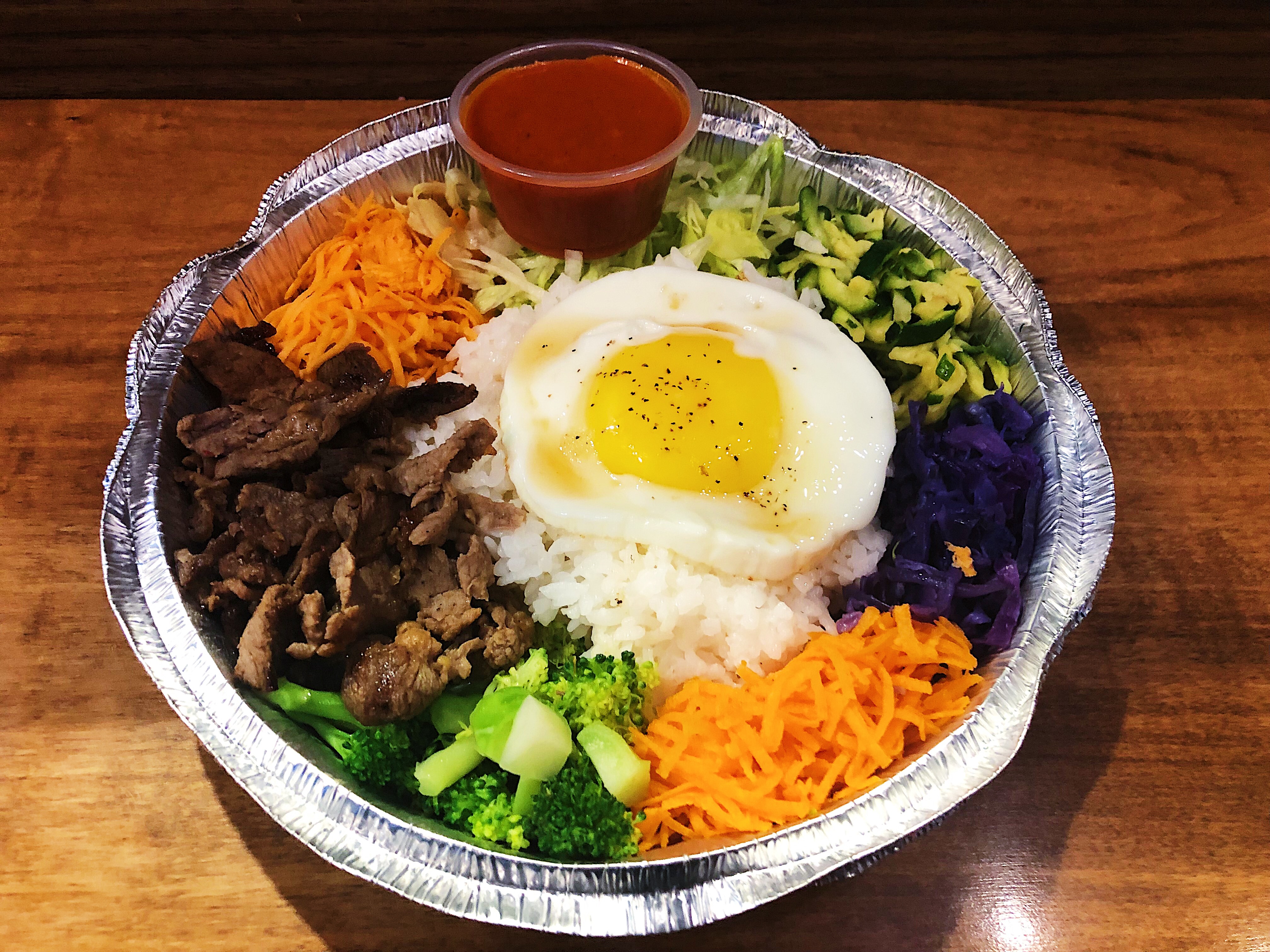 The other Korean dish on Bob’s menu is Bibimbap, which translated into English means ”mixed rice”. Not surprisingly, it’s a rice based dish with pickled vegetables, protein, and topped with an egg. It typically has a dollop of hot sauce on it, so spicer haters beware!