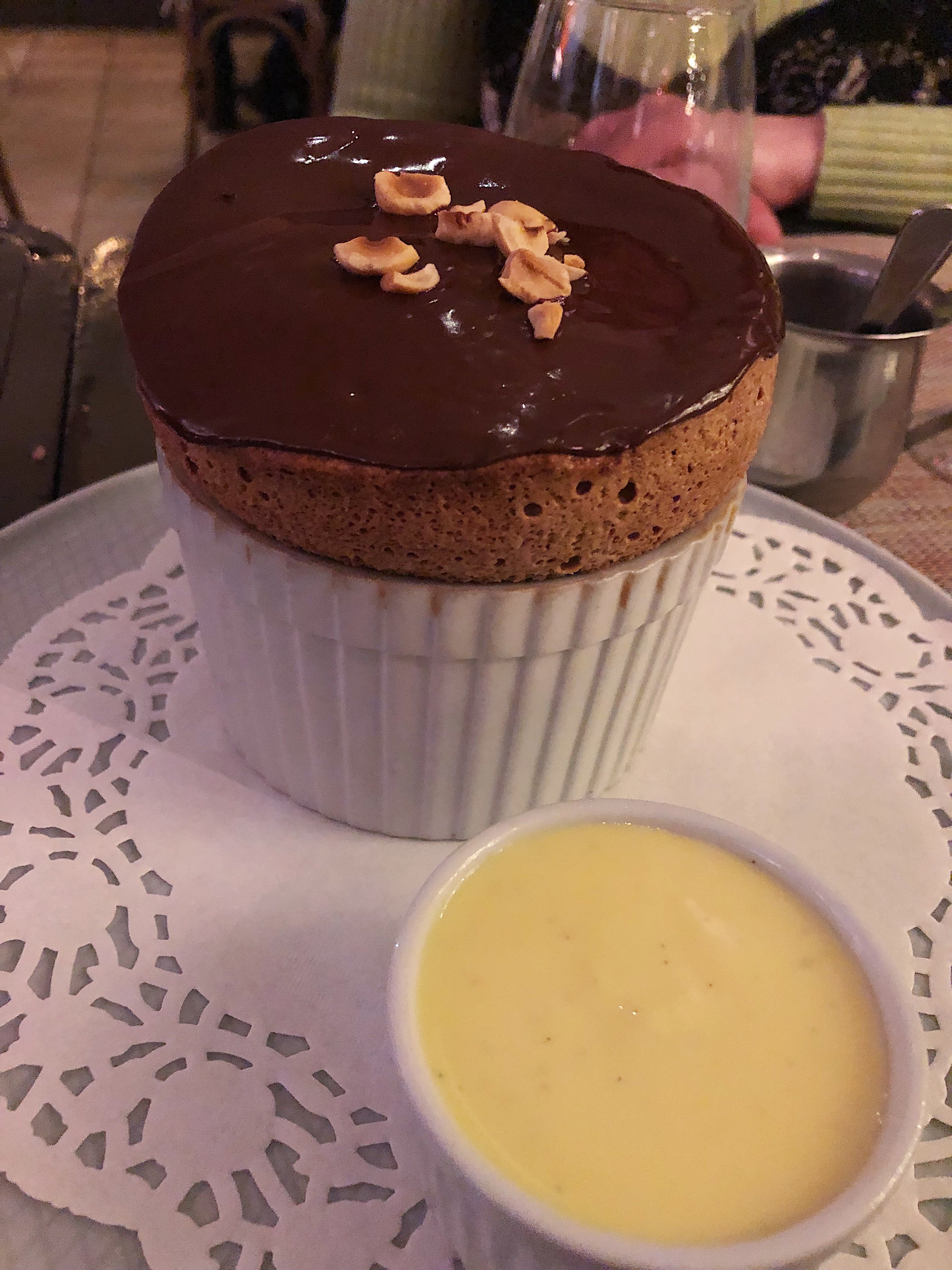 As for dessert, you can stick to cheeses or go somewhere sweeter with an éclair, a soufflé, or a “délice au chocolat”. With our servers recommendation we opted for the Grand Marnier Soufflé, it takes 25 min to bake but the creamy moist cake is a perfect way to end a French feast.