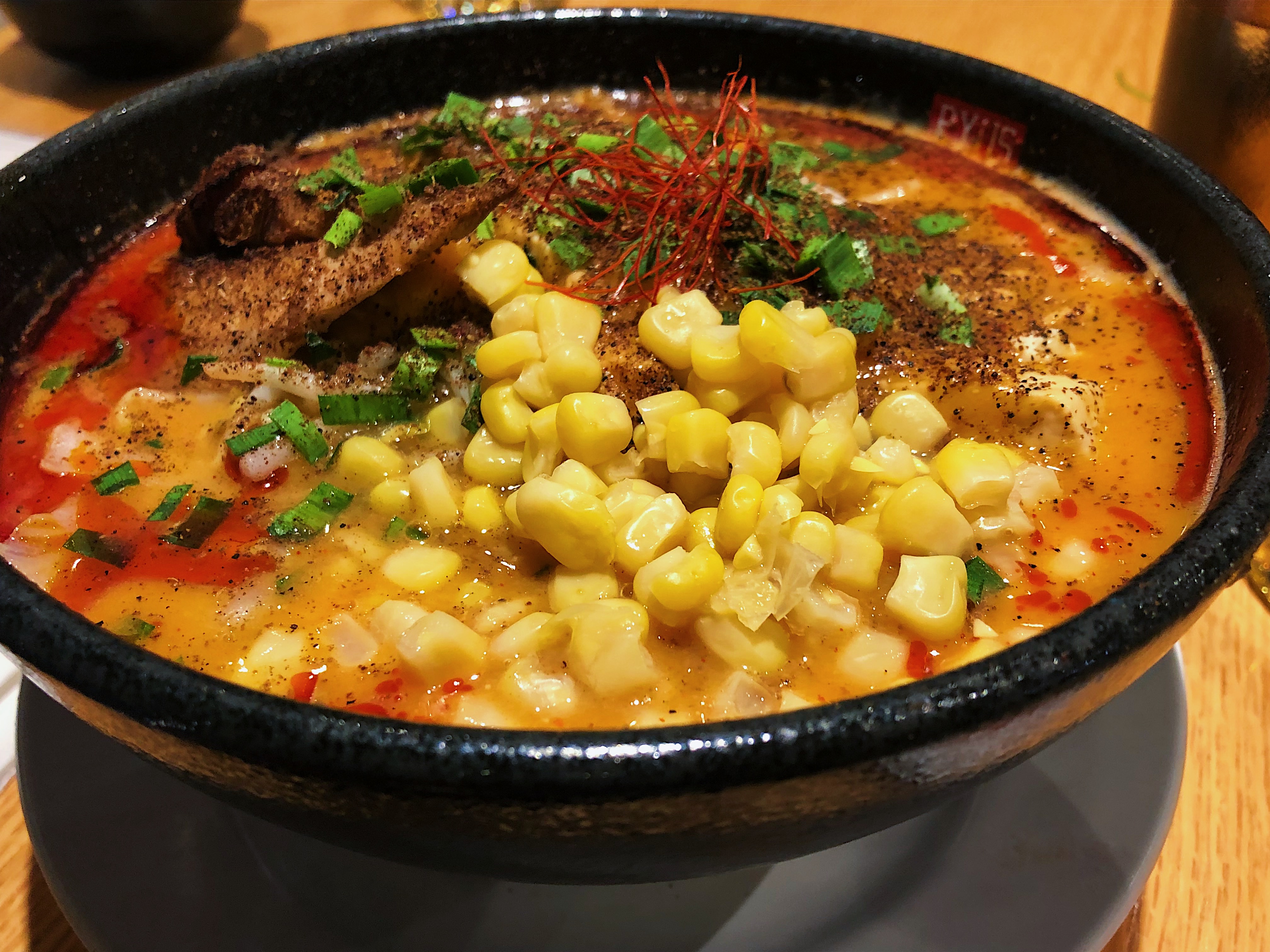 The most traditional is the Nostalgic Japanese Shio – the base is a clear chicken broth that’s fresh in its flavour. The toppings include chicken, steamed greens, a hard-boiled egg, sesame oil, lemon zest, and thin noodles.