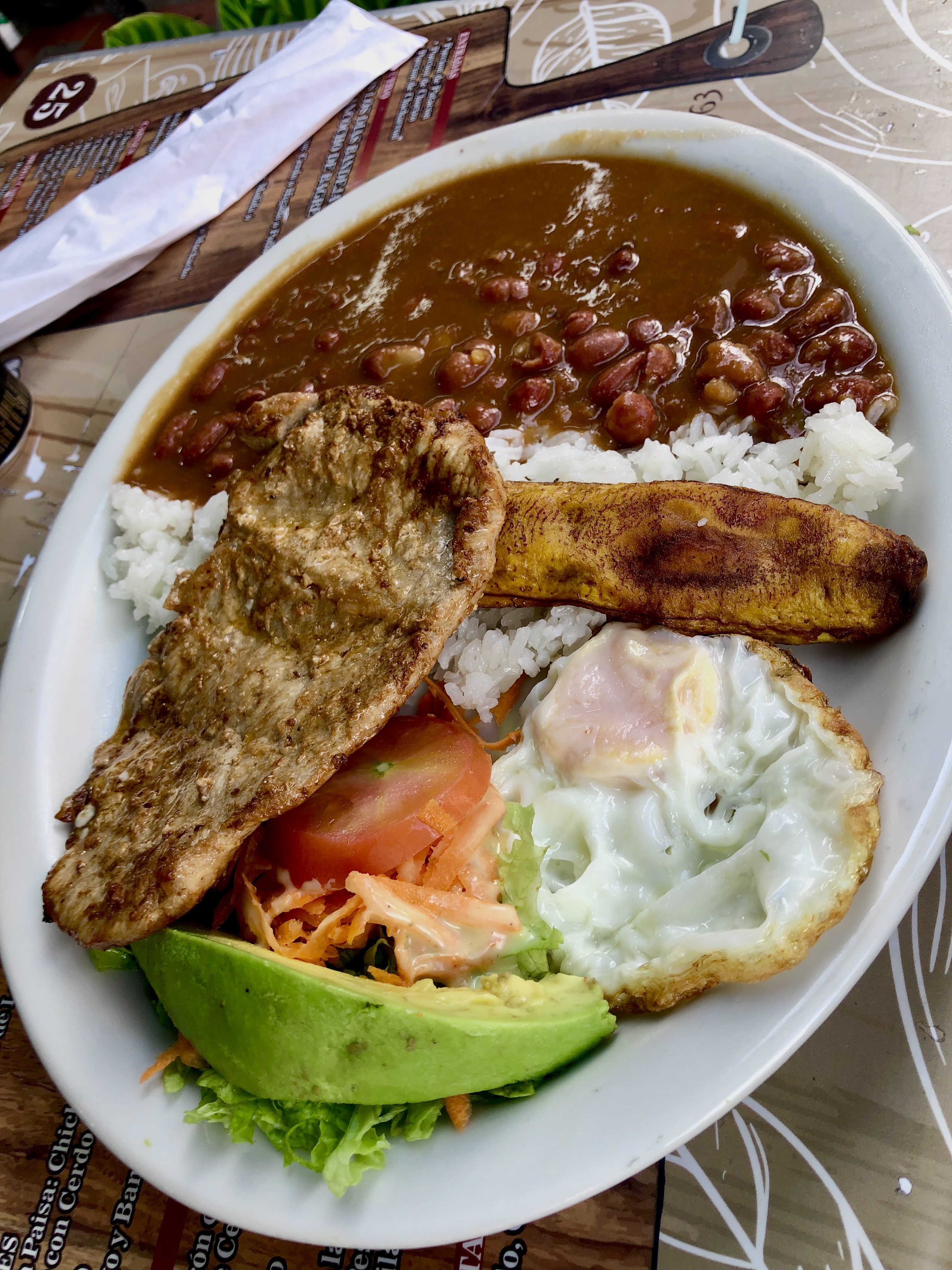 One of the most common proteins in Colombia is Chicharron, which is fried pork belly (rind) that has a crispy layer on the outside with a moist chunk of meat inside. Combine that with sausage, ground beef, rice, beans, arepa, plantain, and a fried egg, and you’ll be bursting at the seams and in serious need of a nap. Such a decadent dish is called Bandeja Paisa – the national dish of the Paisa’s, which is the region including and surrounding Medellin.