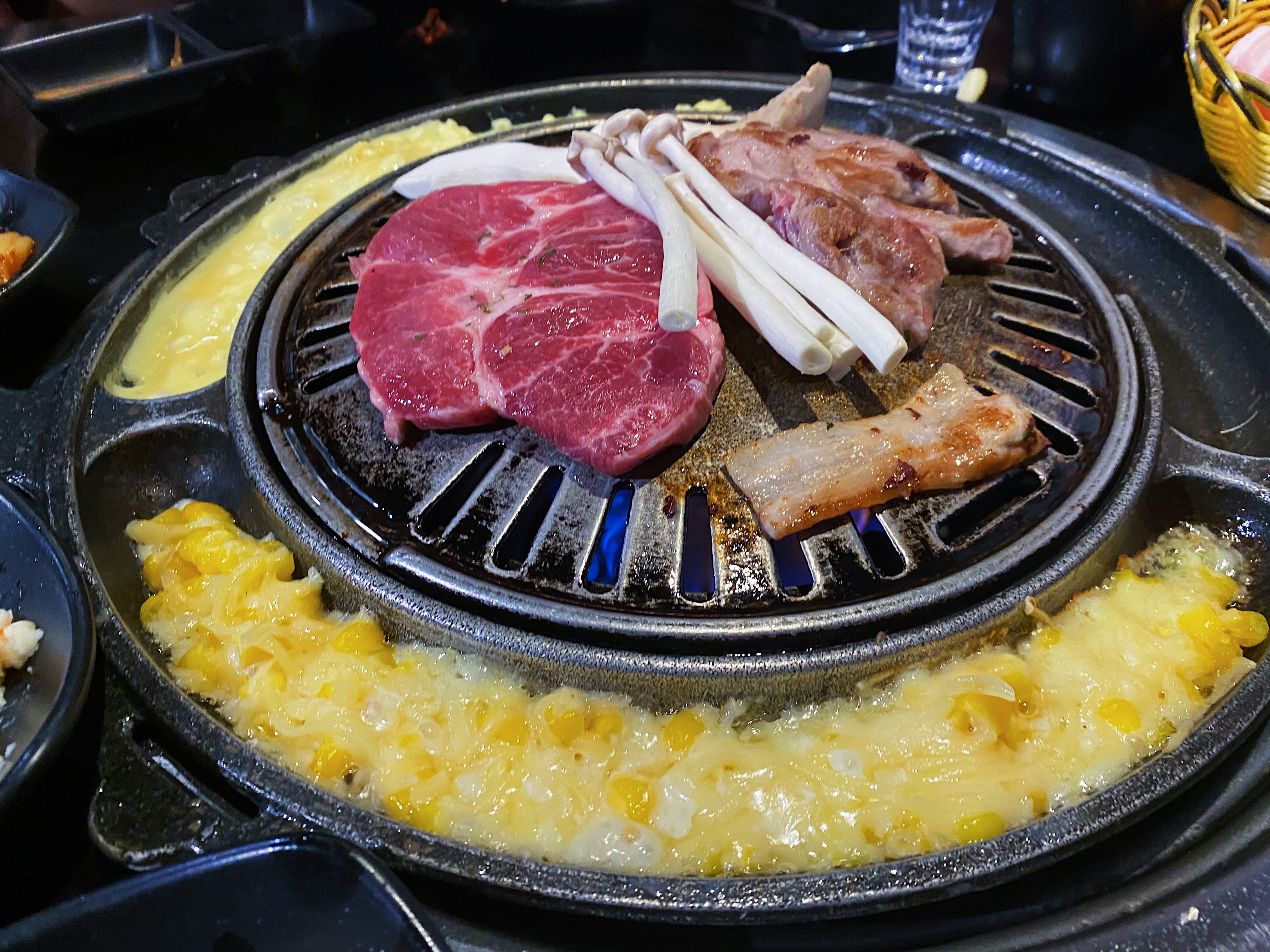 When it came to the ribeye steak, one of the staff members cooked it and cut the meat into thin slices while it was on the grill. This made it easier to eat, and easier to share. The combo that advertises it feeds four to five people also hilariously comes with a small bowl of spicy tofu soup that is meant to be shared among the group. Godspeed on that side of things!