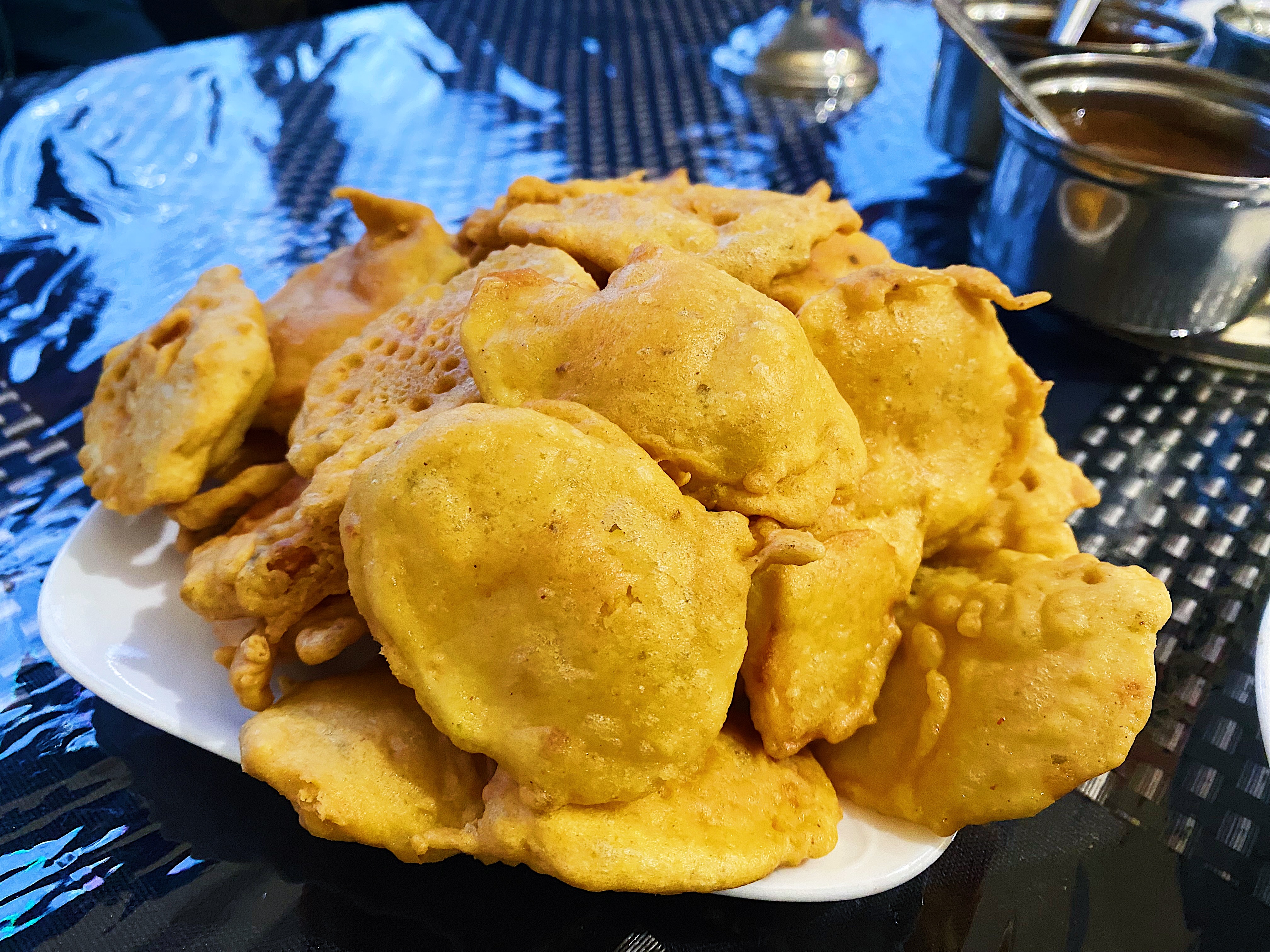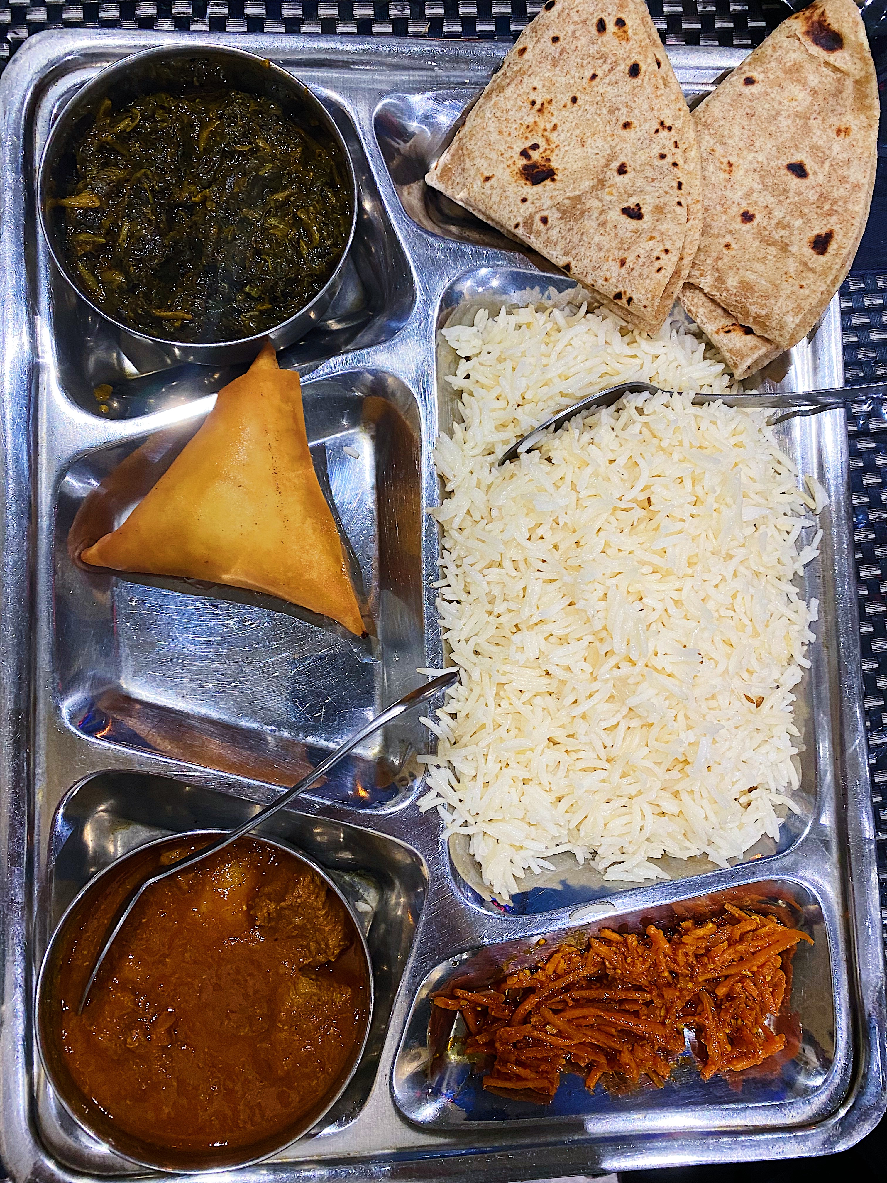 The Beef Thali Platter – the must-try dish of the night, is a large plate with sections for rice, a beef samosa, pickled carrots, a beef curry, a spinach curry, and roti. The curries were great over rice or for dipping the roti into. The beef curry was in a tomato base with small pieces of potato and meat, while the spinach curry seasoned spinach that was cooked down. Both were tasty. The carrots had a tangy taste that lingered but added some vegetables to the meal.