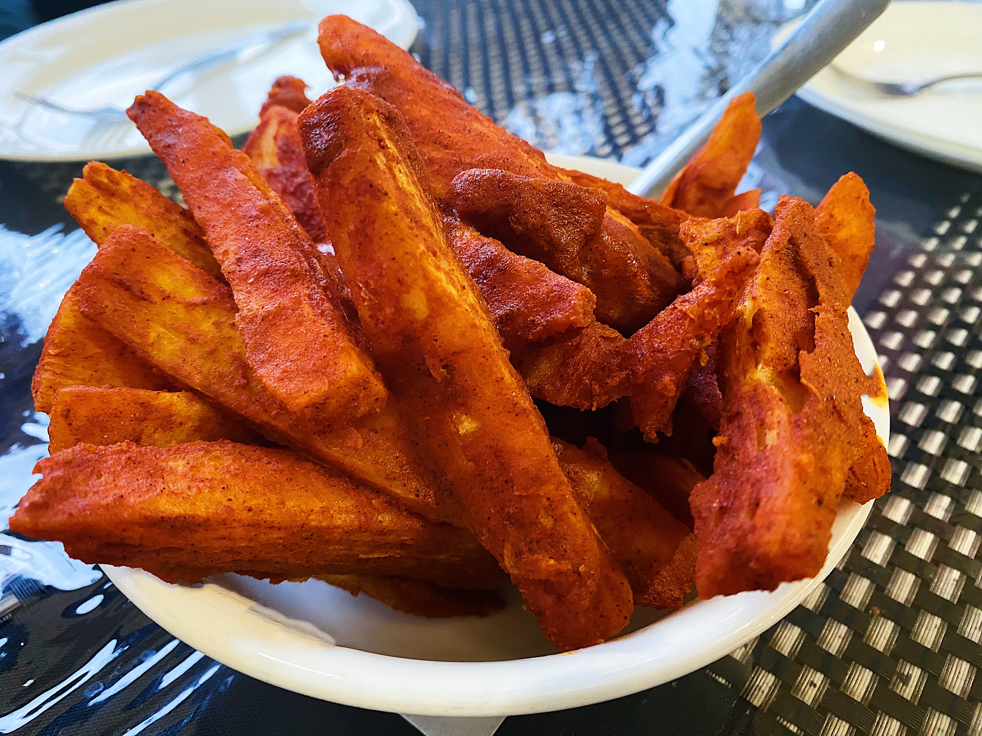 We ordered a few appetizers to start that were easy to share. The Mogo are long pieces of cassava that are deep-fried and seasoned with pili pili. They look like french fries but are a little thicker. Pili pili is a sauce or a rub popular in African cuisine made from a variety of chillies and garlic. It can be spicy, but it;s also flavourful.