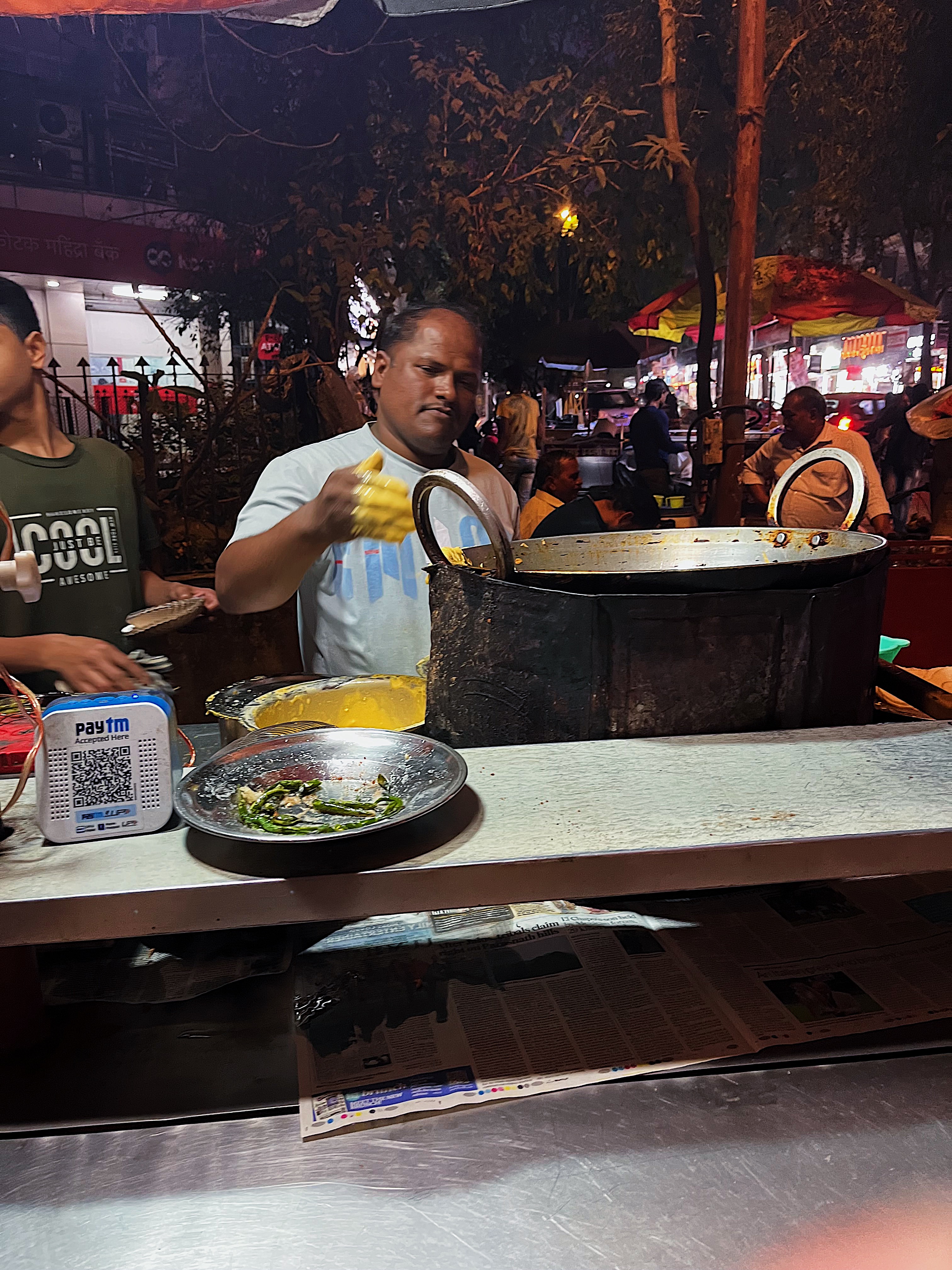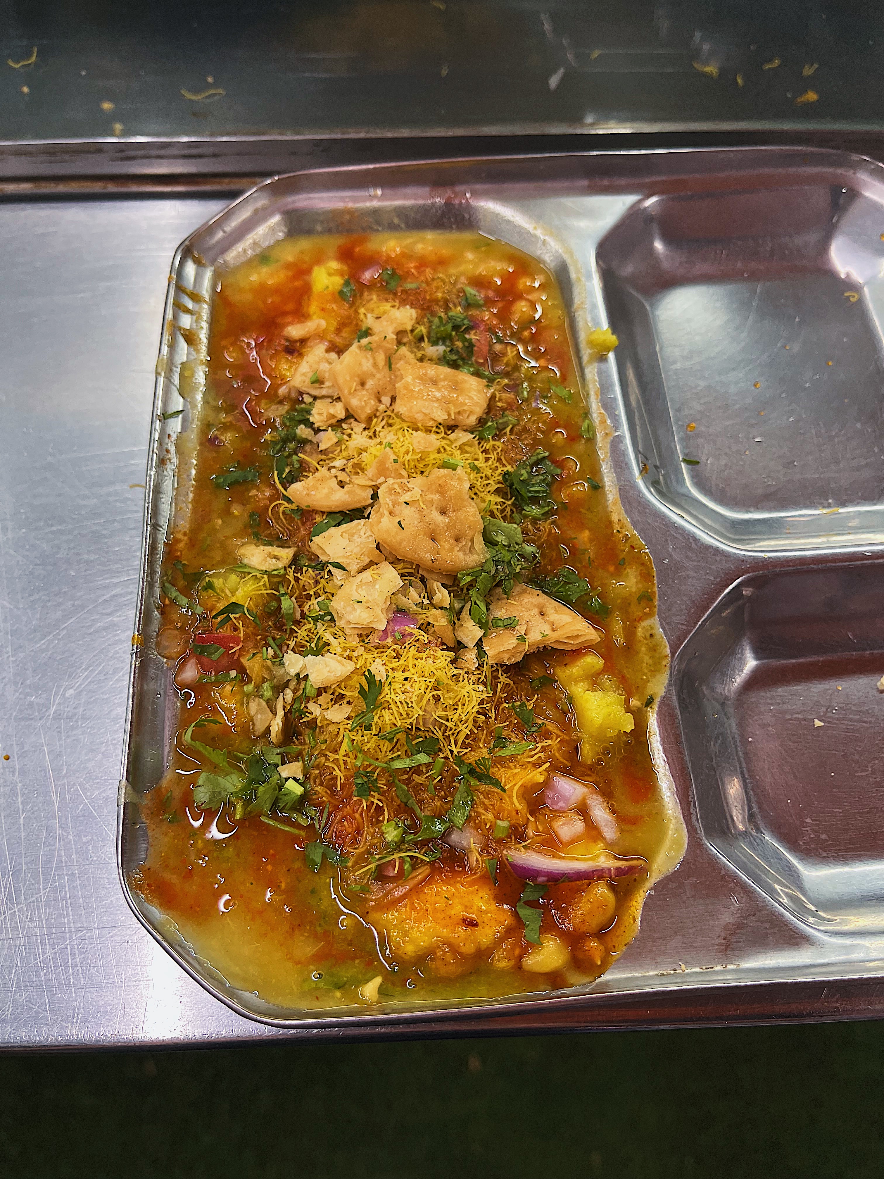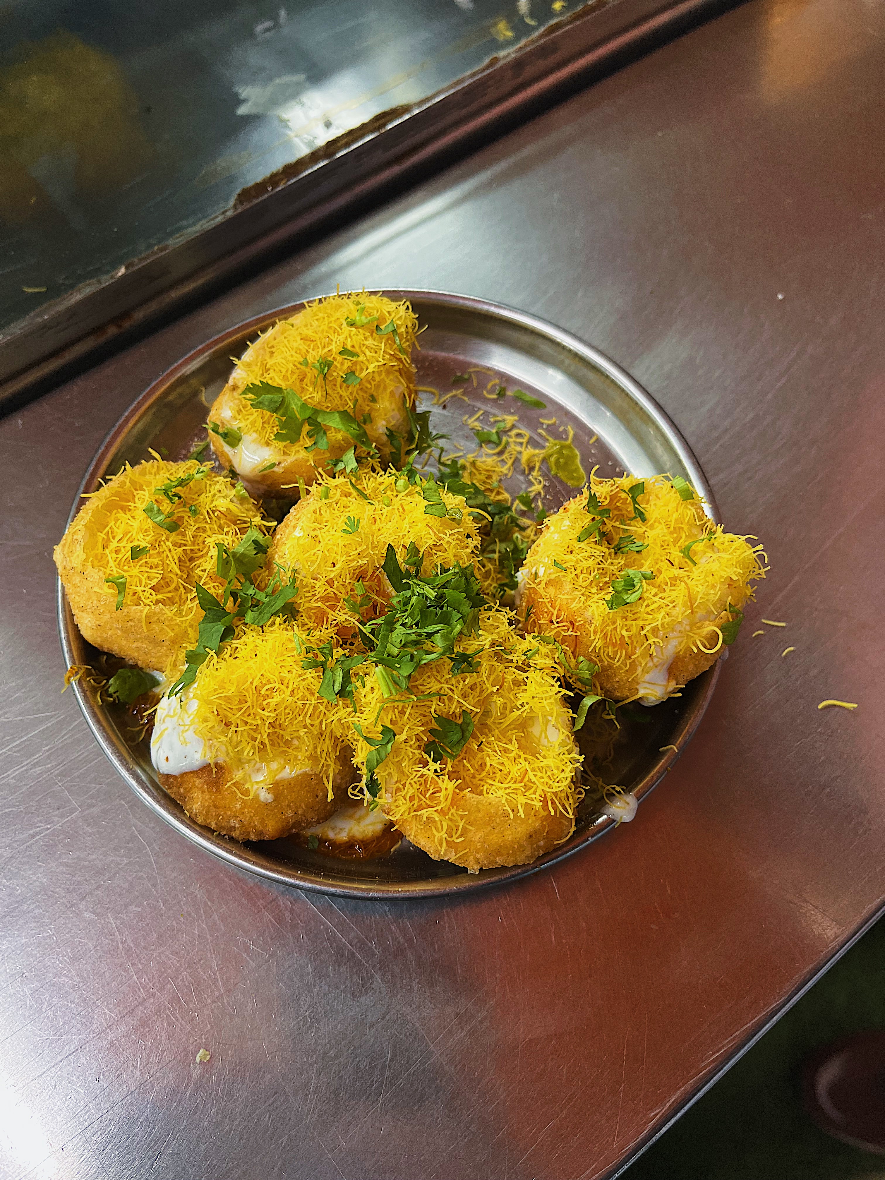 These bite-size shells are stuffed with a yogurt filling that contrasts the crunchy exterior. You’ll likely want to order a couple because they’re so easy to eat, and are lighter than several other street food options in India.
