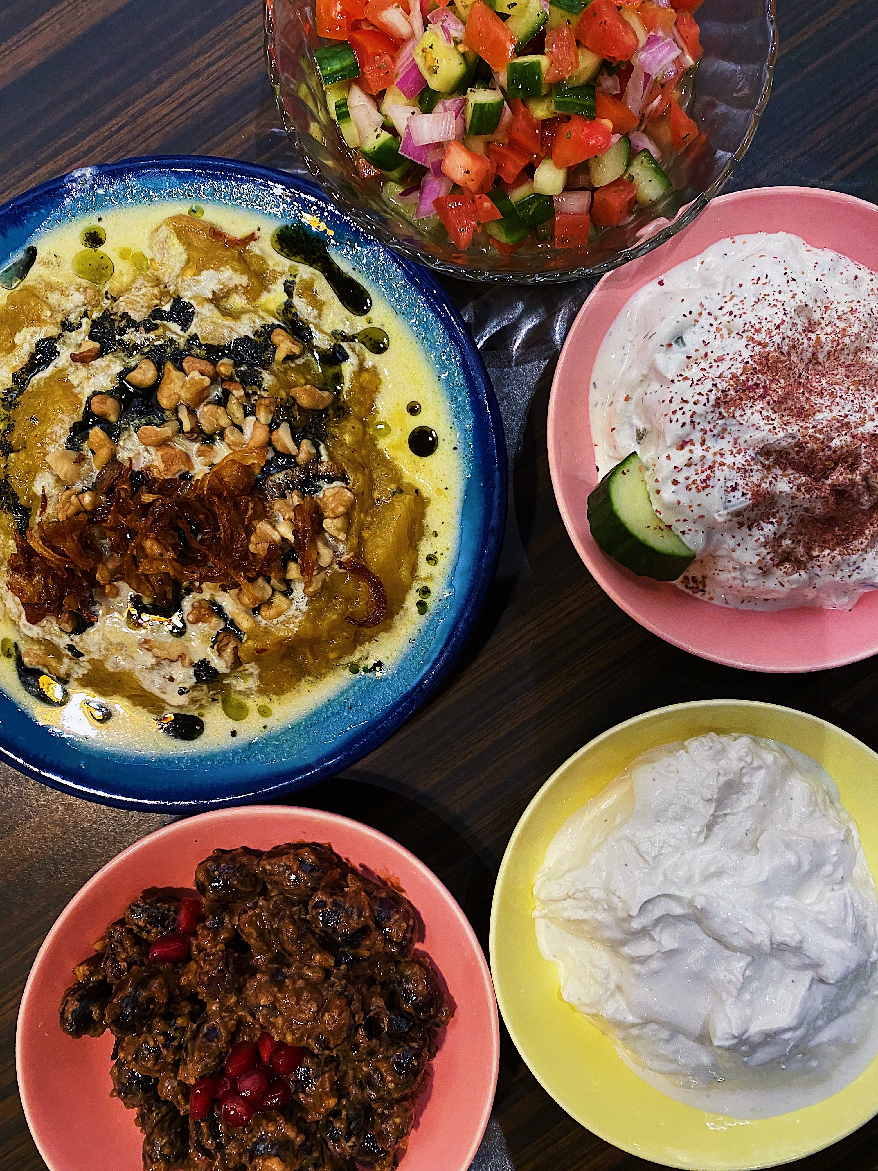- Shirazi Salad: Persian food is always a win because of the fresh ingredients and vegetables. In this case, the cucumbers, tomatoes and onions are seasoned and dressed in olive oil and lemon. Can you ever go wrong with such a thing?