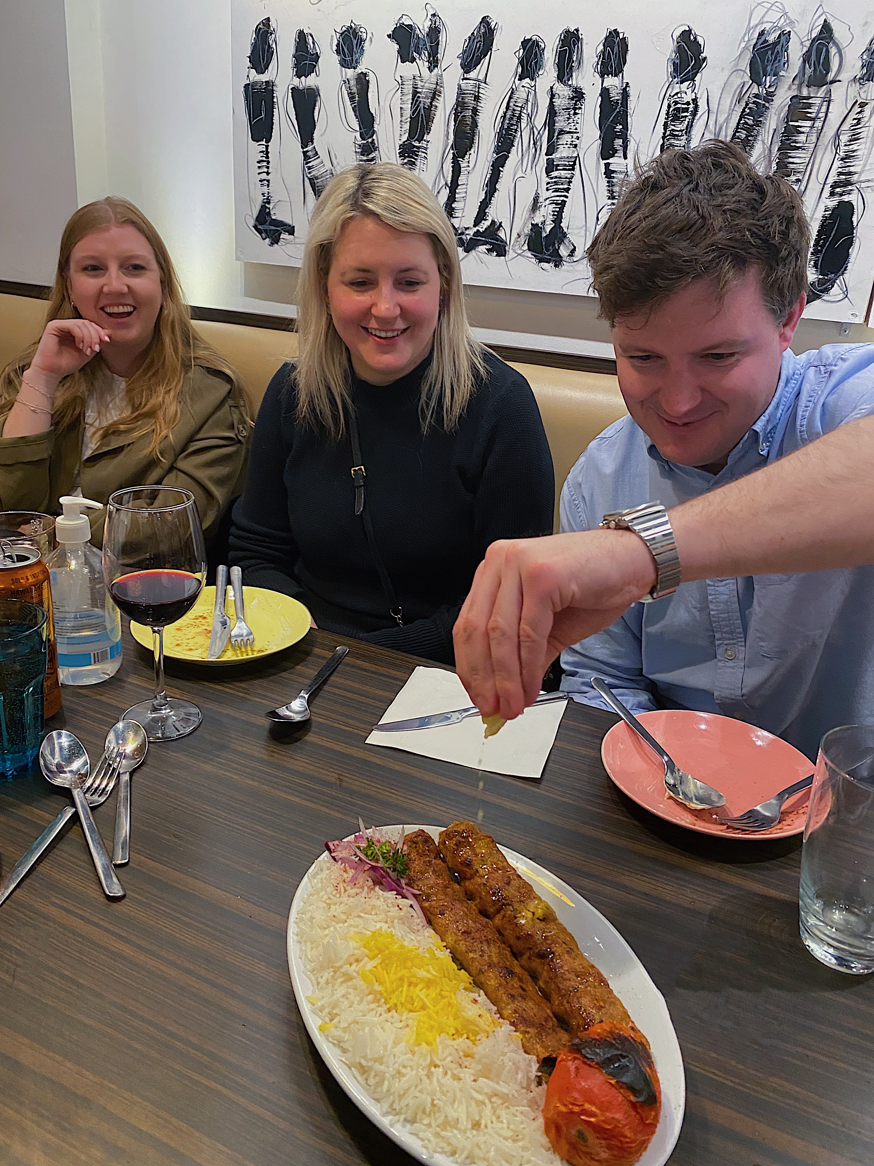 A group dessert tasting took place starting with the Persian Baklava Cake, which is baked with saffron and rose syrup. It’s worth getting because of the flavour combinations that compliment each other. However, the Saffron and Pistachio Ice Cream is also worth a try as it’s presented with crushed pistachios, rose petals, and jams on top – the Persian style of a sundae. Saffron in dessert is less common in the western world so getting a taste of these delights evoked a love affair.
