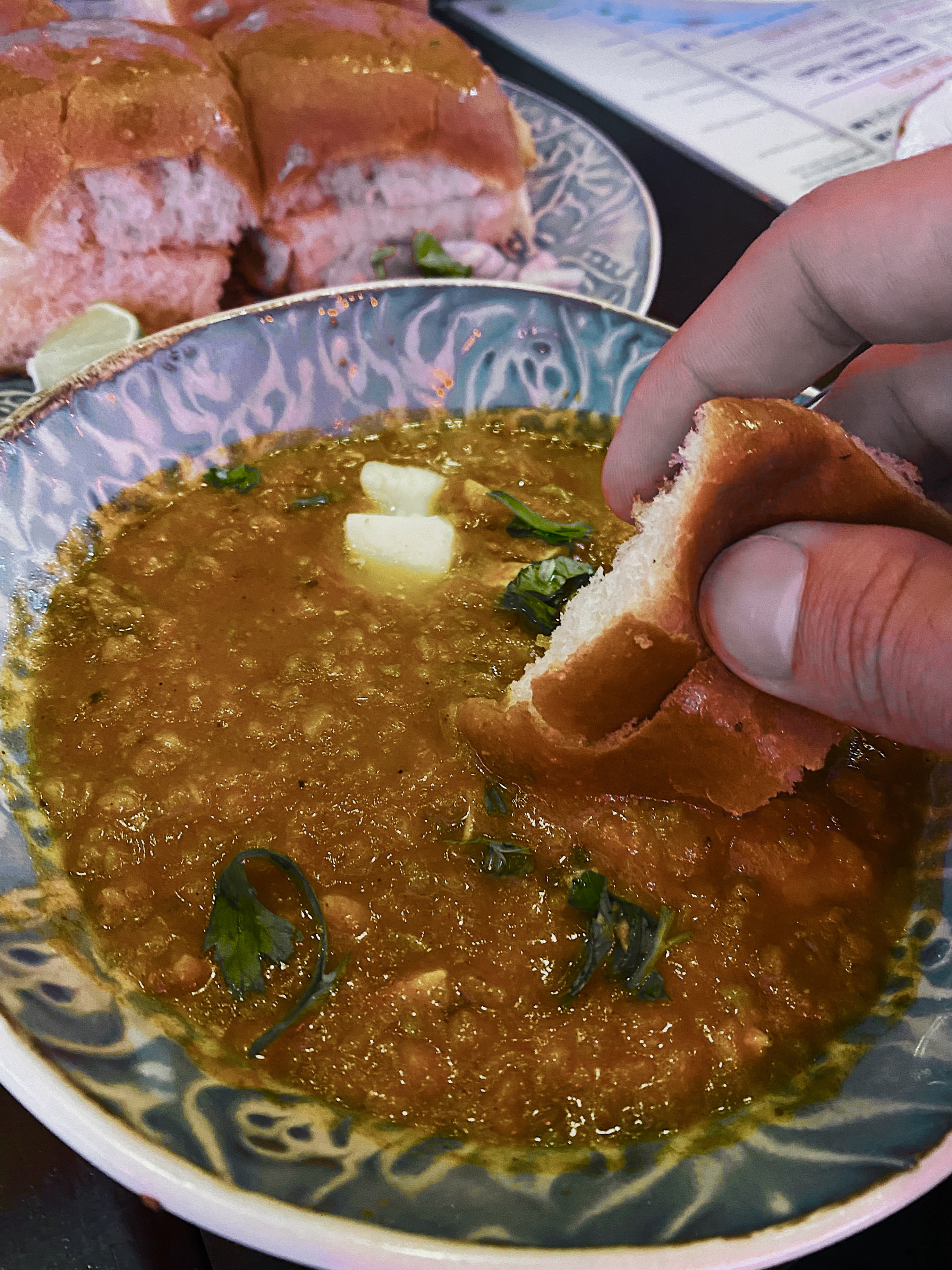 Another classic street food from Mumbai, this is a duo type of dish made up of a dinner roll that’s dipped into a spicy curry sauce. Unlike other Indian breads, this one soaks up all of the sauce.