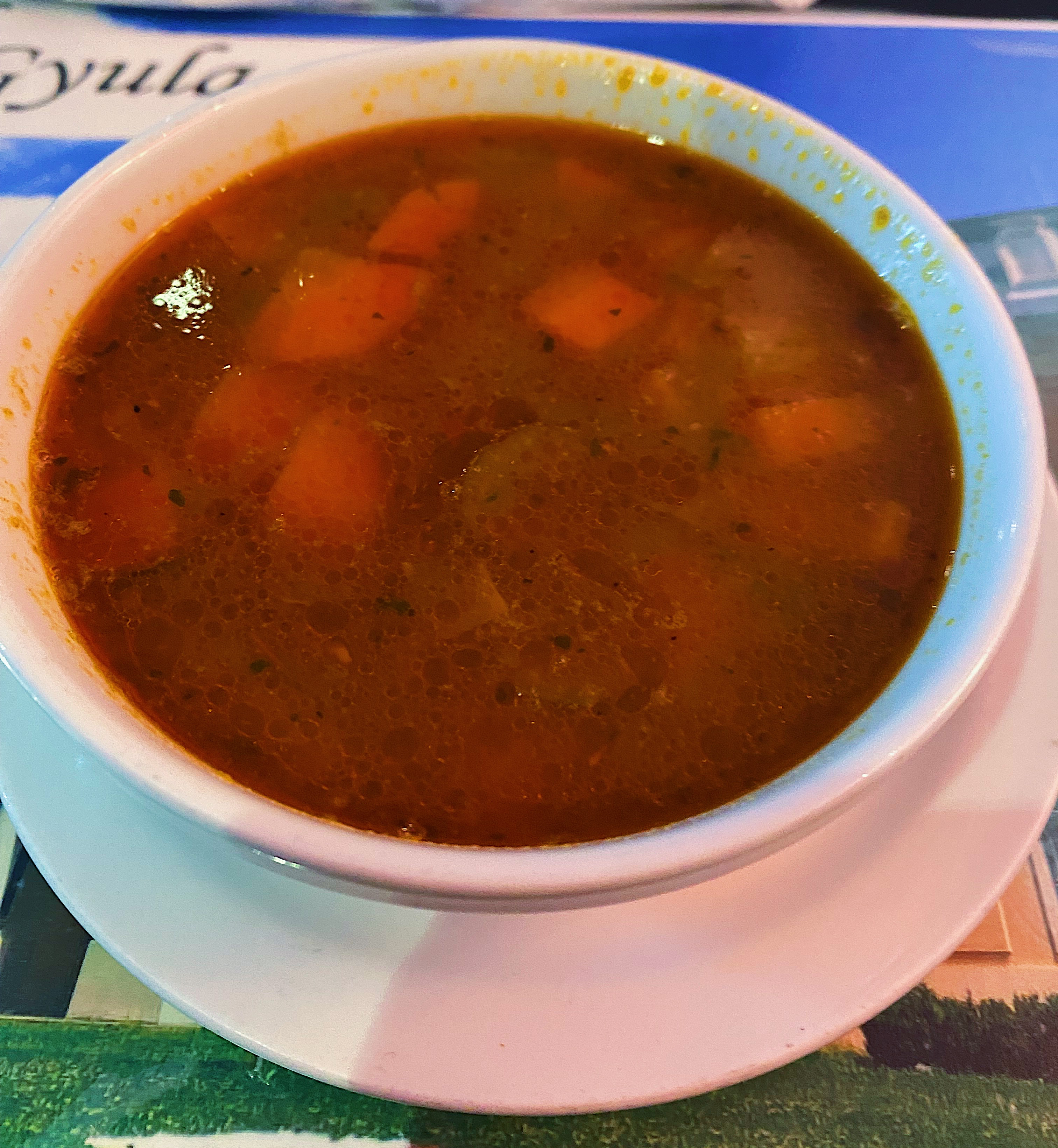 Upon looking at the menu, it was immediately evident that a round of Goulash Soup (Gulyás leves) had to be ordered per person. It was a light broth packed with flavour (paprika mostly) alongside chunks of celery, carrots, potato, and beef. It was enhanced when dipping the fresh pieces of rye bread in it.