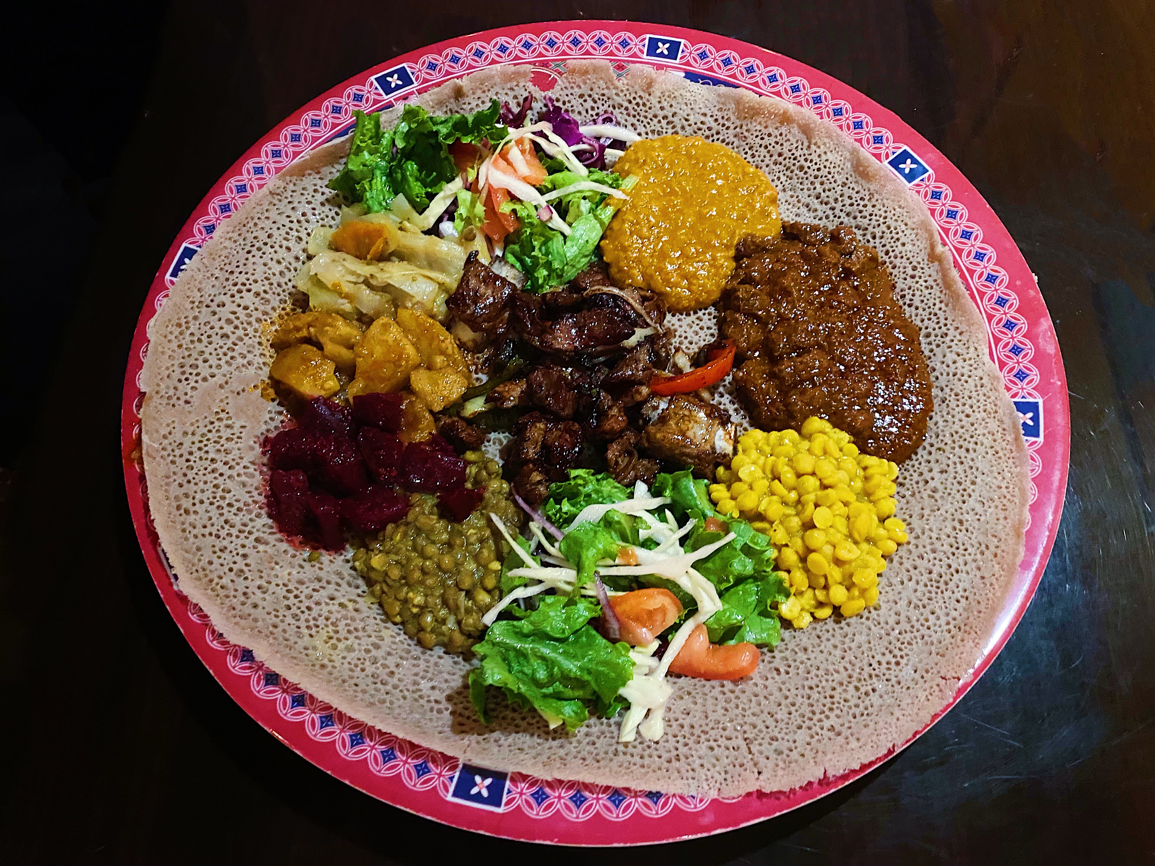 Must-try dish: Special Meat and Vege Platter with Chacha Tibs (#16 with #13)