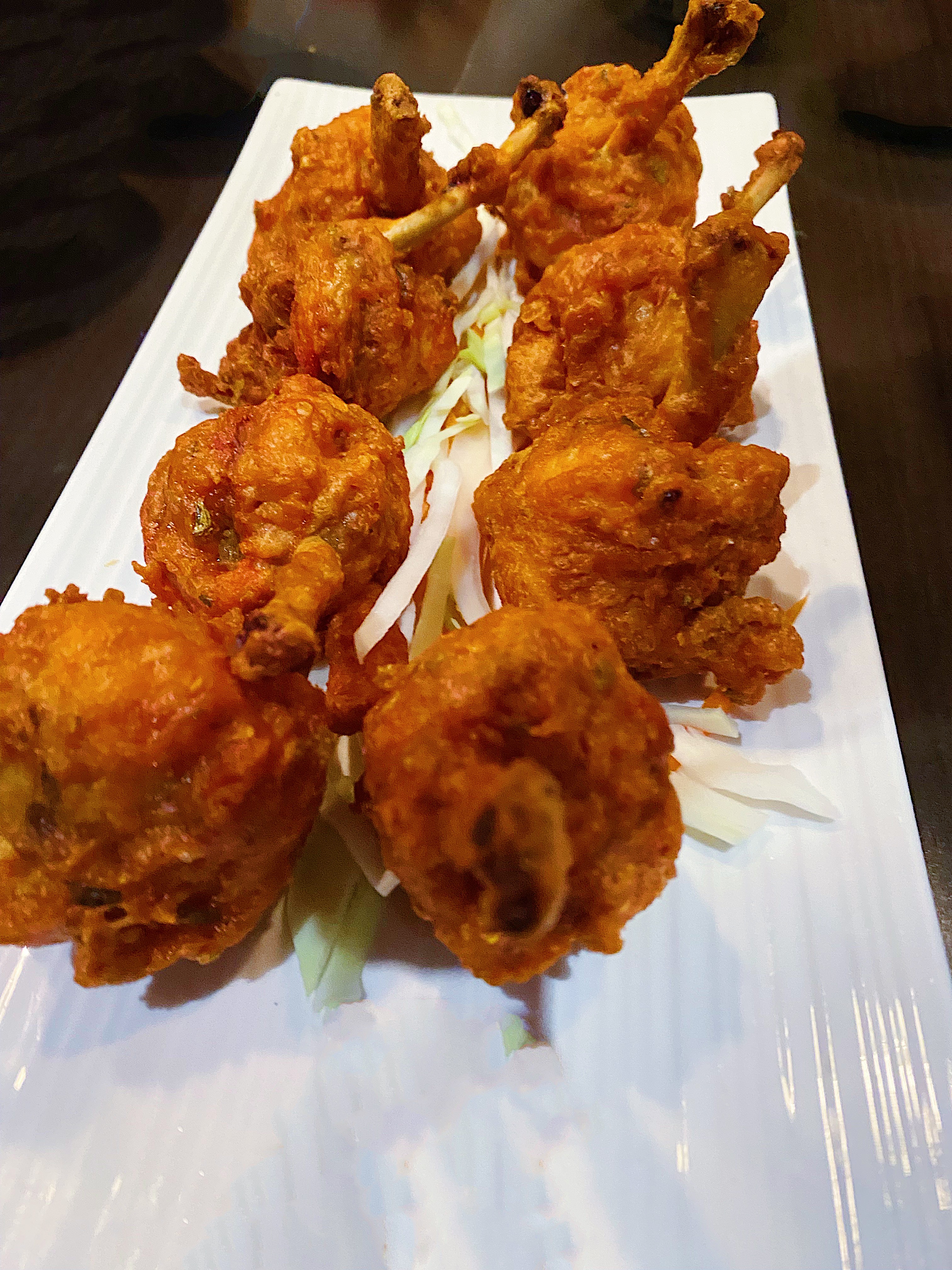 The appetizer course was shareable for the group. The Shrimp Pakoras are large shrimp deep-fried in batter that come with a dipping sauce. The batter itself is thin, which balances an otherwise heavy dish. For those less in favour of shellfish, there’s a fish option available too. The Chicken Lollipop are battered pieces of dark meat on the bone that resemble a lollipop. What you see is what you get, and this is certainly a crowd-pleaser!