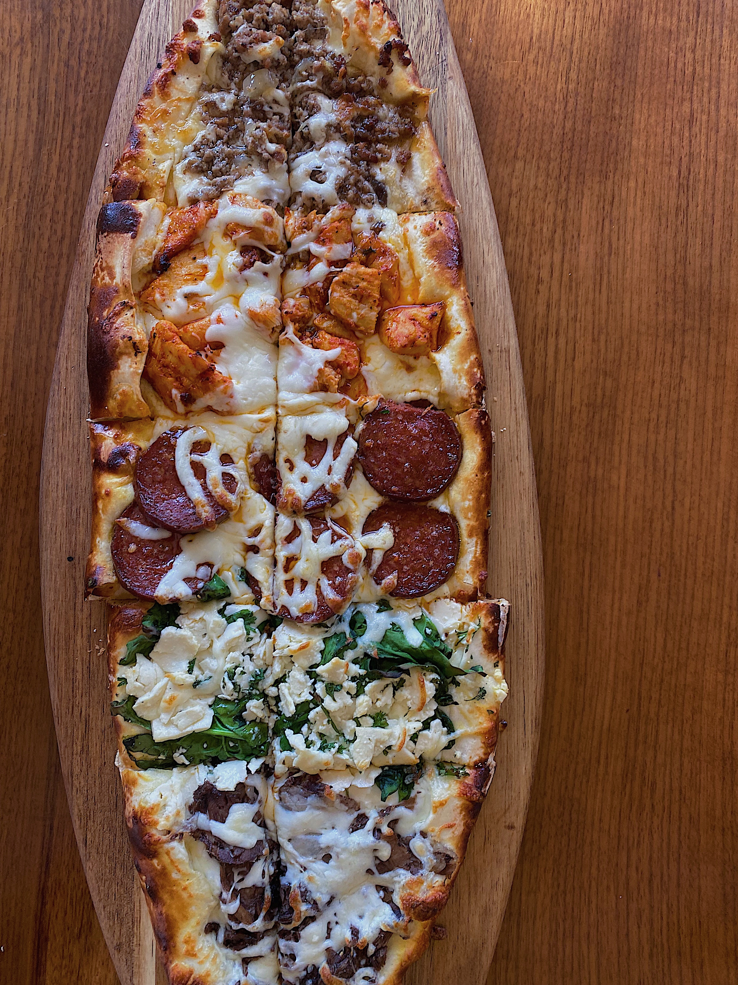 The Pide menu is extensive with 20 varieties to pick from, and the rest of the menu offers kebab wraps and plates. With the smells wafting from the wood burning oven, it was evident that a Pide was in our future. With so many options, we decided to go with #18 Karişik (Assorted) because each of the five slices has different toppings to represent the most popular flavours on the menu. It was interesting going from a ground meat slice to a spinach and feta slice to a sausage slice but ultimately allowed for a better understanding of what to order next time. It’s an exercise similar to taking a cruise ship holiday.