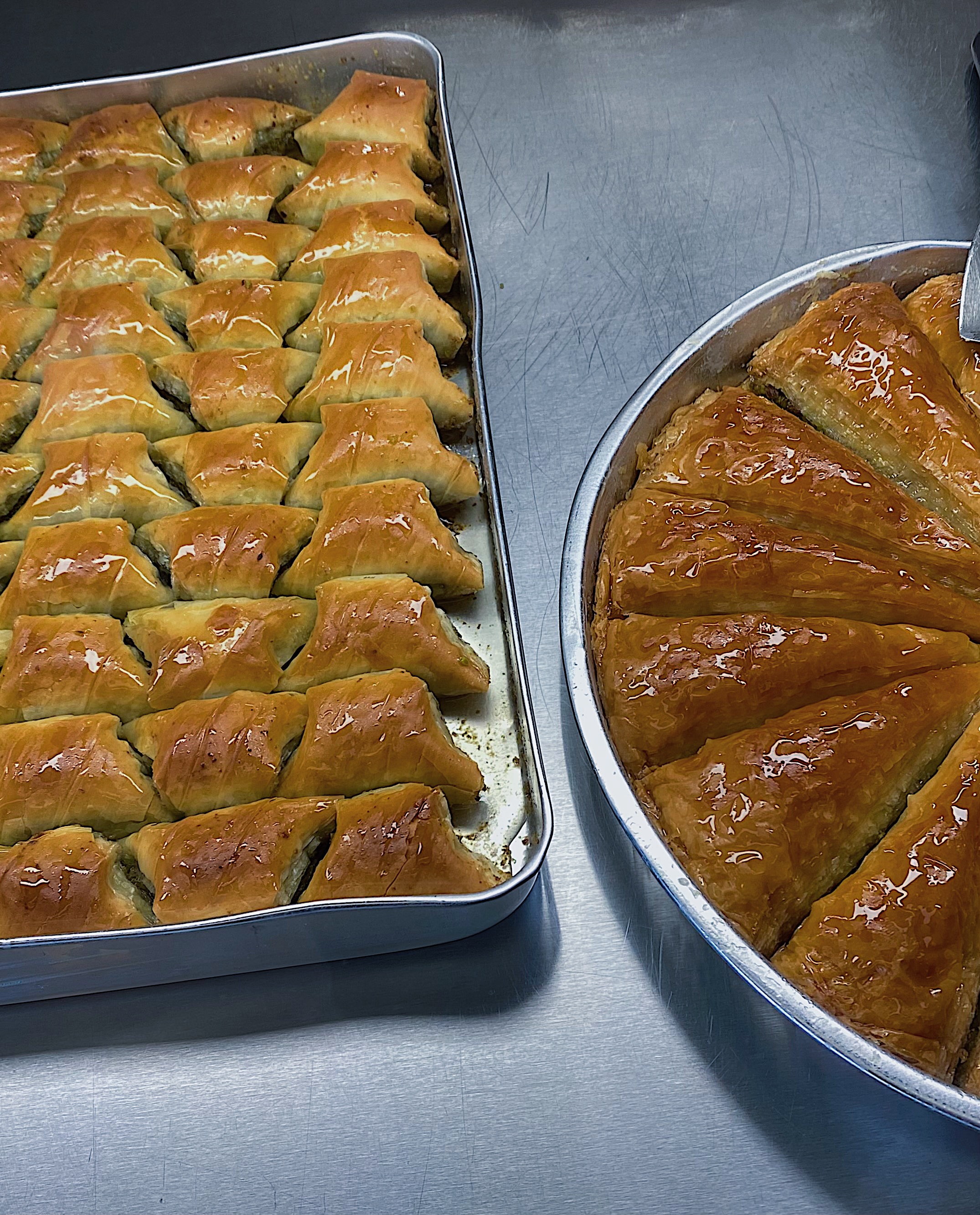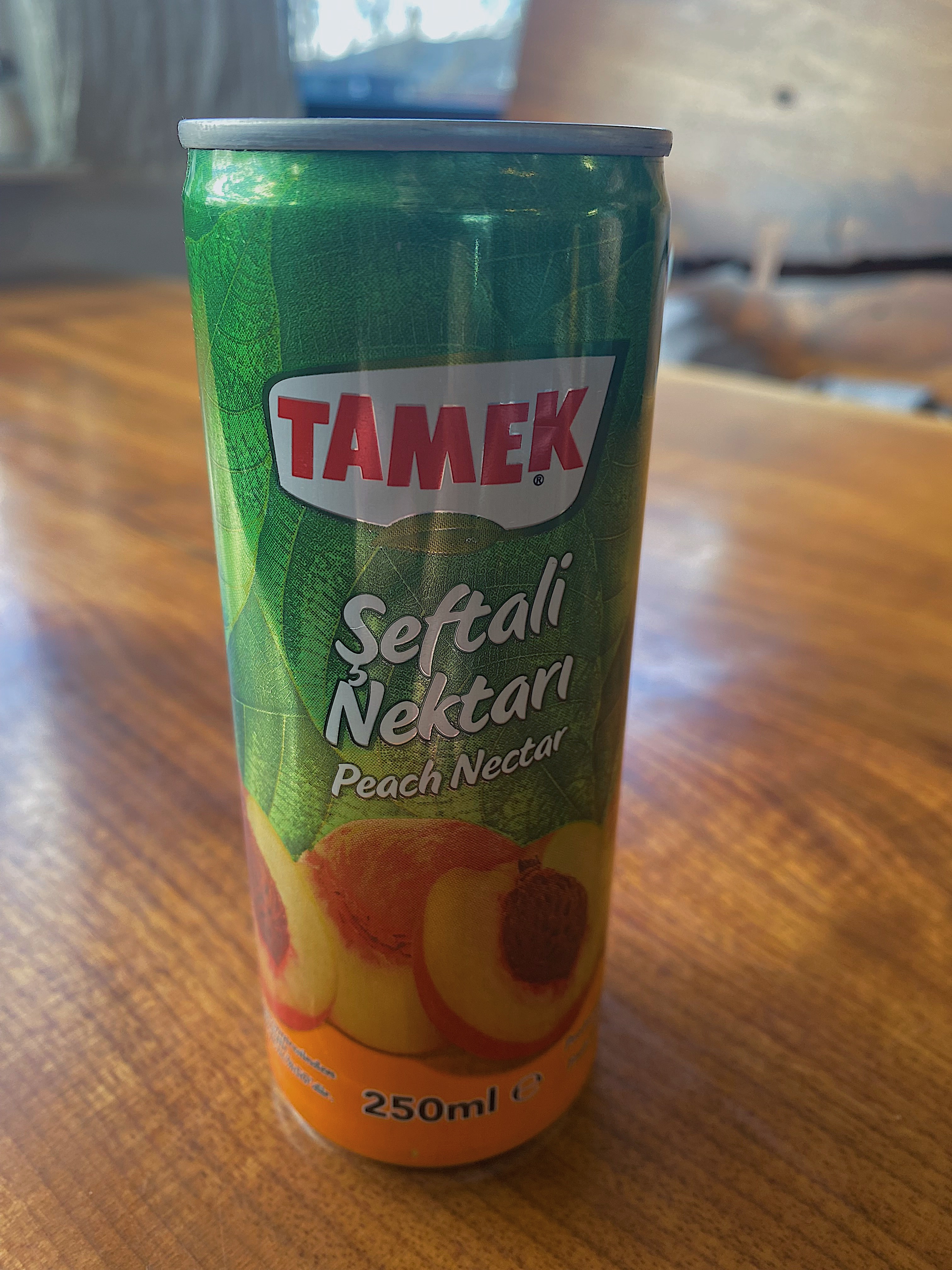 With two large carbohydrate and cheese filled plates, we had little room for the attractive deserts at the front counter. Next time perhaps. We did get a chance to try Turkish canned juices, one in peach and the other in apricot. They’re surprisingly unsweetened, in the best way possible, and we both could have gone for a second round.