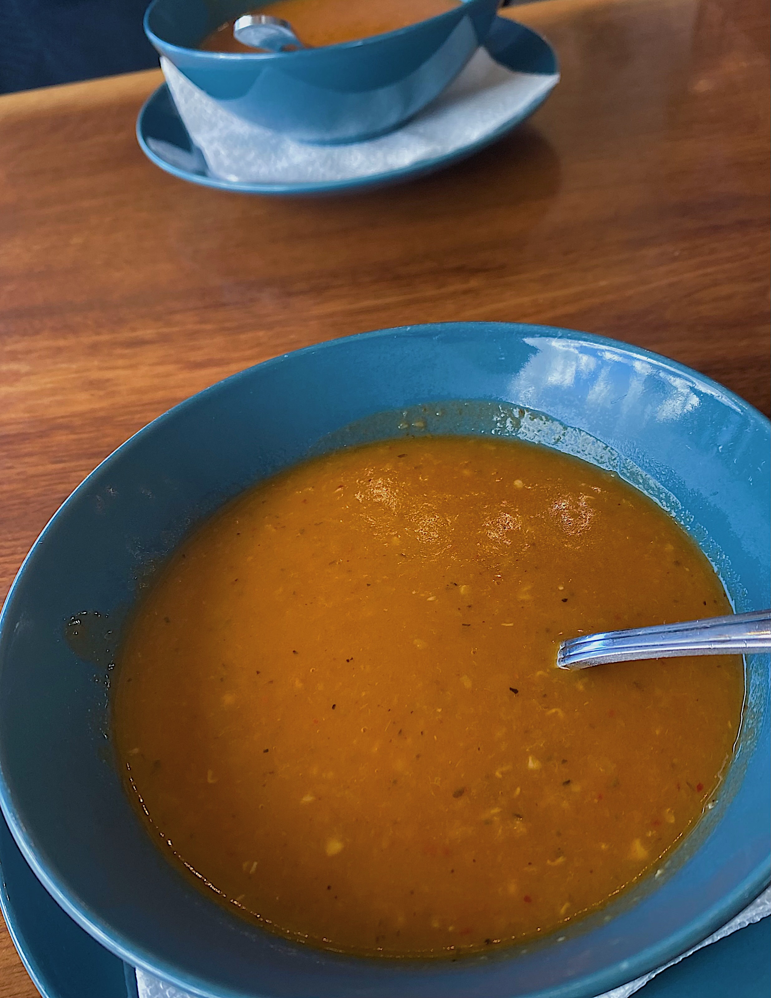 One of the best, and unplanned parts of the meal was the surprise lentil soup that arrived before the meal. Whatever concoction it was, it was incredible. It was a tomato base with small lentils and cream that made it silkier. Mint was the hidden ingredient that shined in most bites then was overshadowed by the rest of the flavours.