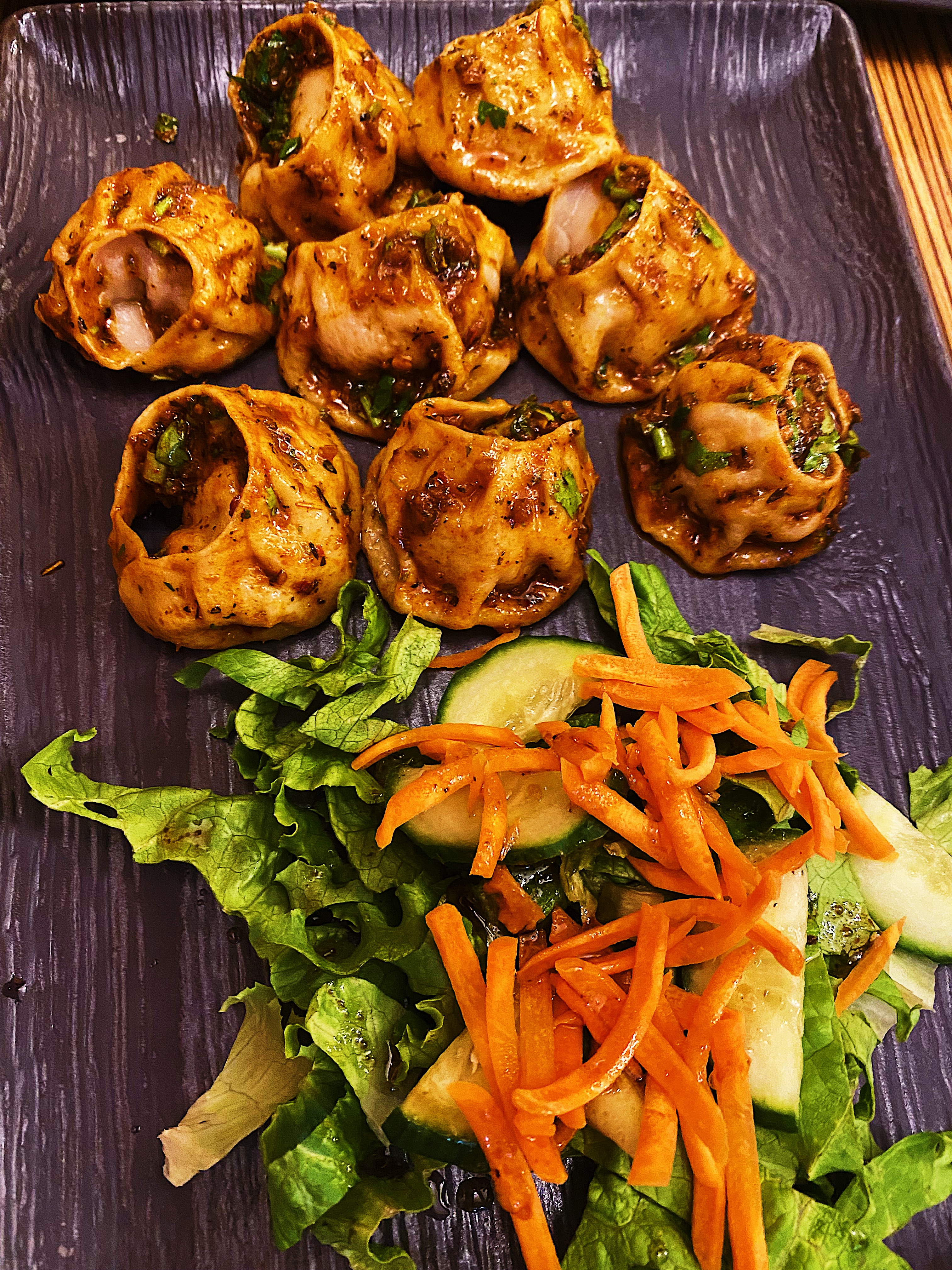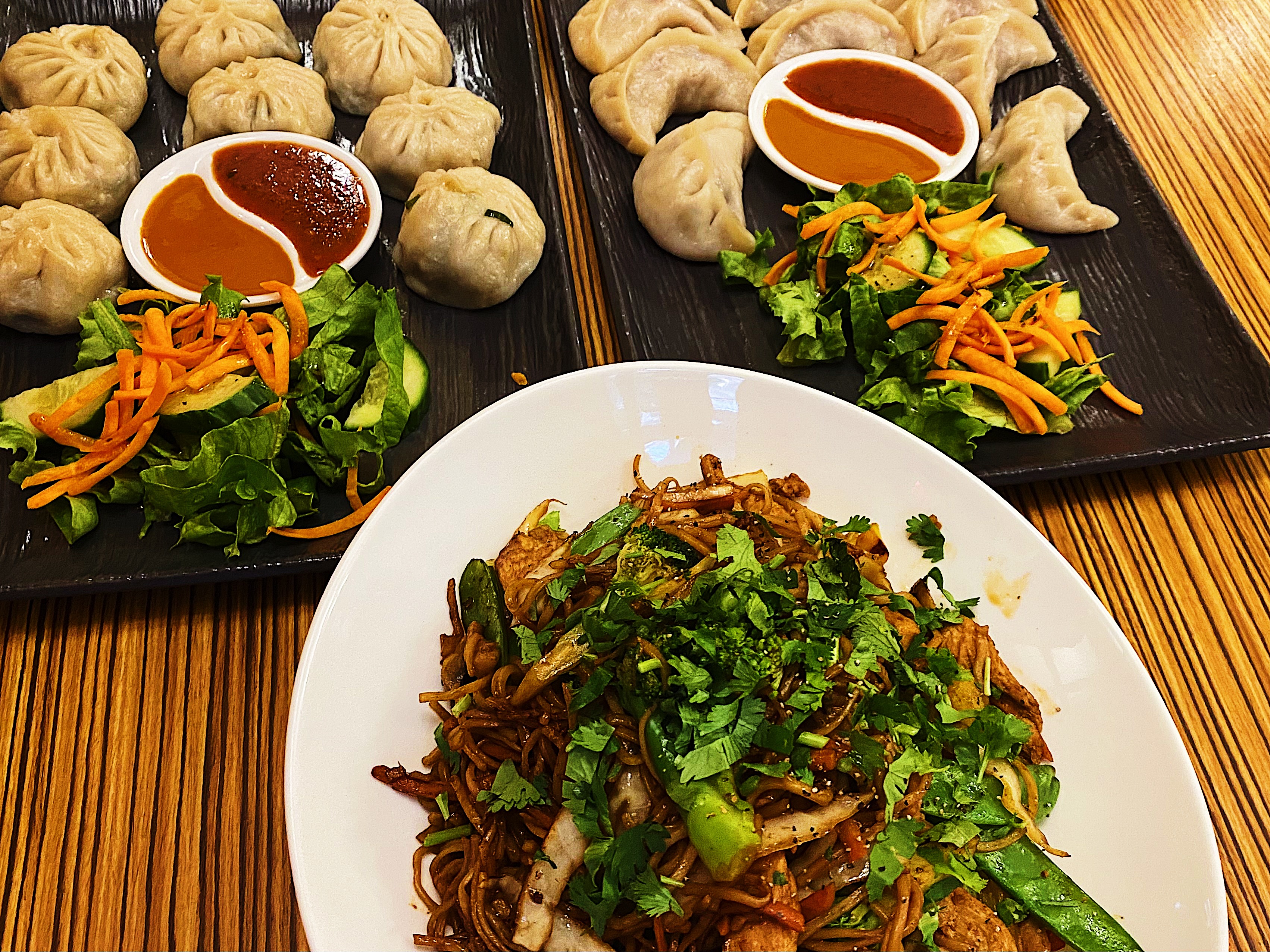 Without much thought, two orders of Momos were placed: one for beef and the second for vegetarian. The minced beef is seasoned with spices, while the vegetarian one is packed with cabbage, mushrooms, onions, and herbs. Although it sounds less appealing, the vegetarian option is tasty and fun to eat because of the various textures within it.