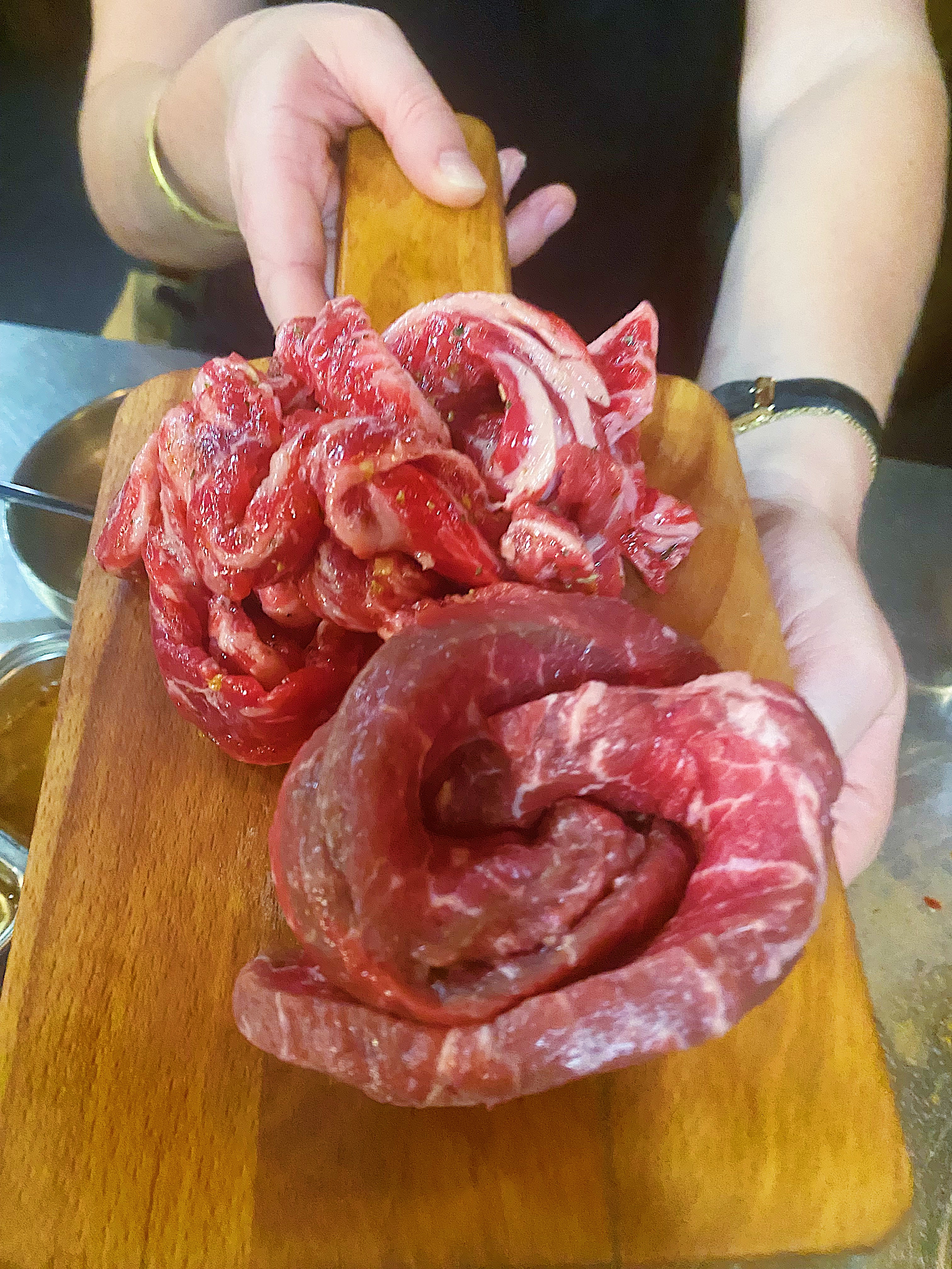 As far as the grilling ingredients go, some are more tender than others and the fattier ones are tastier. You can manage how much or how little you want each piece to be cooked. Here’s what we opted for: