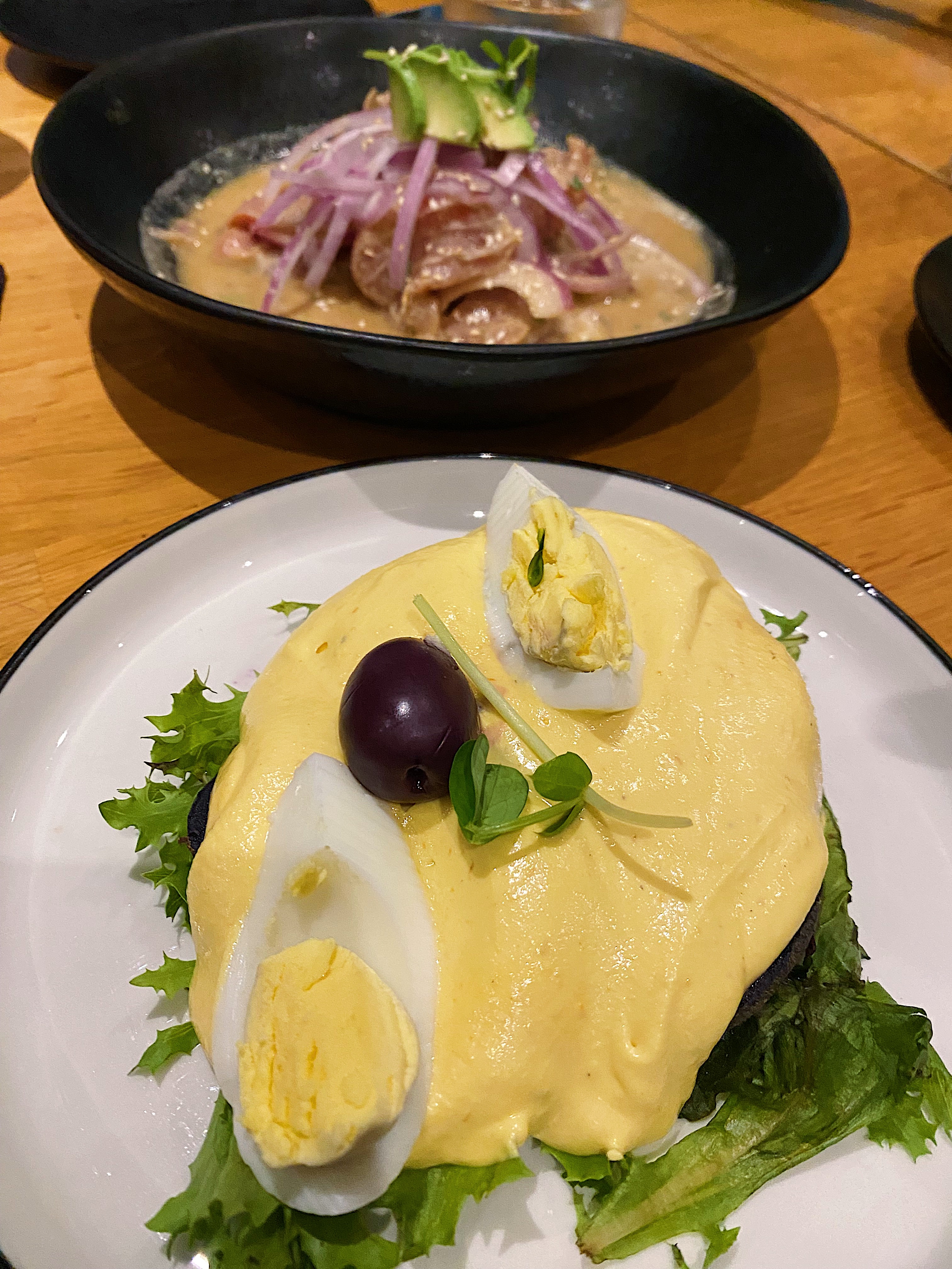 One of the most popular small plates in Peru is the Papa a la Huancaína – boiled potatoes and hard boiled egg doused in a creamy feta and chili sauce with black olives. It’s an epic mixture of textures and flavours that change with every bite.
