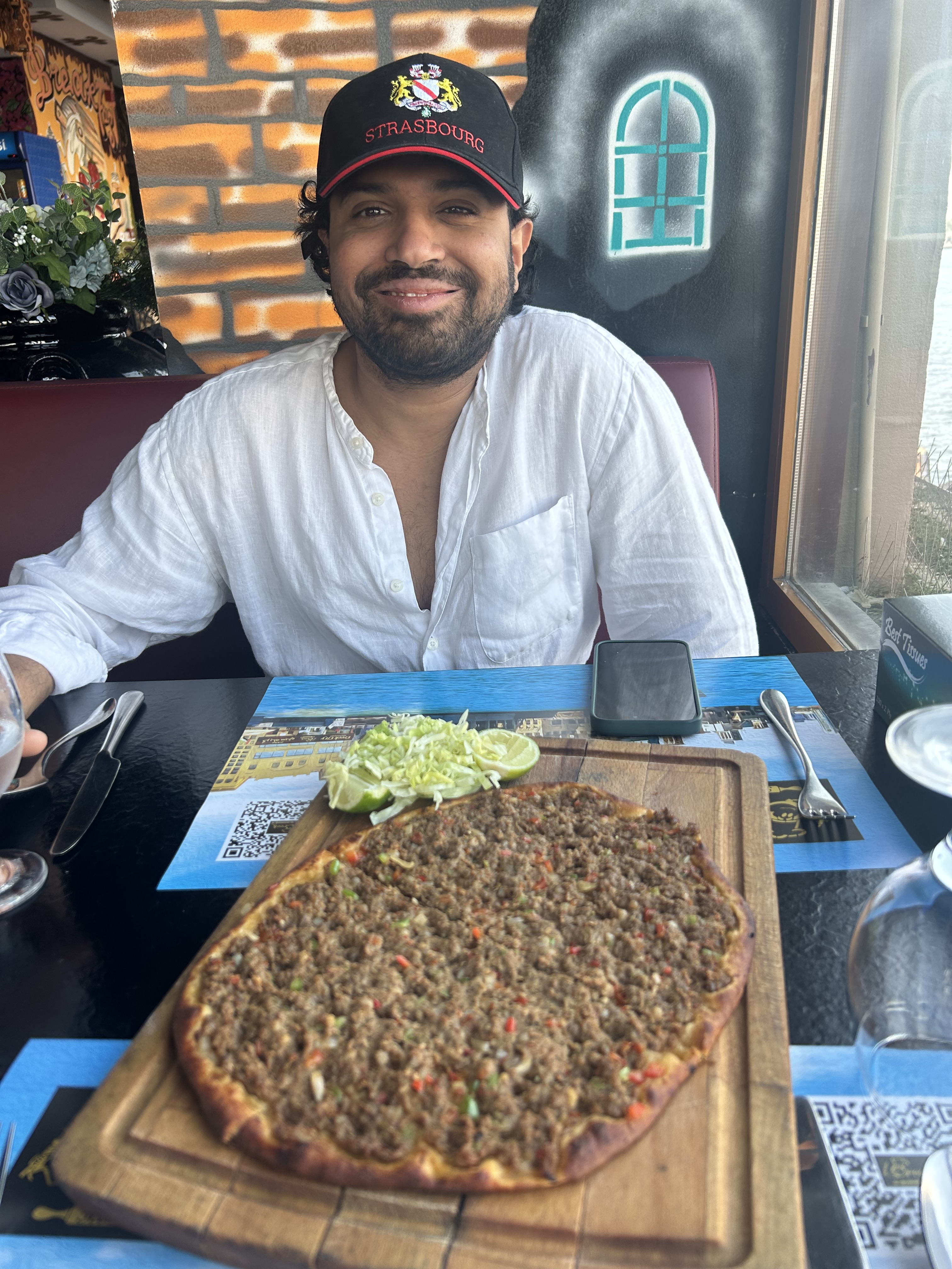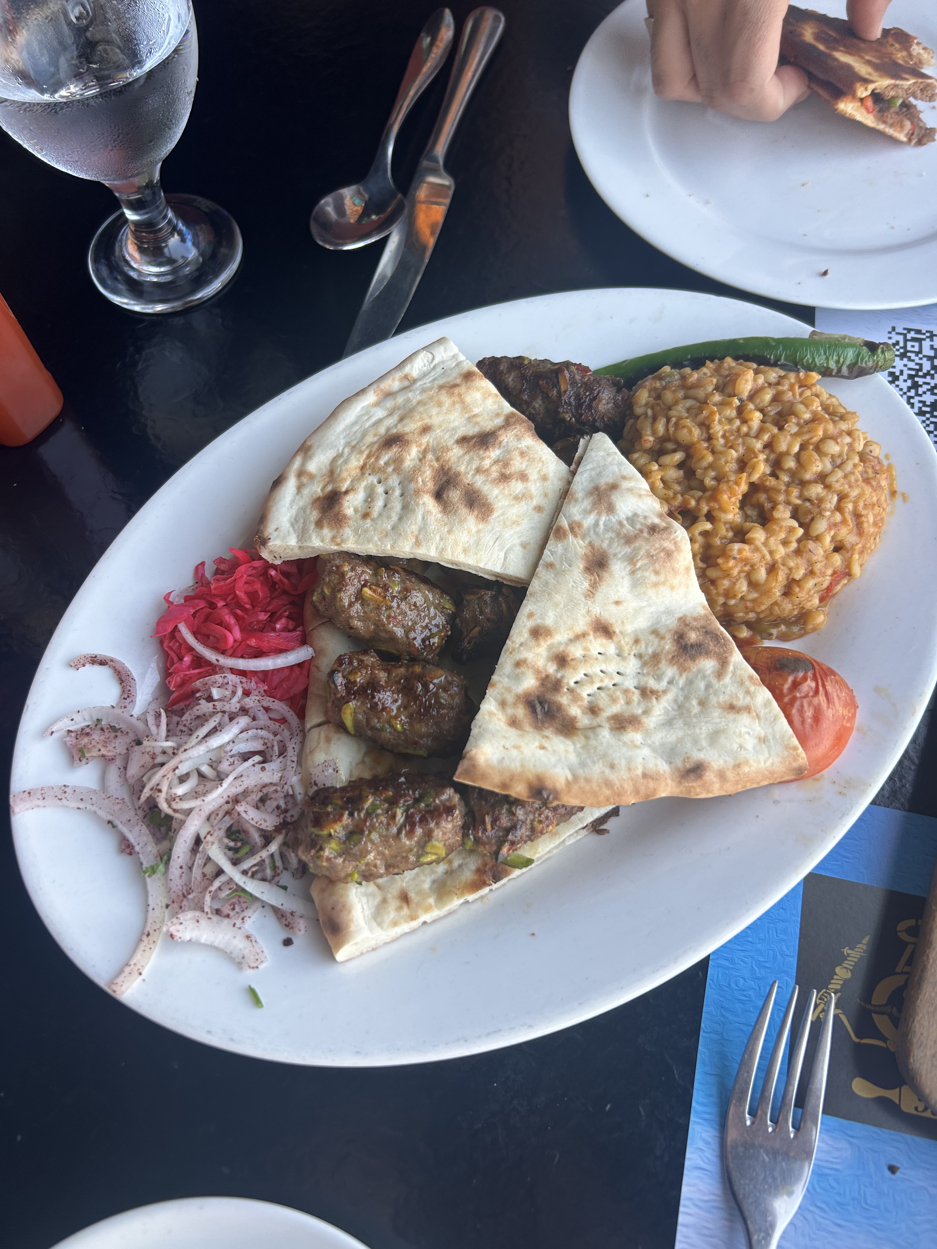 All the classics build the menu from lentil soup to pides to grilled meats, and finally to kunefe and coffee. That’s exactly what we went for. The Turkish-style lentil soup is a delight even on a hot day with underlying hints of mint paired with a lahmacun pide – Turkey’s take on pizza that comes on a thin flatbread with toppings. In this case peppers, tomato, and minced meat.