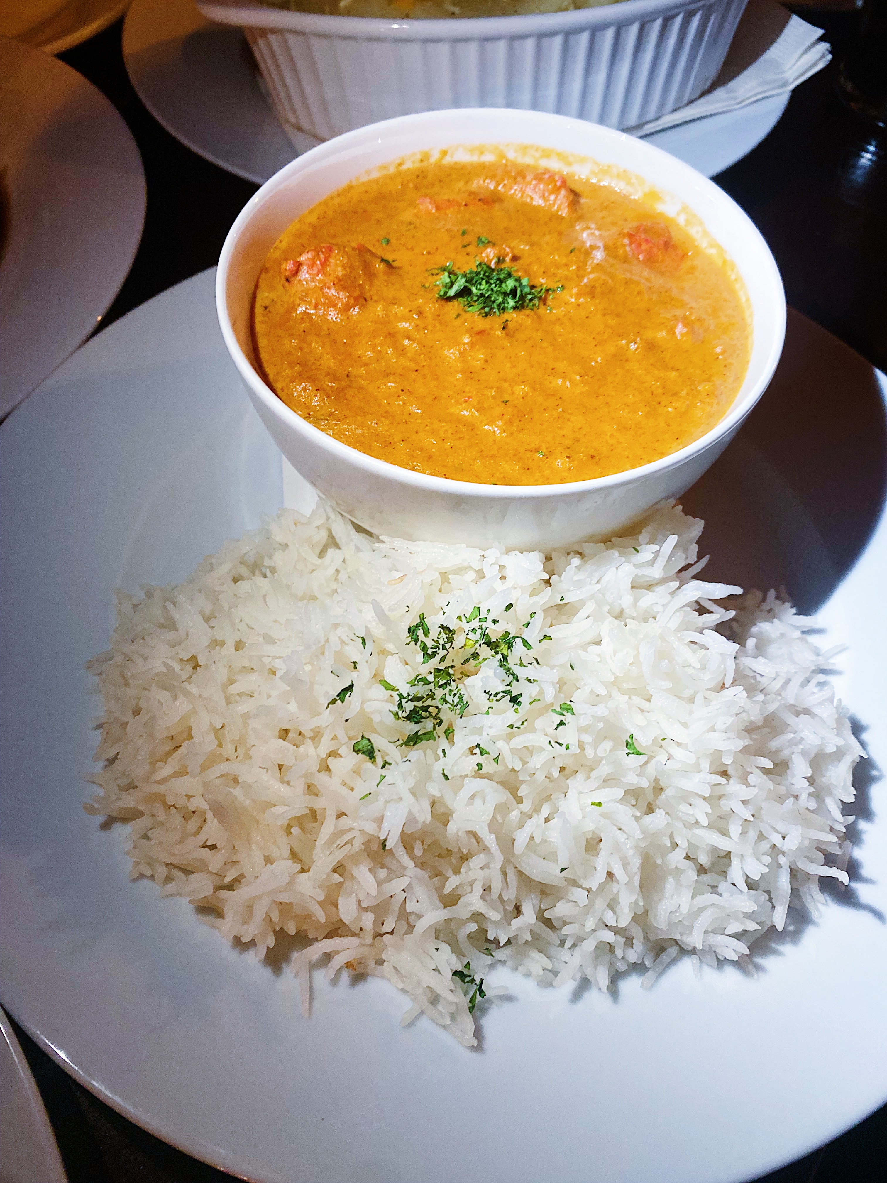 This version leans mild, with lots of cream and very few spices. It’s still tasty, just not your traditional bold butter chicken. The chicken is tender, and the sauce is perfect for soaking up with naan and rice. Feels like a friendly intro for those not ready to go full spice.