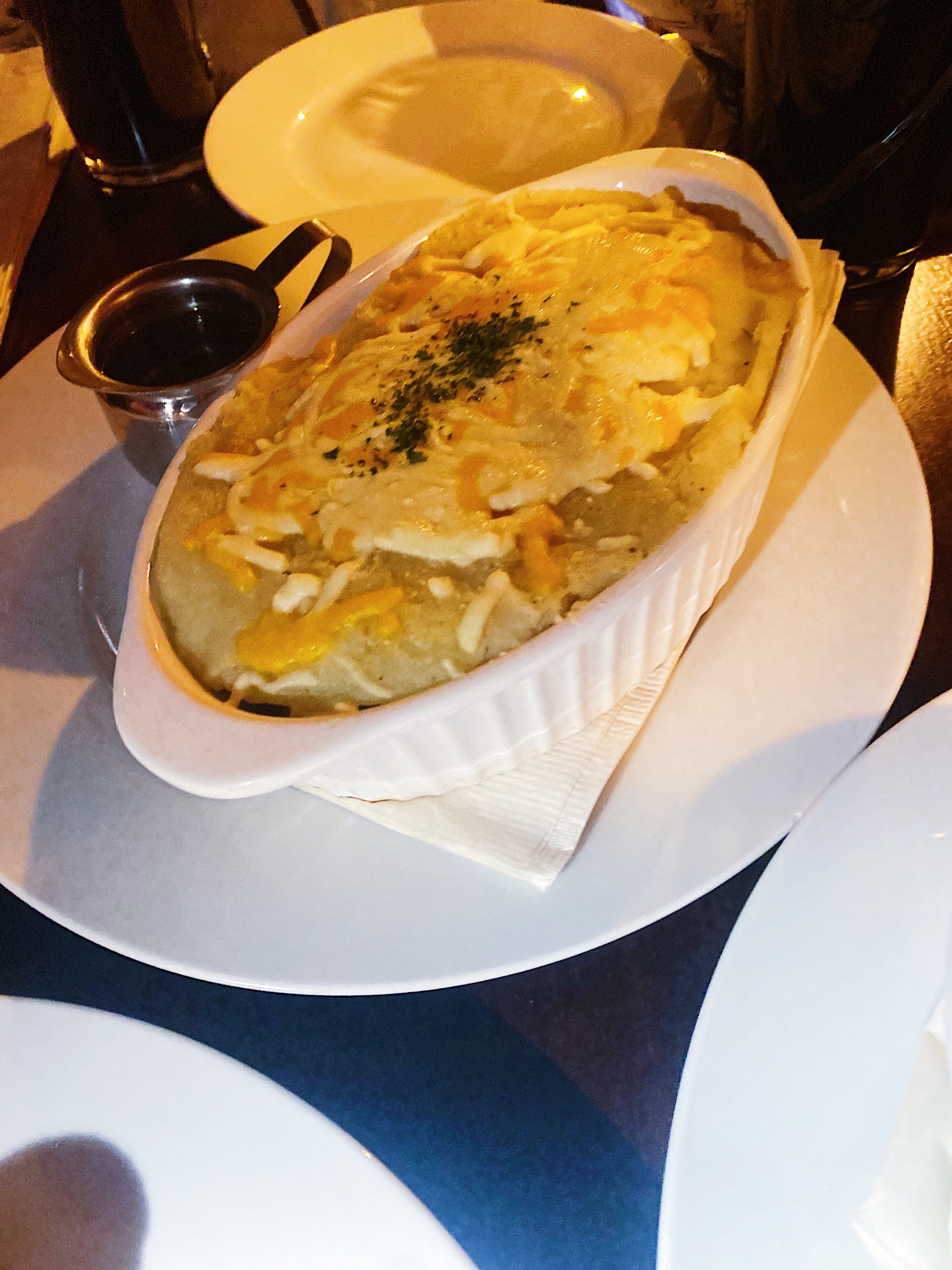 A hearty helping of comfort. Think: seasoned ground lamb topped with cheesy mashed potatoes and gravy. It’s exactly what you’d hope for: rich, homey, and perfectly matched with a creamy pint of Guinness. We were hoping for a Cottage Pie option too (just to do a beef-vs-lamb taste test), but hey, maybe next time.