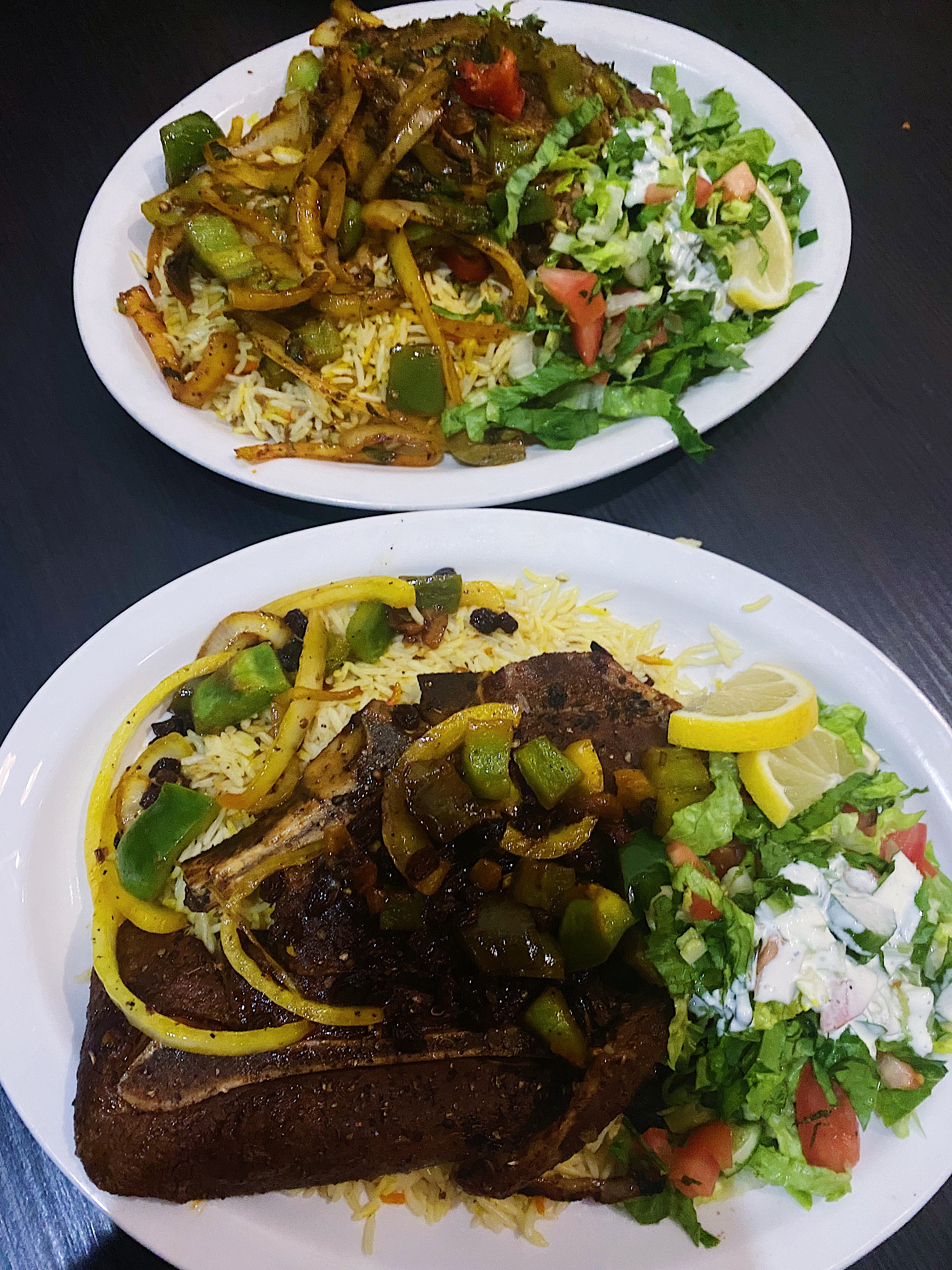 Each main comes with lentil soup and a choice of carb, and since there were four of us, we opted for four different meats, all three carb options (we doubled up on the rice), and of course, lentil soup all around. It was a cold winter night, and soup was very welcome.