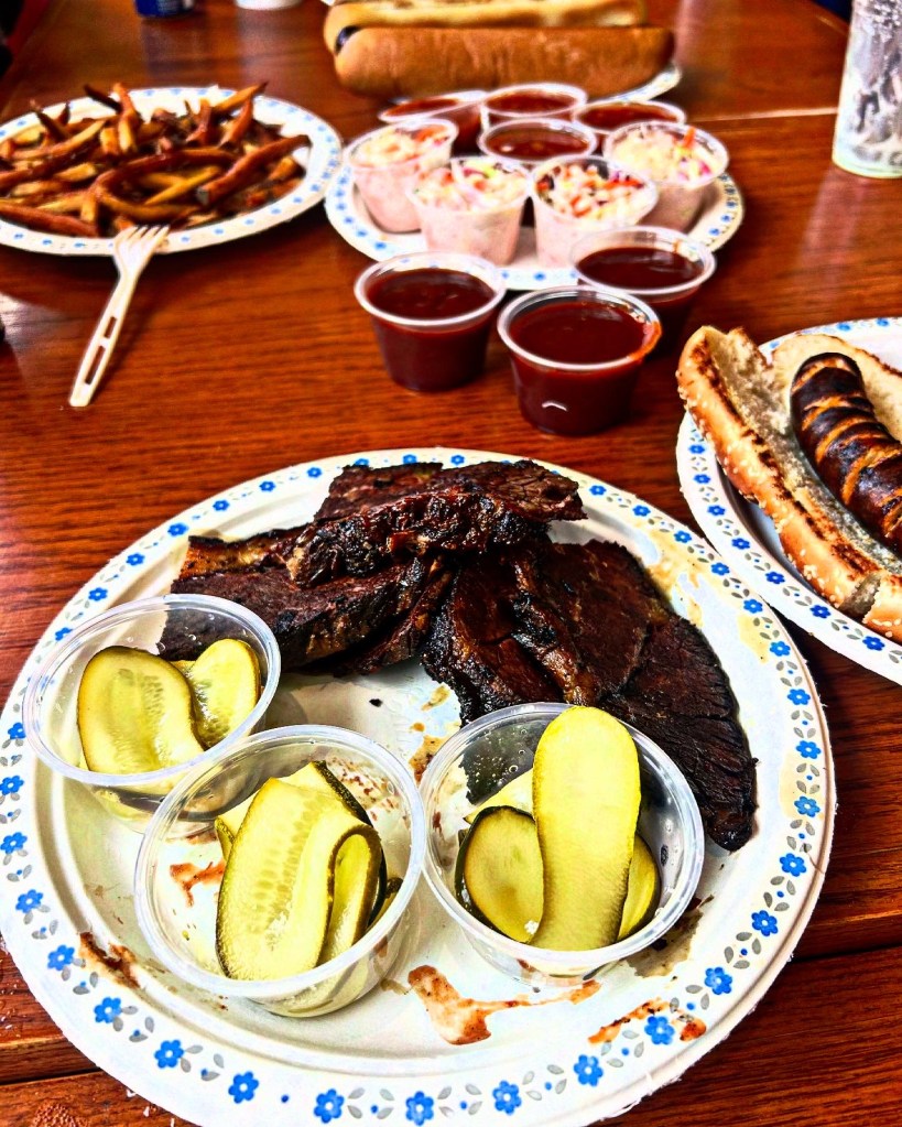 Despite meats being smoked and seasoned for hours in advance, everything is assembled to order in the open kitchen by the owner himself. He takes the time to chat with each group, assess preferences, and curate the perfect platter of the good stuff. Plates arrive gradually, and once they do, it’s game time.